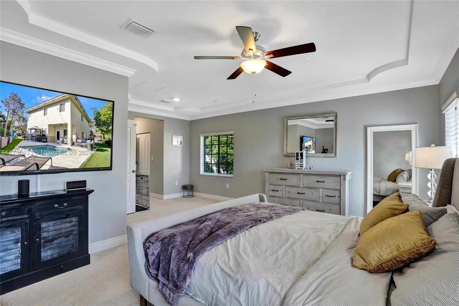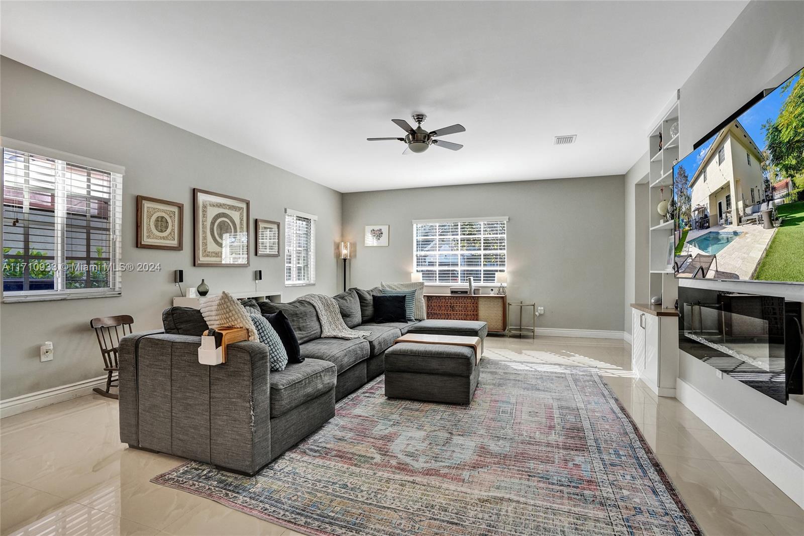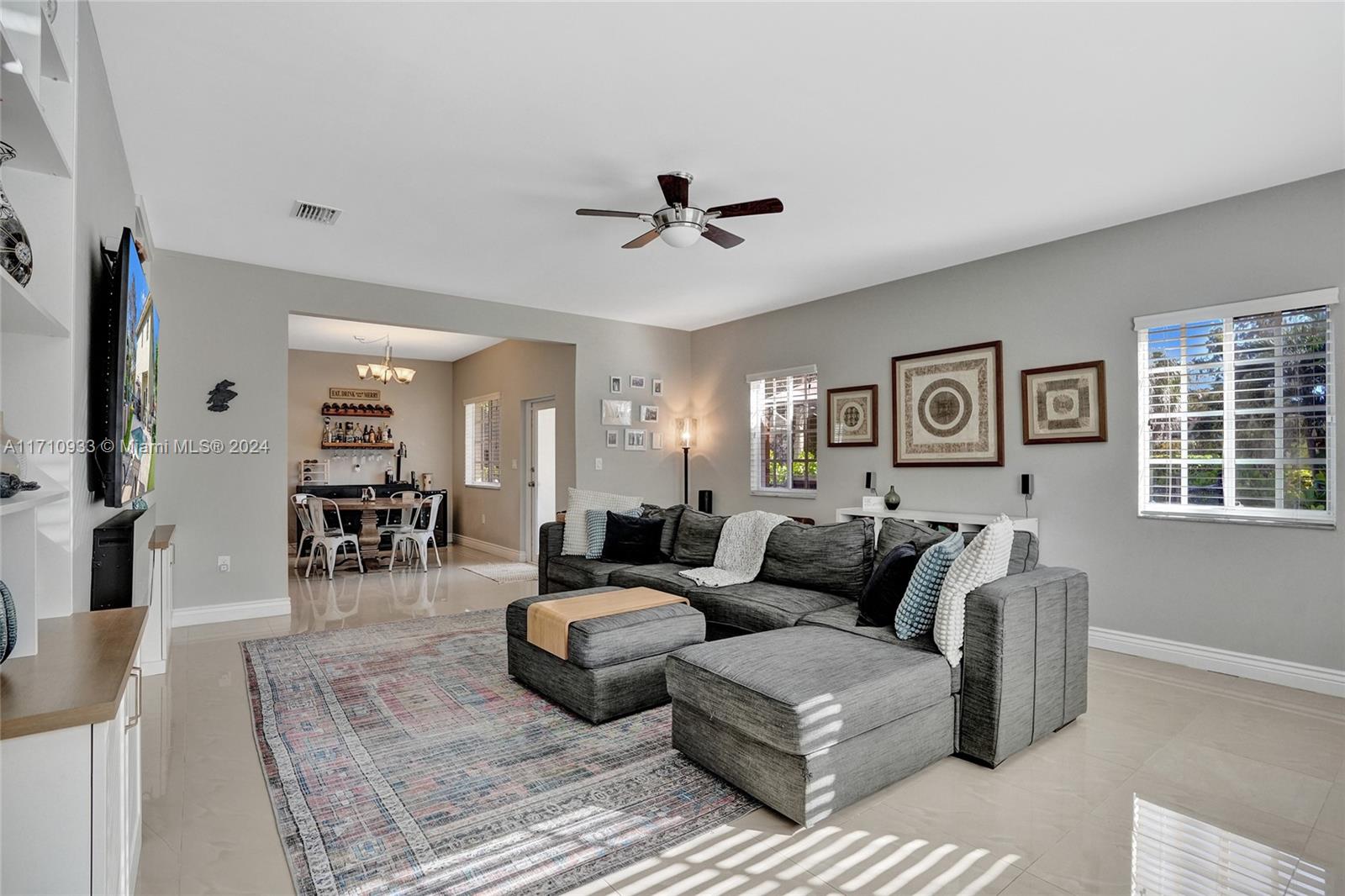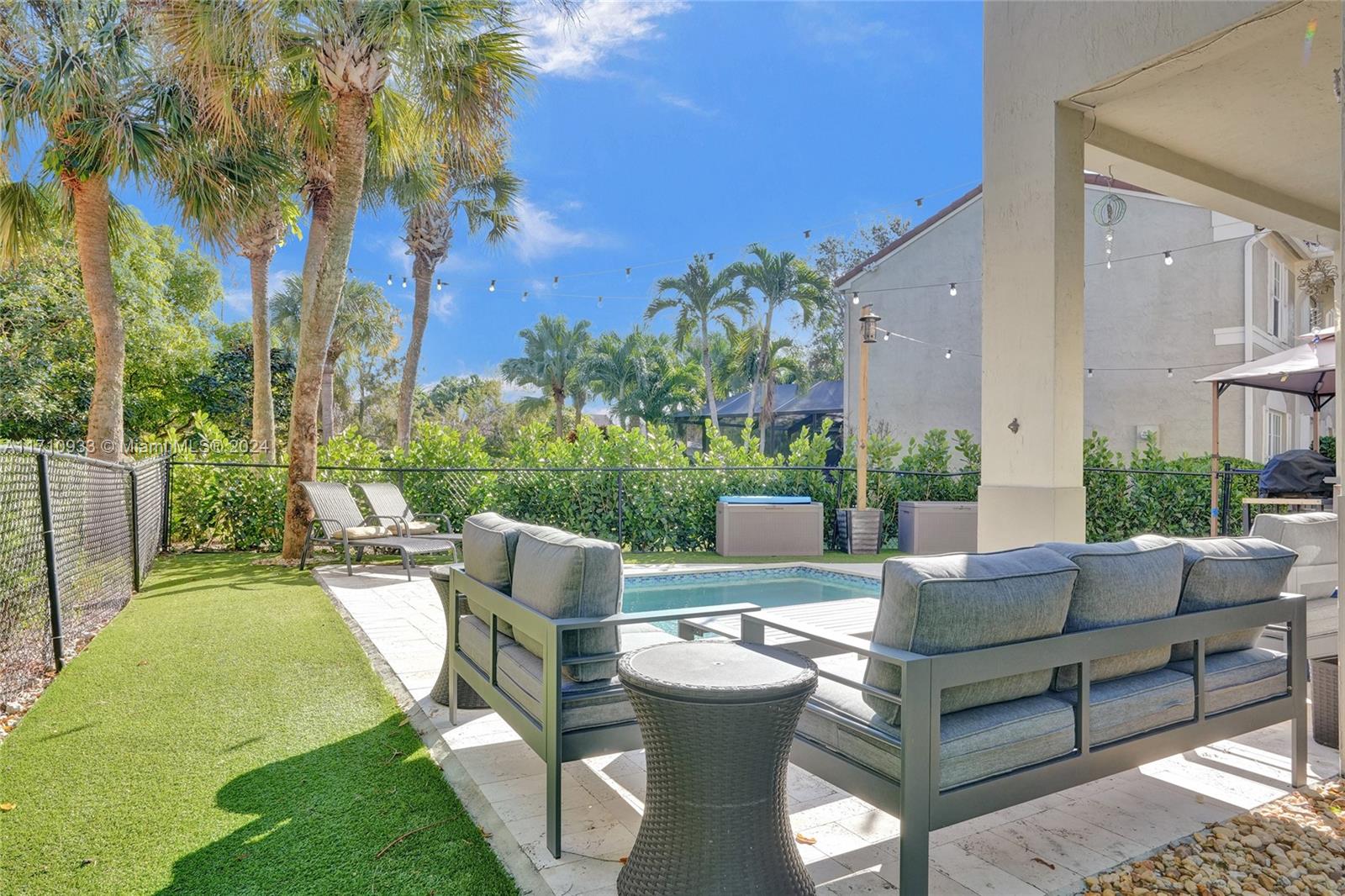 Welcome to this stunning 3-bed home with an additional office that can easily serve as a 4th bed located in the prestigious gated community of Woodside Estates. Situated on a quiet cul-de-sac corner lot, this property offers privacy, convenience, w/ saltwater pool and jacuzzi, perfect for relaxing. Impact windows, large open kitchen and dining area w/ SS appliances. Spacious family room includes custom built ins. The master suite w/sitting area and plenty of space to unwind. The guest beds are generously sized, ensuring comfort. Roof 10 years old, a 2021 water filtration system, and artificial turf in the back and side yard for easy maintenance. Conveniently located near major highways, shopping, and dining, this home combines modern comforts with an unbeatable location.