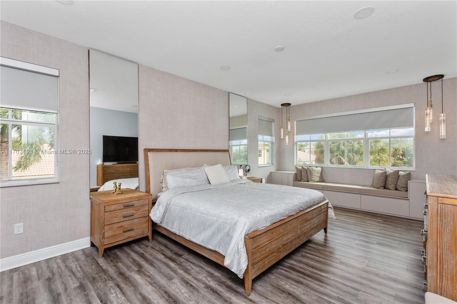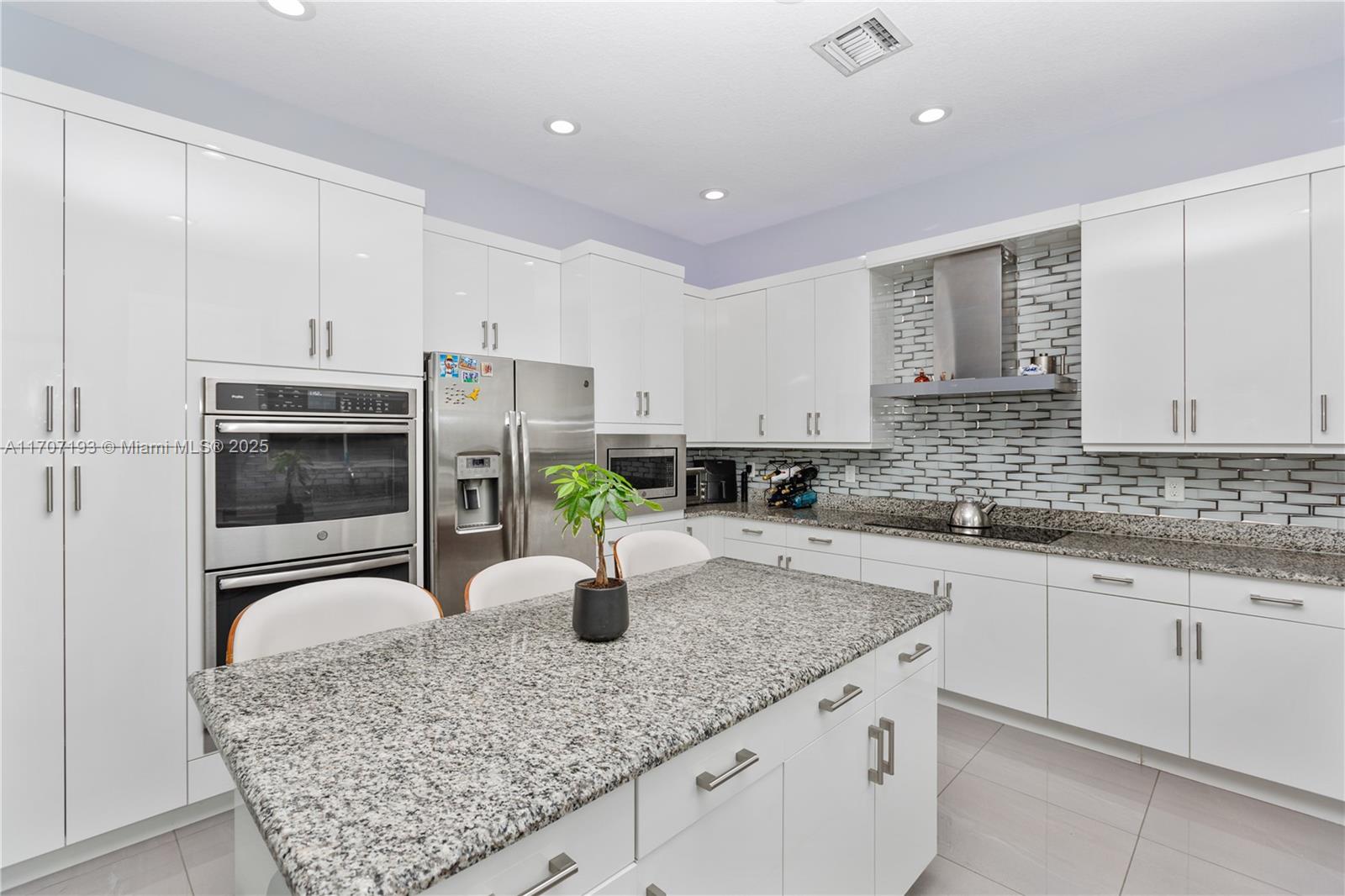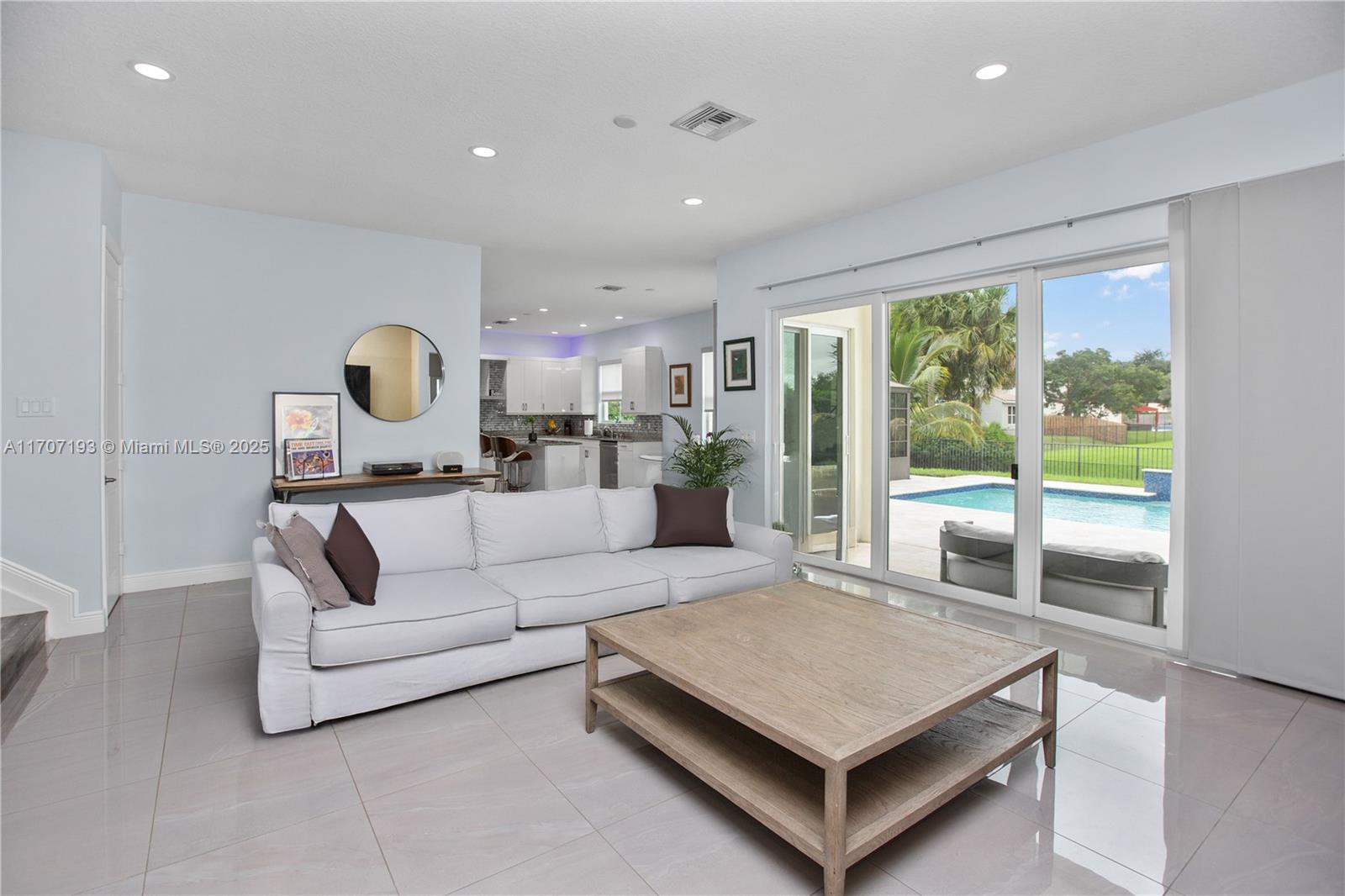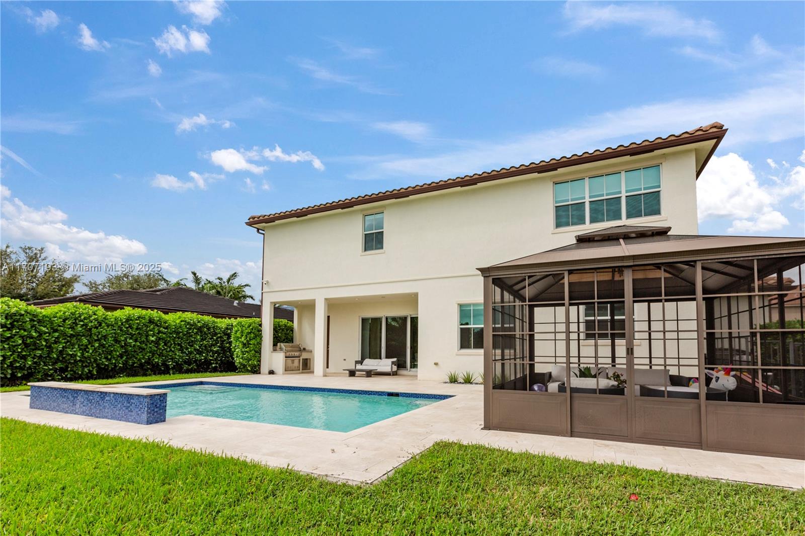 SELLER MOTIVATED! Stunning home is located in the exclusive Ranchette Isle community in Cooper City. Spanning over 3,200 sq ft, it sits in a quiet cul-de-sac and boasts a saltwater pool with beautiful lake view. Step into an open floor plan where the living room extends to the summer kitchen, gazebo and lake view, perfect for entertaining. The eat-in kitchen is equipped with high-end granite countertops, stainless steel appliances, porcelain tile floors, and vaulted ceilings. The home features 5 bedrooms, 4 full bathrooms, 3 car garage, a loft area, and storage on the 1st floor. Additional upgrades include impact windows, tiled garage, AquaKleen water softener, LED bathroom mirrors, and more. This model is the largest home & lot in the private 9 home community.