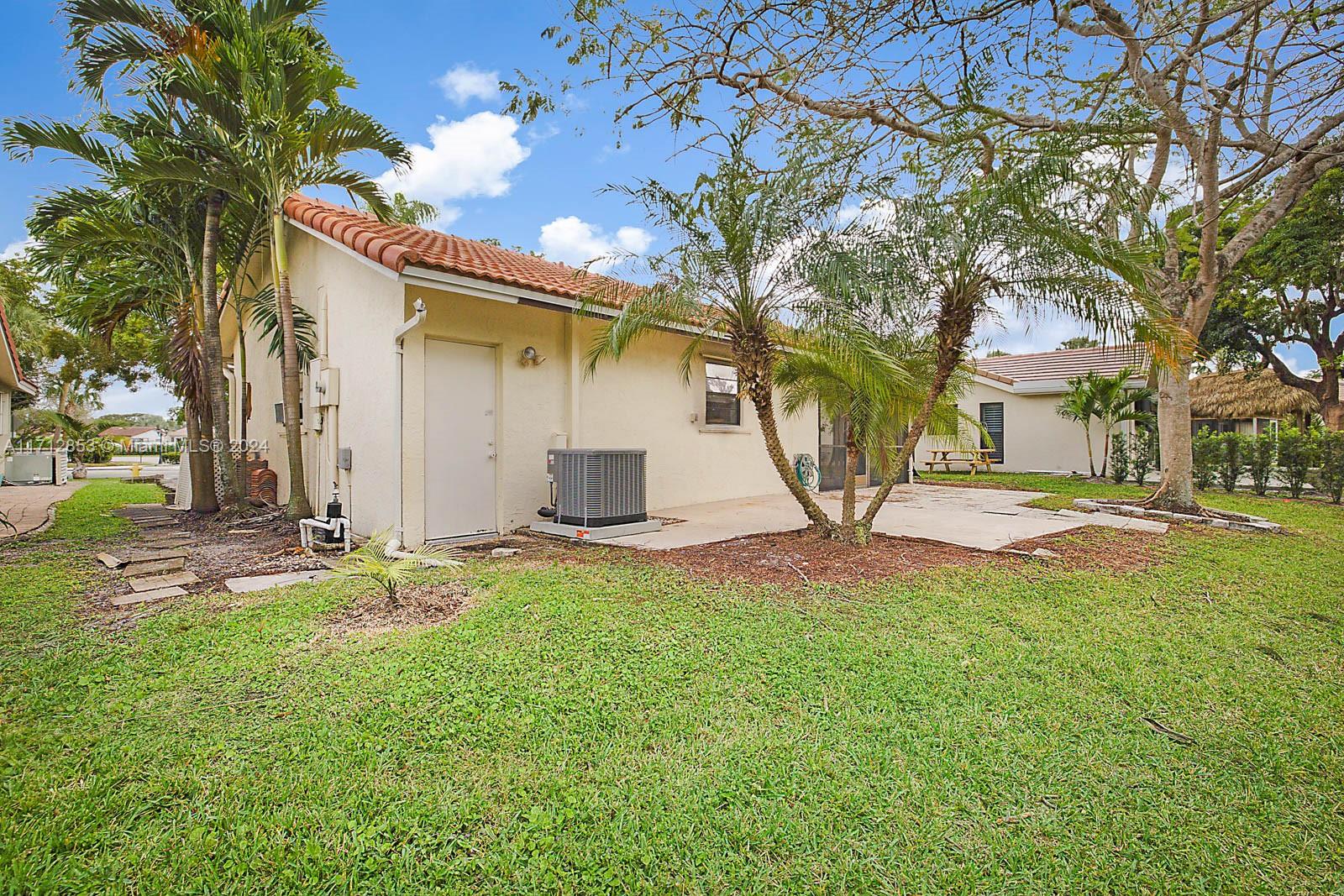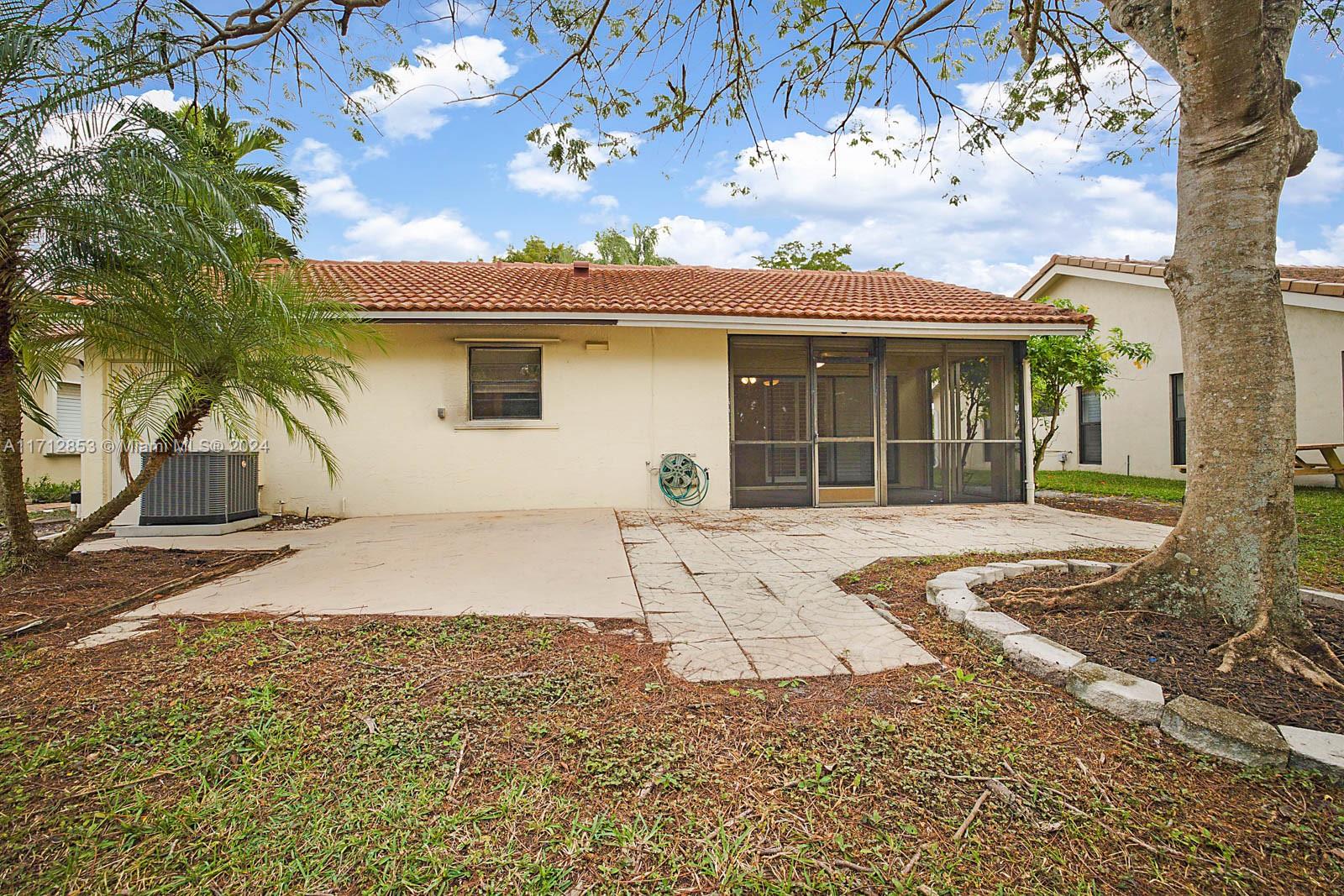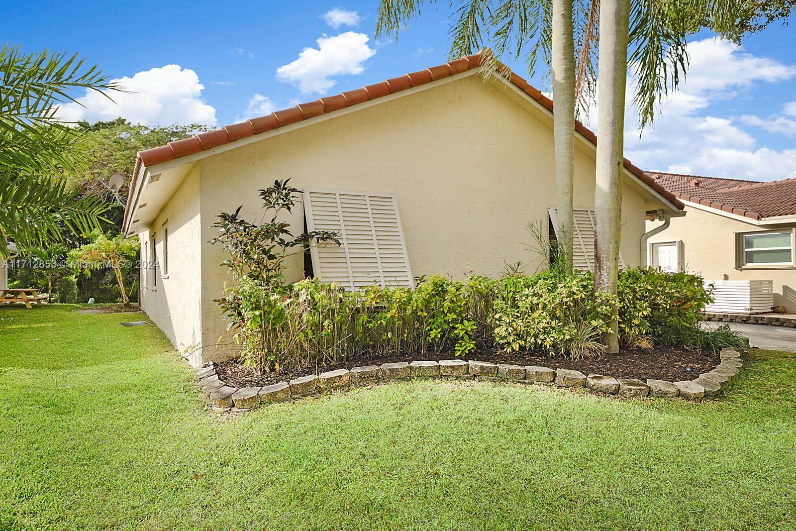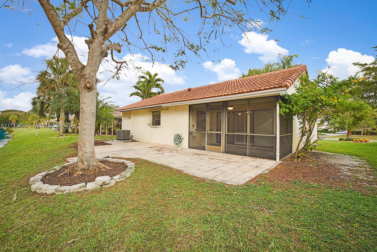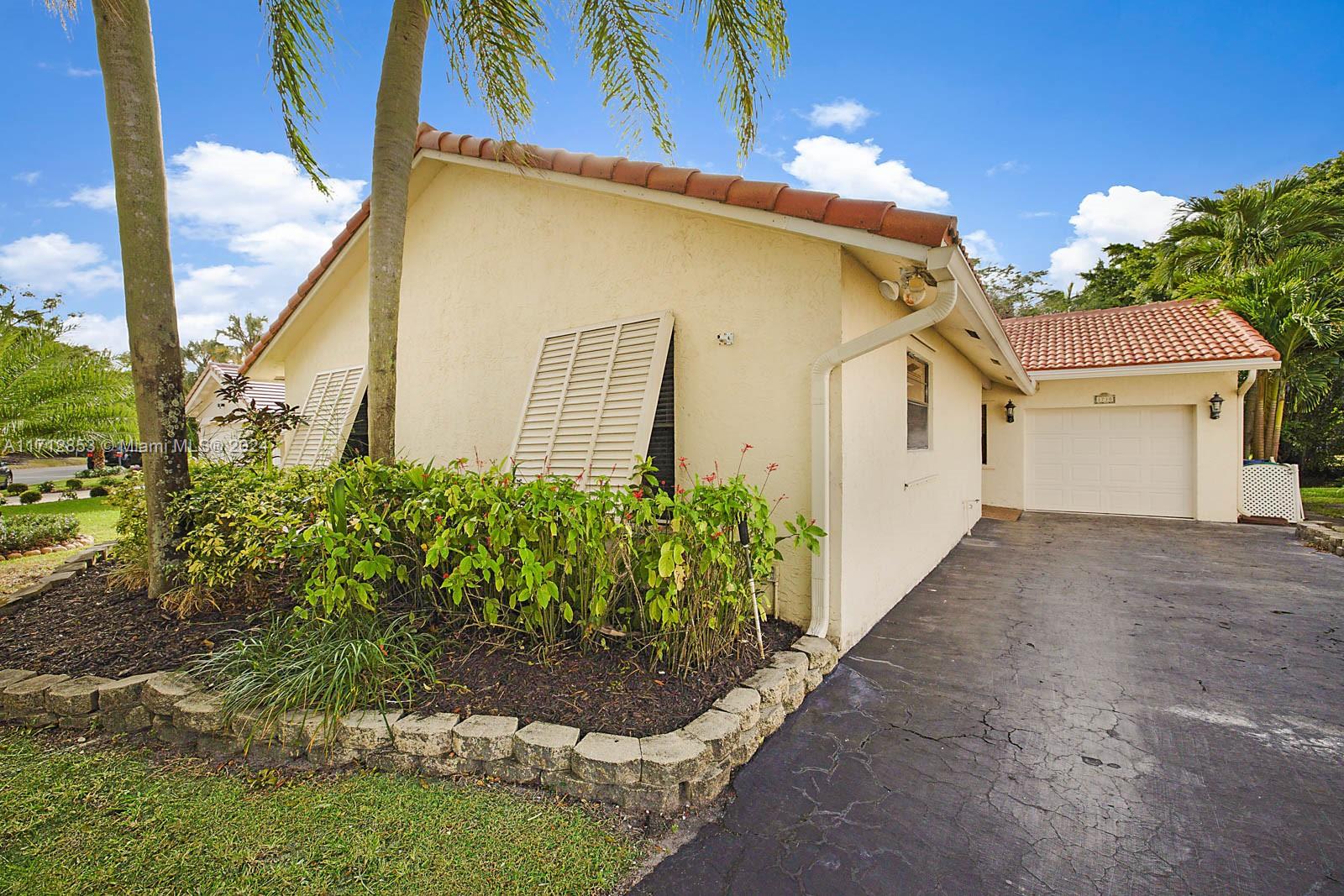 Located in the highly sought after community of Ramblewood Villas. Surrounded by lush landscaping. Located on a spacious waterfront lot. Park on your extended driveway & enter through the front doors & you are immediately greeted by the vaulted ceiling & natural lighting with views out to your screened patio & water view! 3 bedrooms 2 bathrooms and 1 car garage. Upgraded kitchen w/ granite countertops. Primary Bedroom features large walk-in closet and upgraded en-suite bathroom w/ walk in shower and dual vanities. Spacious bedrooms. Over 1,665 total square feet. Full size washer & dryer in the garage. New roof (2022) Hurricane Shutters. Community Pool. All ages community. HOA only $160 a month. Great location & surrounded by parks, shopping, dining and all that Coral Springs has to enjoy!
