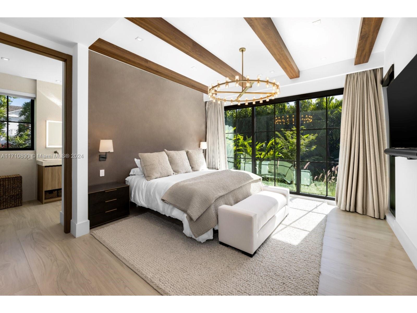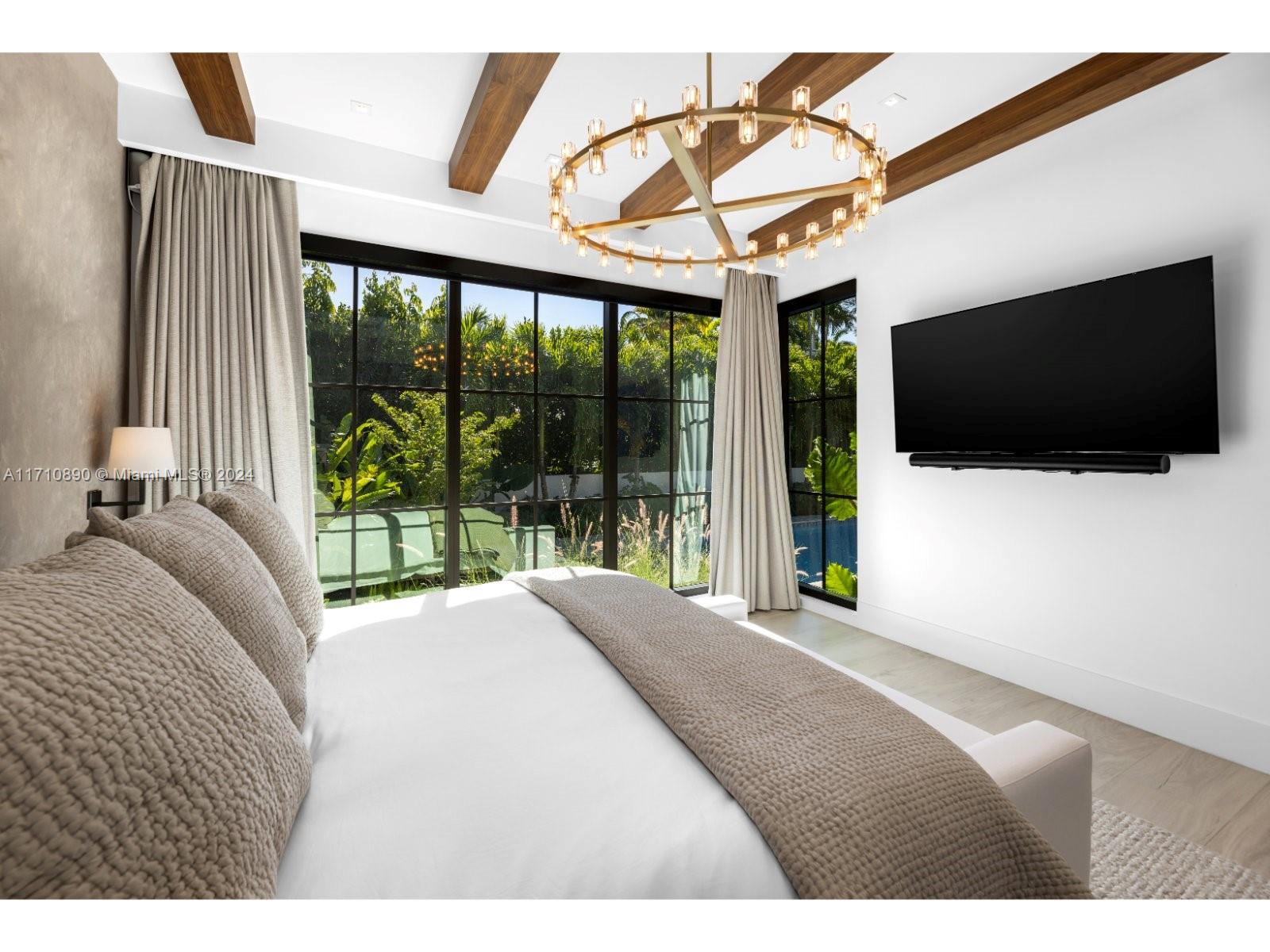 Elevate your lifestyle in this brand-new estate completed in 2024, on prestigious La Gorce Island. This architectural masterpiece features 15 ft ceilings, abundant natural light, 5 bedrooms, 5/1 bathrooms & 4,288 SF of living area and offers a seamless flow from the indoors to the outdoor living areas. The gourmet kitchen is an epicurean dream, featuring porcelain countertops, Italkraft cabinetry, and top-of-the-line appliances. The primary suite includes a spacious walk-in closet and spa-inspired bath with garden views. Landscaping by MAKwork creates an entertainer’s paradise featuring pool, spa, summer kitchen and two fireplaces. Additional features include a fully equipped gym, space for a car lift, and generator. Enjoy the perfect blend of privacy, elegance, and upscale functionality.