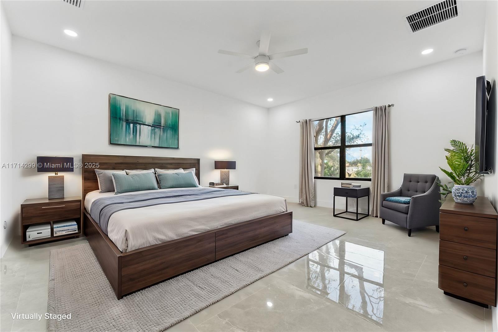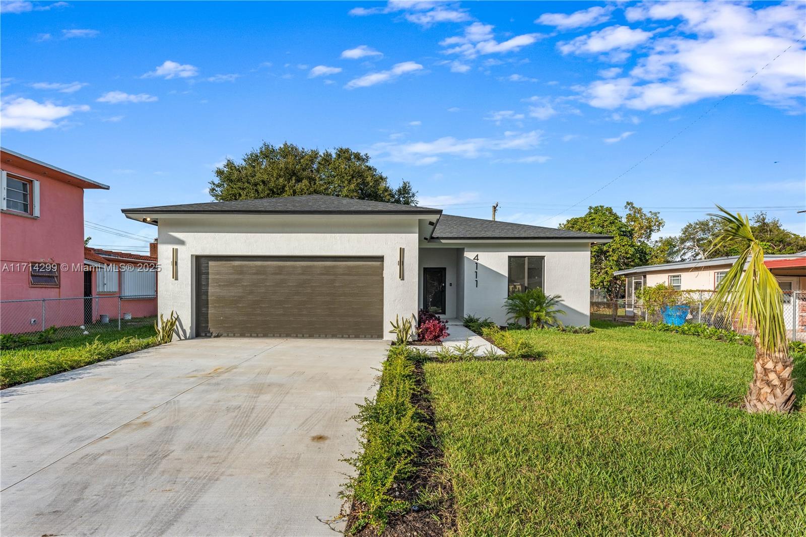 Stunning new construction home, ideally located near the beach, Hard Rock Hotel & Casino, Hard Rock Stadium, and Gulfstream Park. This luxury designer styled home has 4-bedrooms, 3.5-baths, a 2 car garage, and features two on-suite bedrooms with private bathrooms. One can easily be an in-law suite or perfect guest room. This home also has impact windows, doors, custom closets, and Bluetooth-enabled front door and garage door. It boasts 32x32 porcelain tiles, quartz countertops with waterfall edge, and upgraded Samsung stainless steel appliances. The spacious fenced yard includes irrigation and room for a pool. No HOA. NO FLOOD ZONE. You will have peace of mind with this turn key new home!
