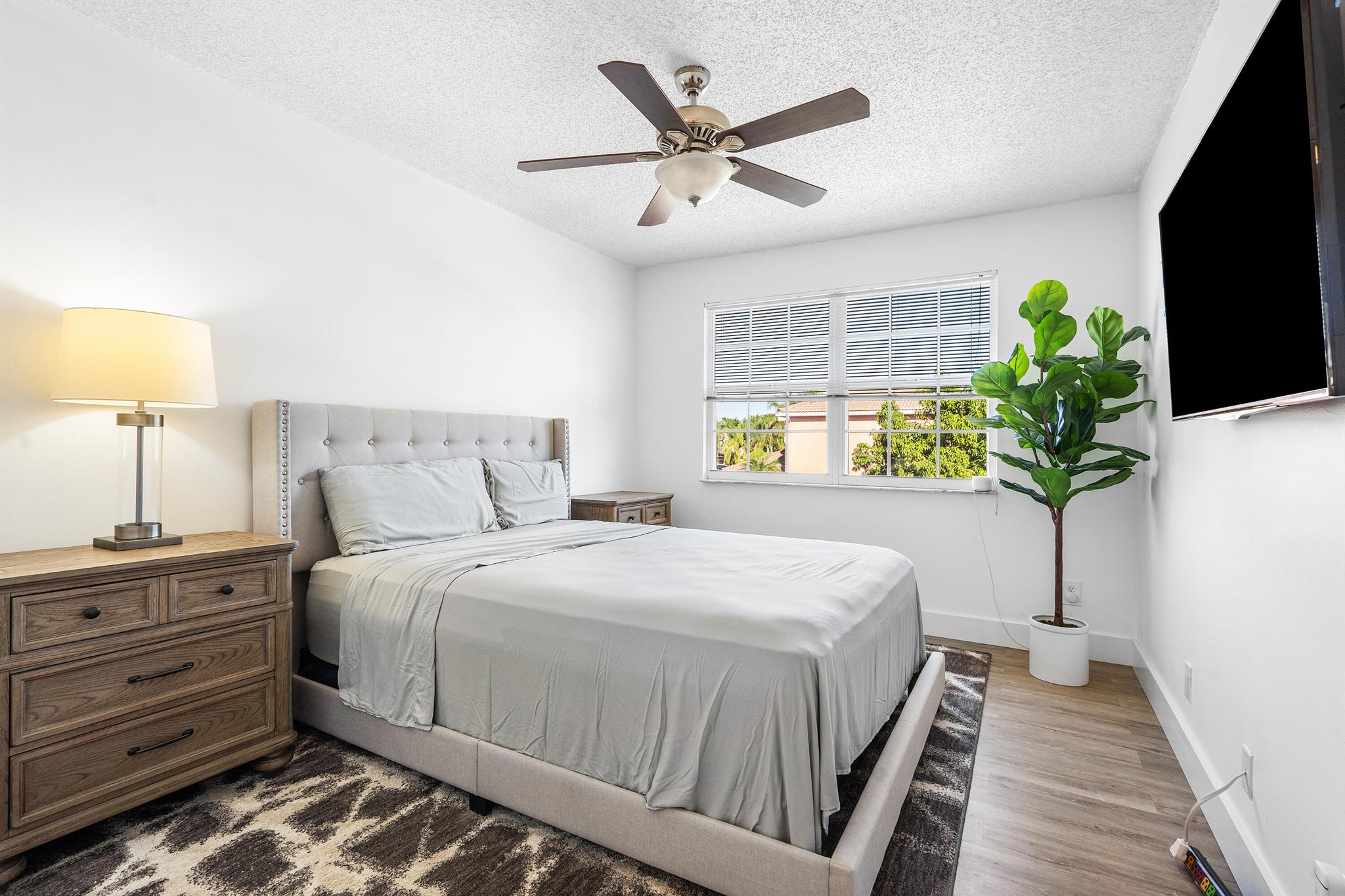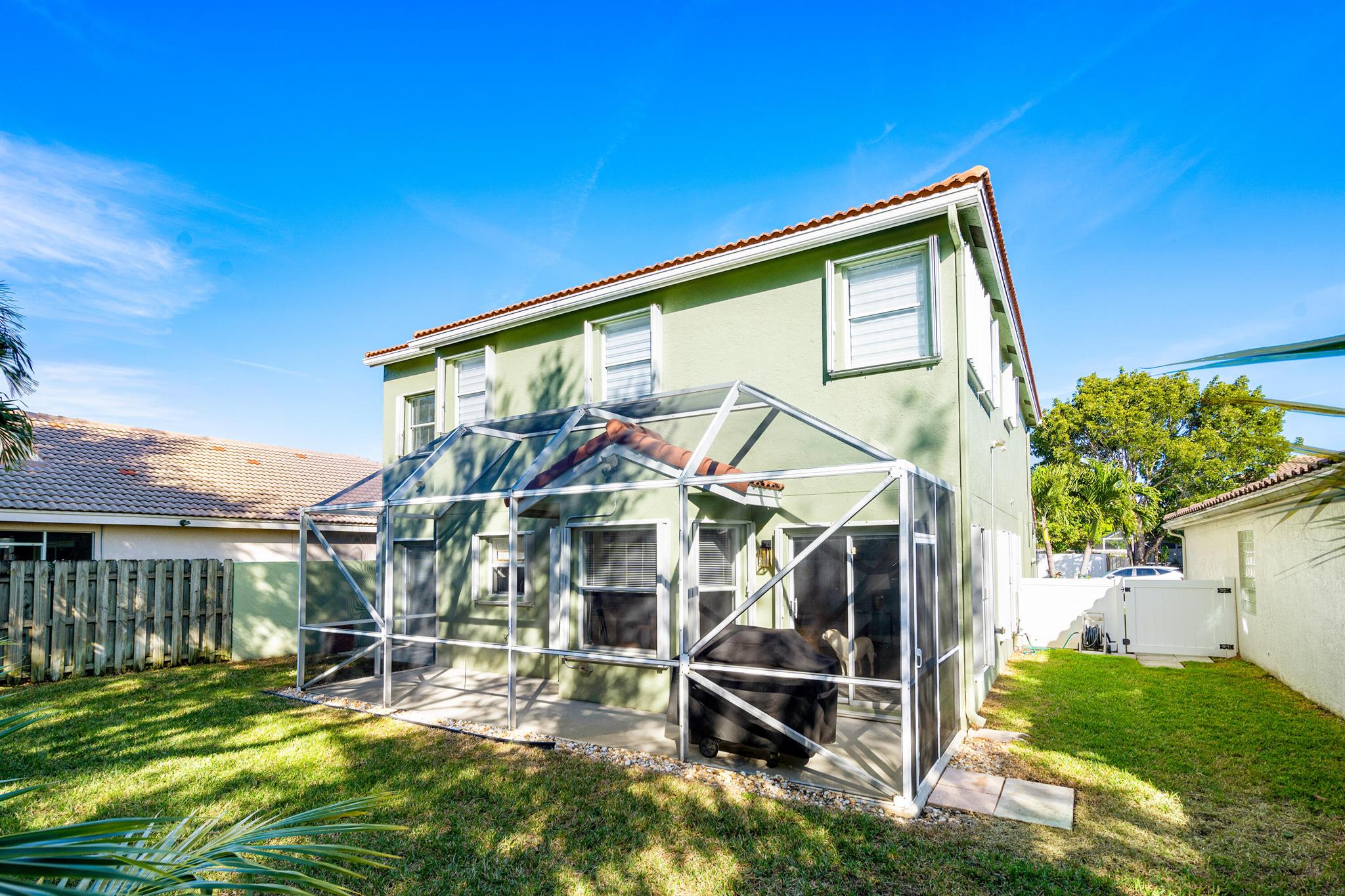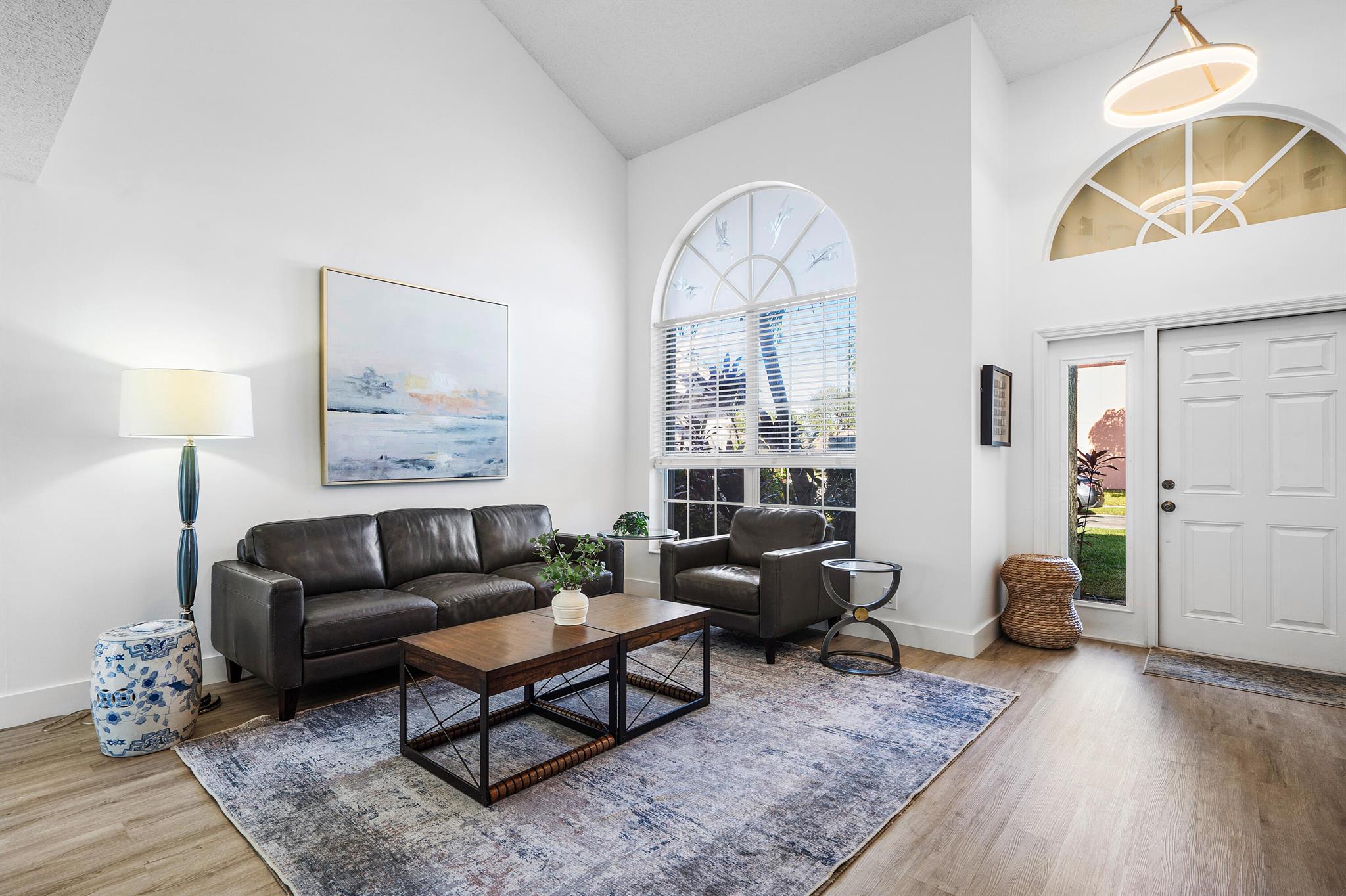 Welcome to your 4 bed / 2.5 bath turnkey single family home in the Lakes of Boca Raton! Walk into soaring ceilings, arched windows and tons of natural light. Wood Floors throughout the main living area, high baseboards and modern kitchen, featuring: quartz countertops, island with storage, pantry, Stainless Steel Appliance package and tiled backsplash. Second floor sizable Master with trey ceilings, oversized walk-in closet and gorgeous master bath with stunning porcelain tiled floors and walls, floating vanity, large frameless glass shower enclosure and soaking tub. Two other large bedrooms, one with a walk-in closet accompanied by a beautiful second bath with stone accent wall, Italian Cabinetry and modern mirror, tile and hardware. Fully fenced-in backyard with no rear neighbors.