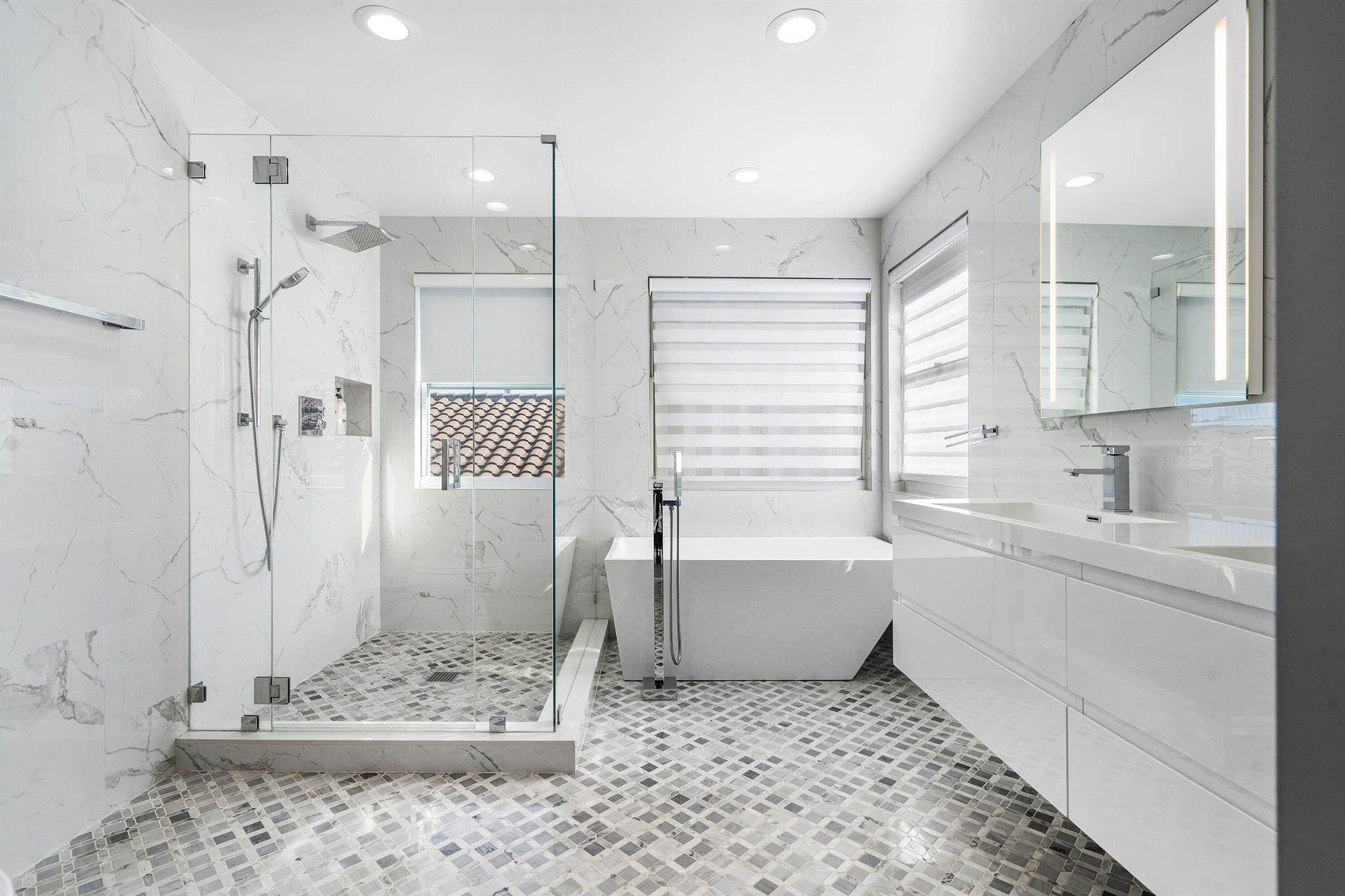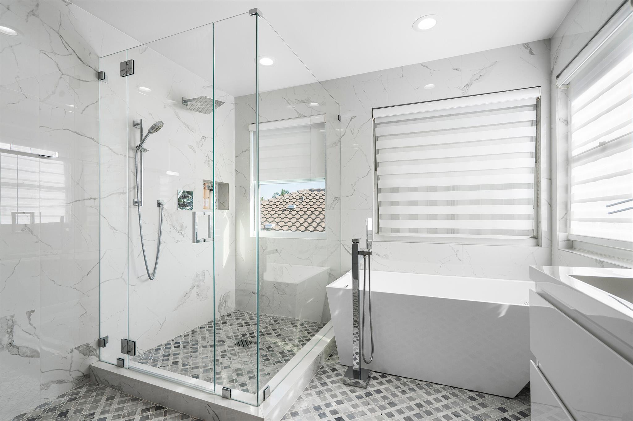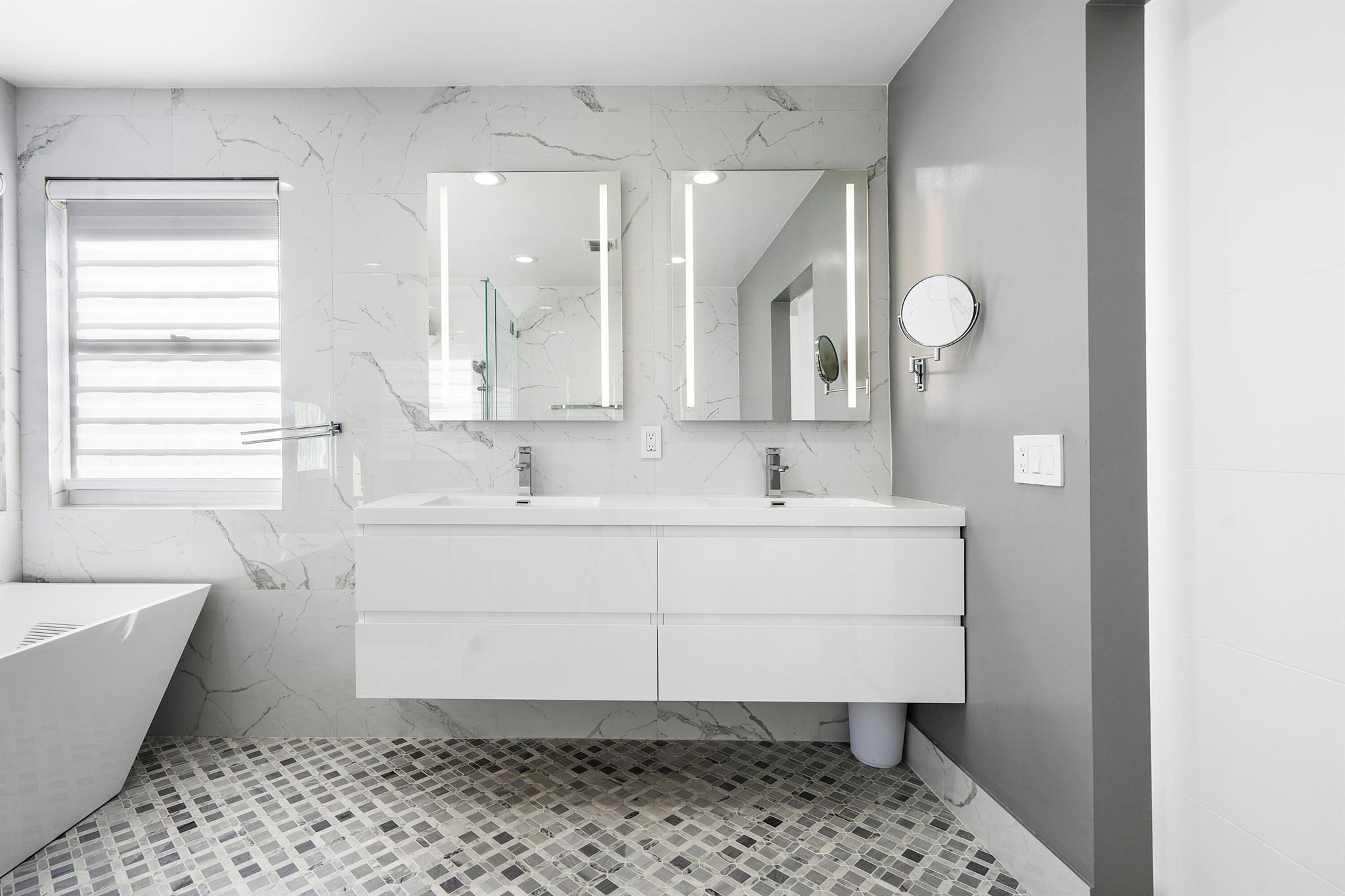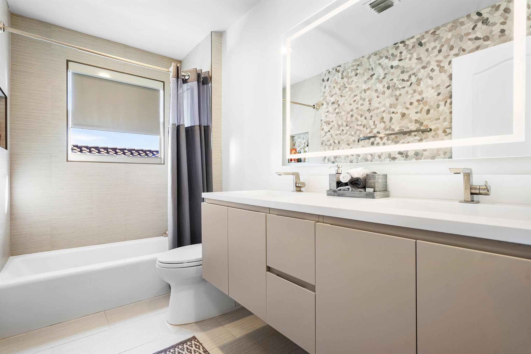 Welcome to your 4 bed / 2.5 bath turnkey single family home in the Lakes of Boca Raton! Walk into soaring ceilings, arched windows and tons of natural light. Wood Floors throughout the main living area, high baseboards and modern kitchen, featuring: quartz countertops, island with storage, pantry, Stainless Steel Appliance package and tiled backsplash. Second floor sizable Master with trey ceilings, oversized walk-in closet and gorgeous master bath with stunning porcelain tiled floors and walls, floating vanity, large frameless glass shower enclosure and soaking tub. Two other large bedrooms, one with a walk-in closet accompanied by a beautiful second bath with stone accent wall, Italian Cabinetry and modern mirror, tile and hardware. Fully fenced-in backyard with no rear neighbors.