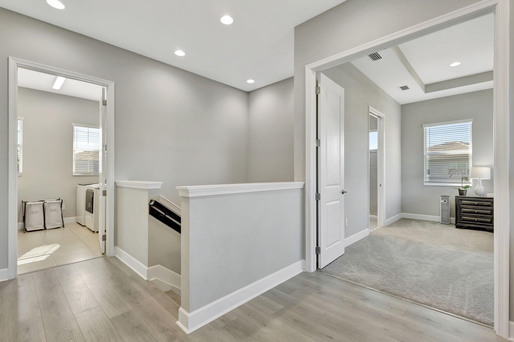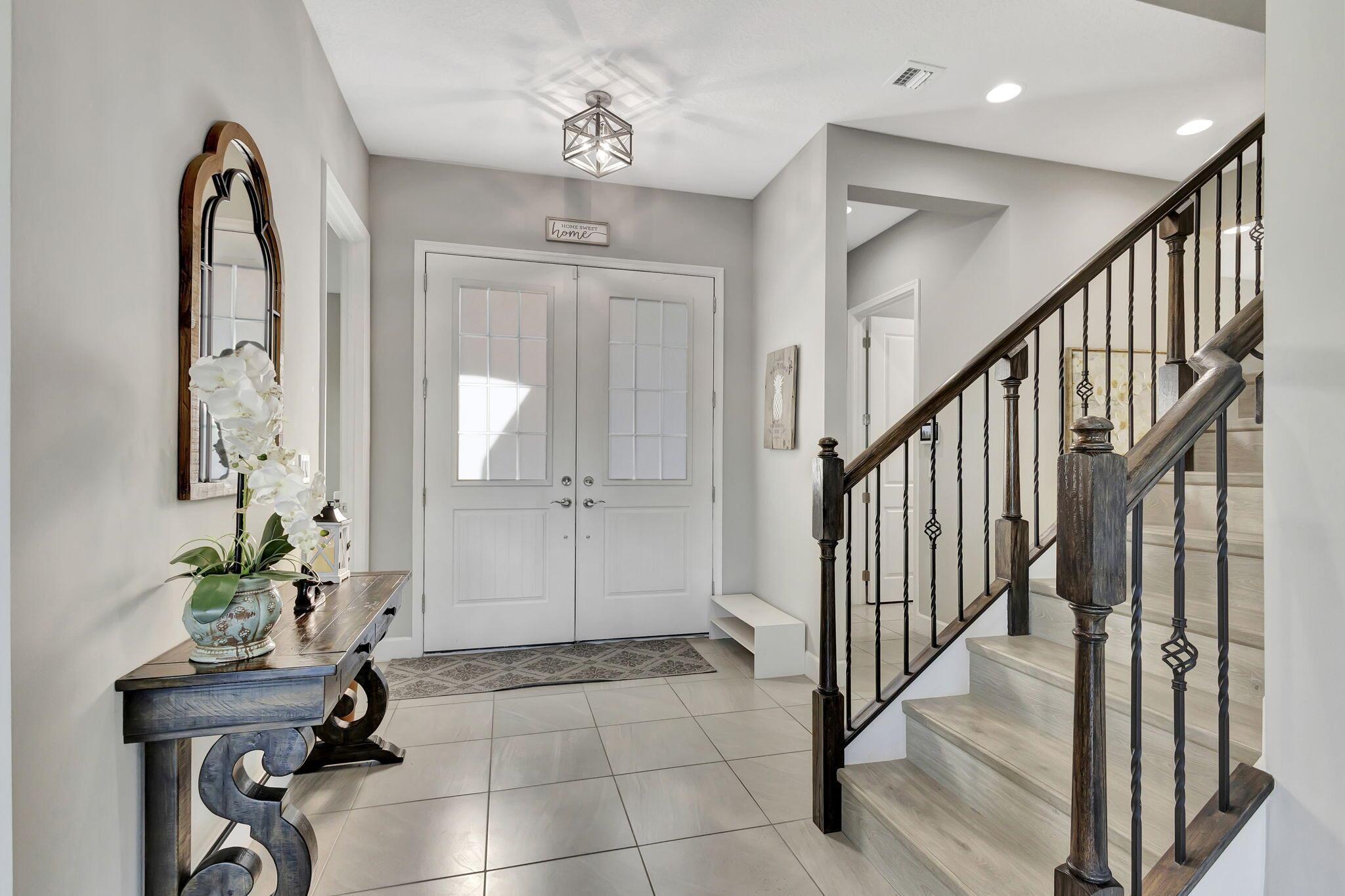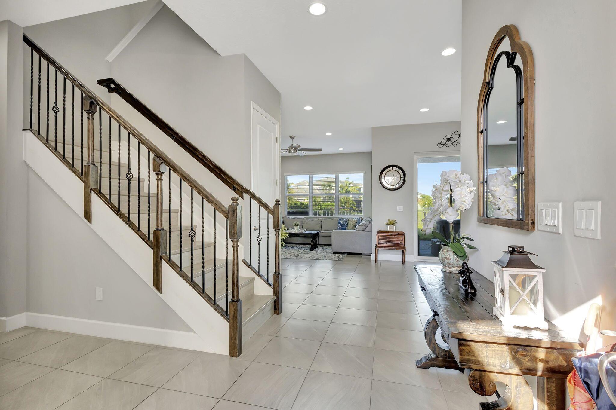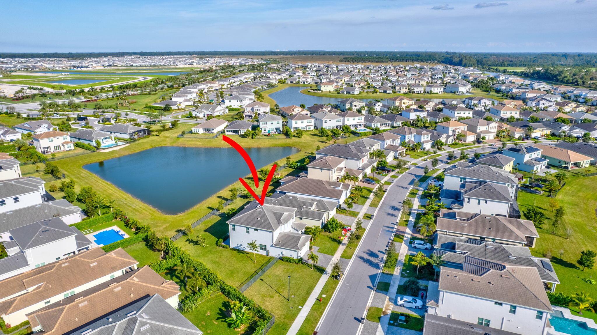 This move-in-ready gem features an extra-large corner lot with breathtaking lake views and offers a full-size bedroom on the first floor with a private full bathroom, plus an additional powder room--ideal for hosting guests or providing a cozy space for a mother-in-law suite. Looking for a loft or living space upstairs, we have it all! Bright, airy spaces and a spacious terrace invite you to relax while enjoying serene sunsets. The community boasts a tropical water park and easy access to walking and biking trails, shops, restaurants, and top-rated schools. High-end finishes and sophisticated design details create a stylish yet welcoming ambiance. Forget waiting for new construction--this immaculate home is ready for you to move in