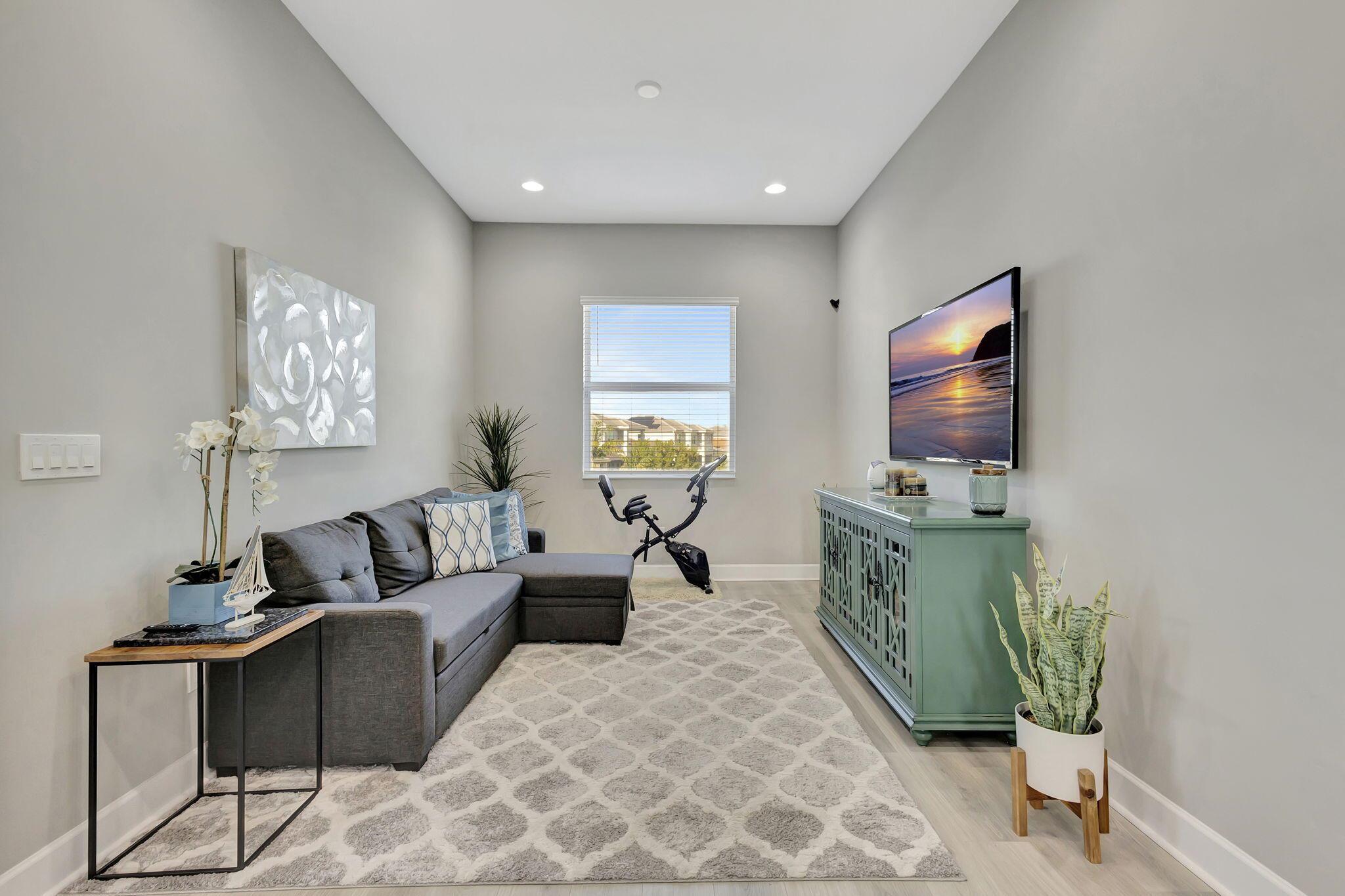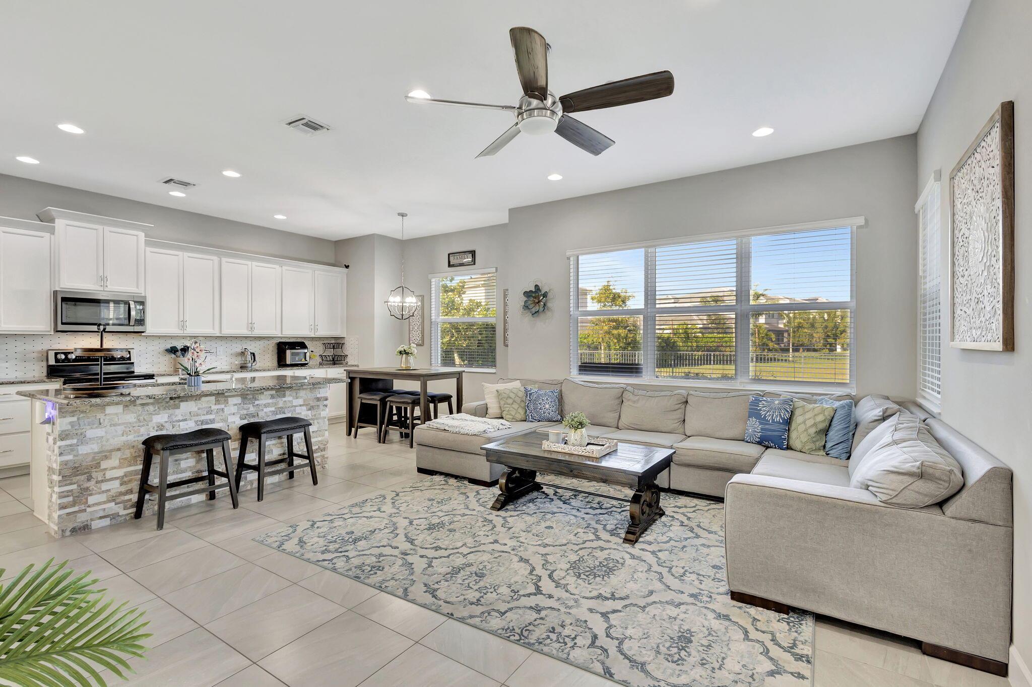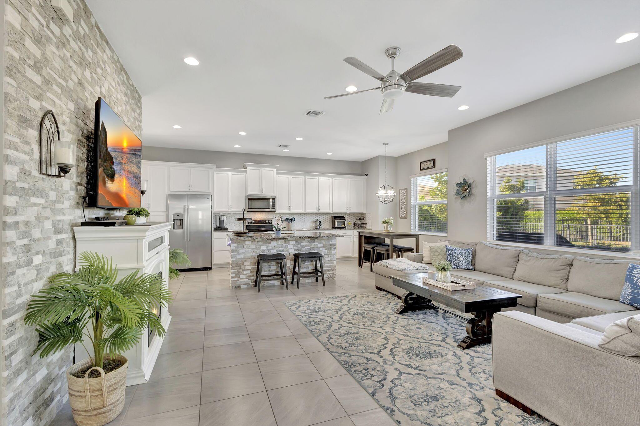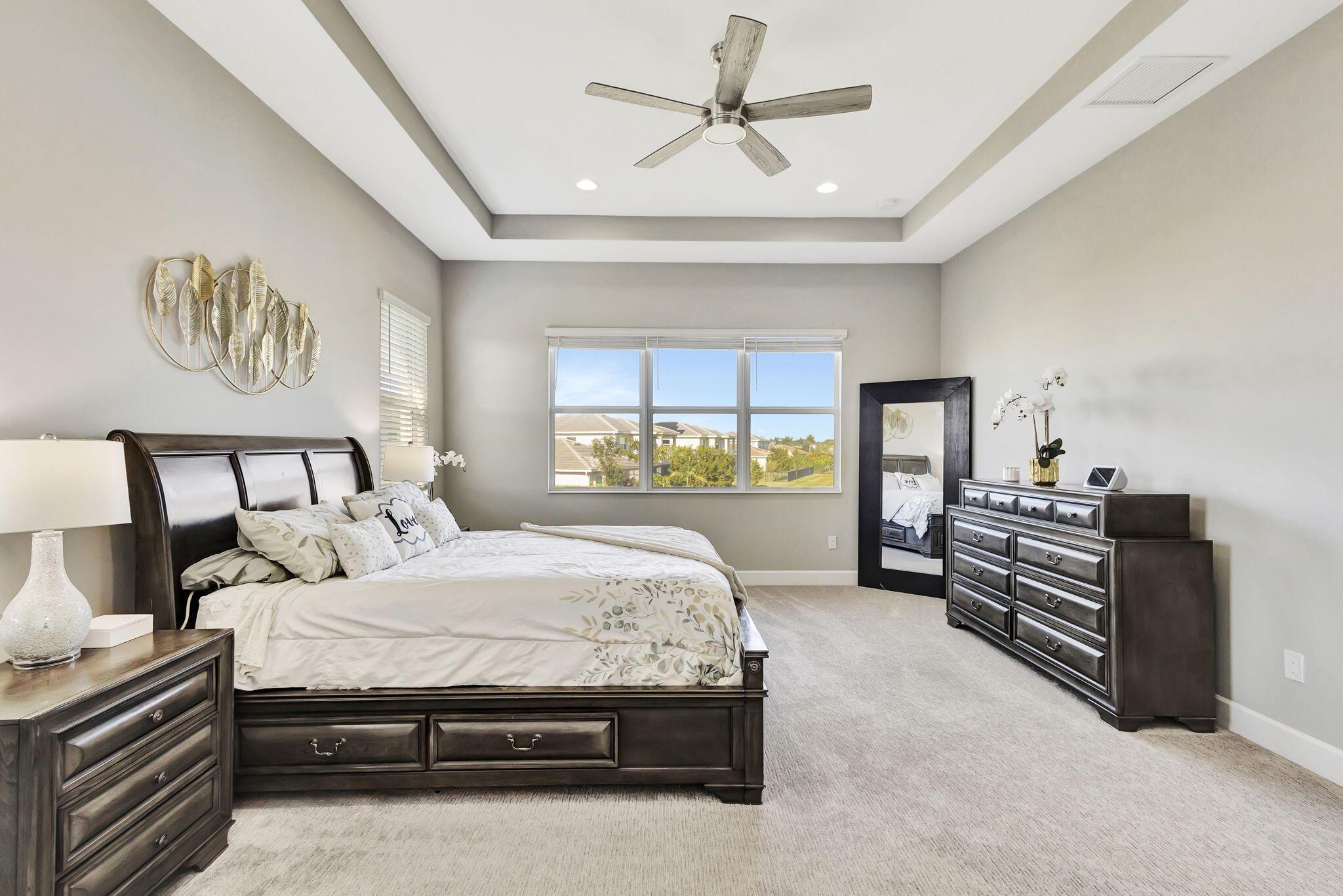 This move-in-ready gem features an extra-large corner lot with breathtaking lake views and offers a full-size bedroom on the first floor with a private full bathroom, plus an additional powder room--ideal for hosting guests or providing a cozy space for a mother-in-law suite. Looking for a loft or living space upstairs, we have it all! Bright, airy spaces and a spacious terrace invite you to relax while enjoying serene sunsets. The community boasts a tropical water park and easy access to walking and biking trails, shops, restaurants, and top-rated schools. High-end finishes and sophisticated design details create a stylish yet welcoming ambiance. Forget waiting for new construction--this immaculate home is ready for you to move in