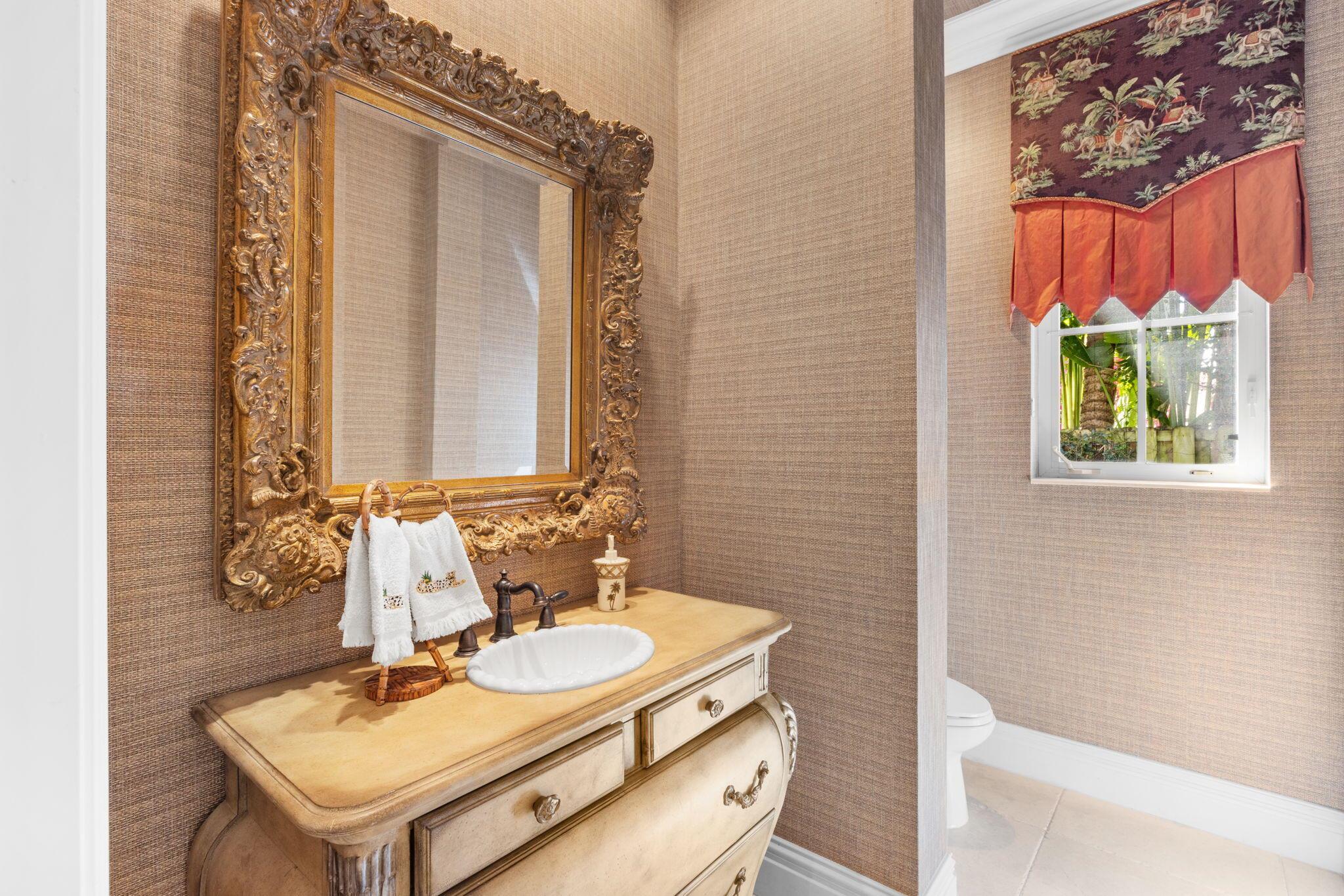 Introducing an extraordinary estate situated in The Sanctuary, one of Boca Raton's most coveted communities. This exceptional residence, nestled on one of the largest lots within the enclave, offers unparalleled luxury and privacy. Boasting over 6,600 square feet of air-conditioned space with soaring ceiling heights, this palatial home features 4 bedrooms, 4 full baths, and 2 powder rooms. Upon arrival, a grand circular driveway sets the stage for the awe-inspiring entry. Passing through the dramatic rotunda foyer, adorned with exquisite architectural details, including chiseled limestone flooring and classic columns, you'll be captivated by the elegant ambiance.