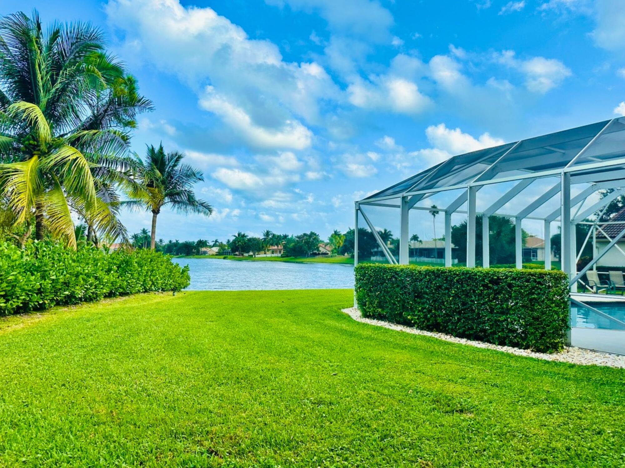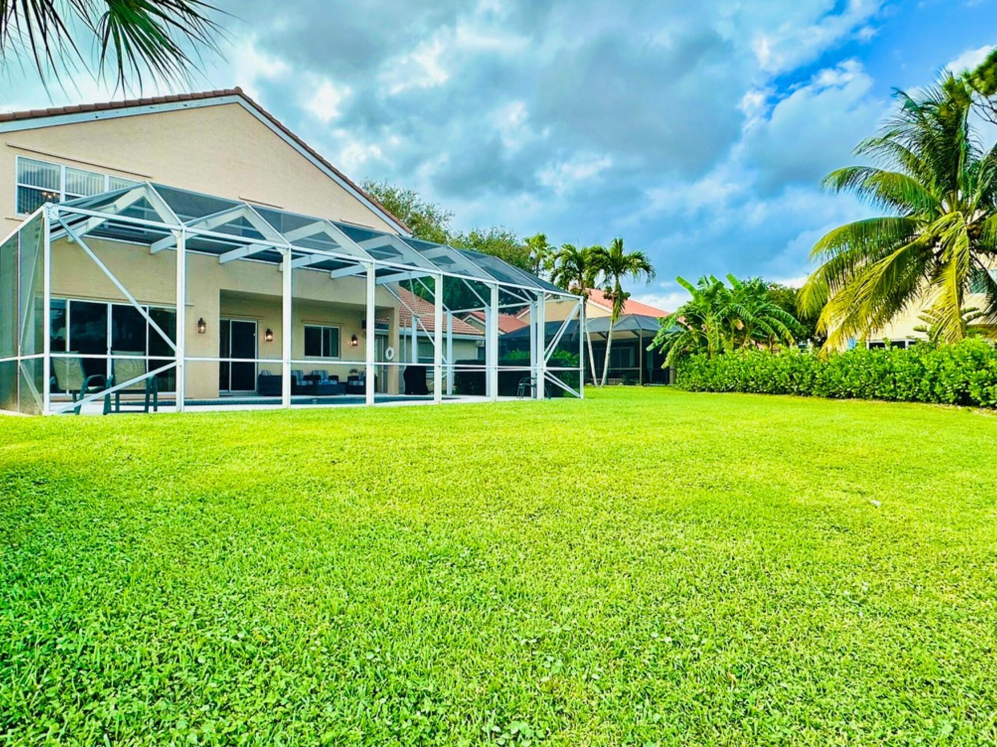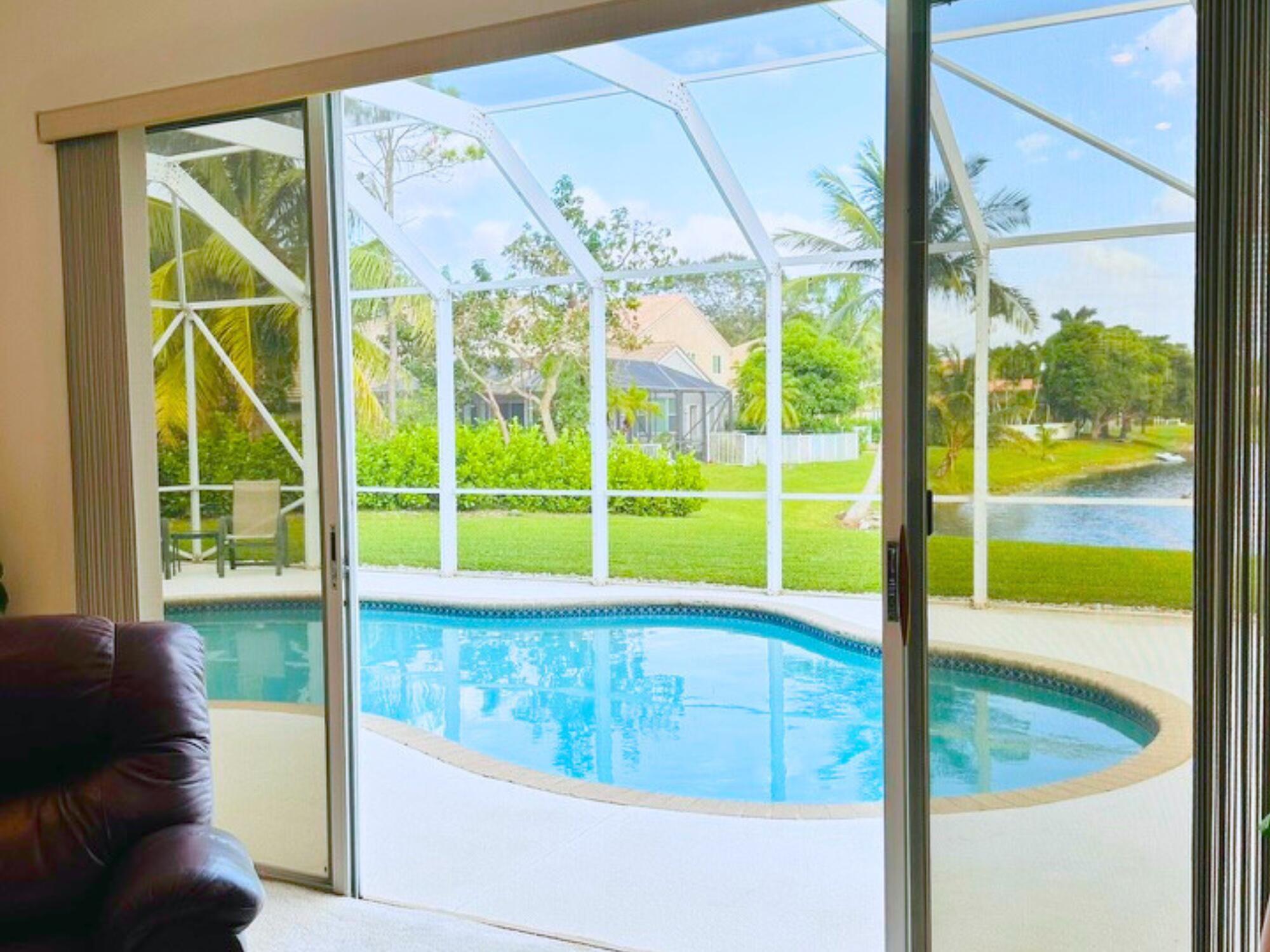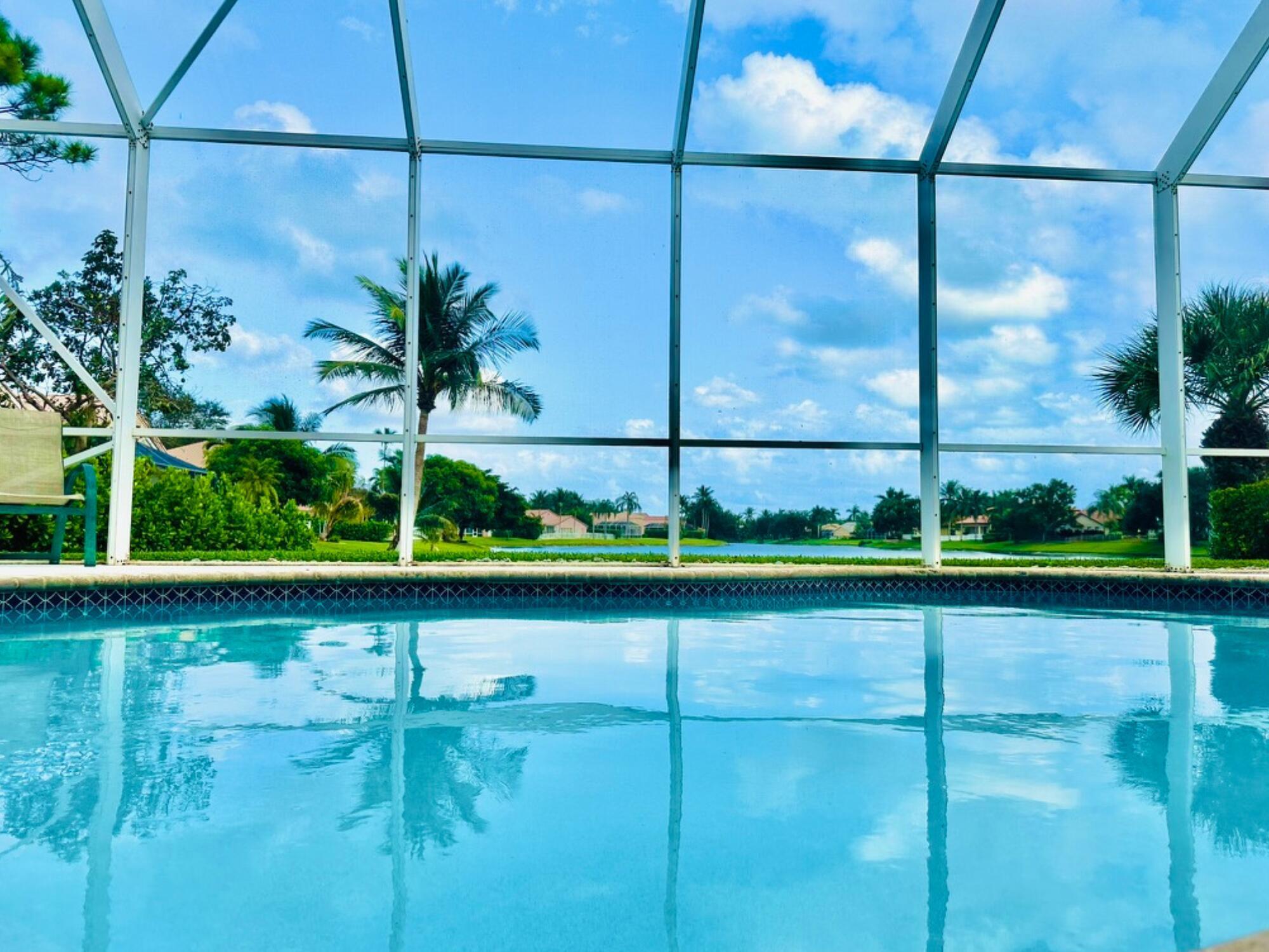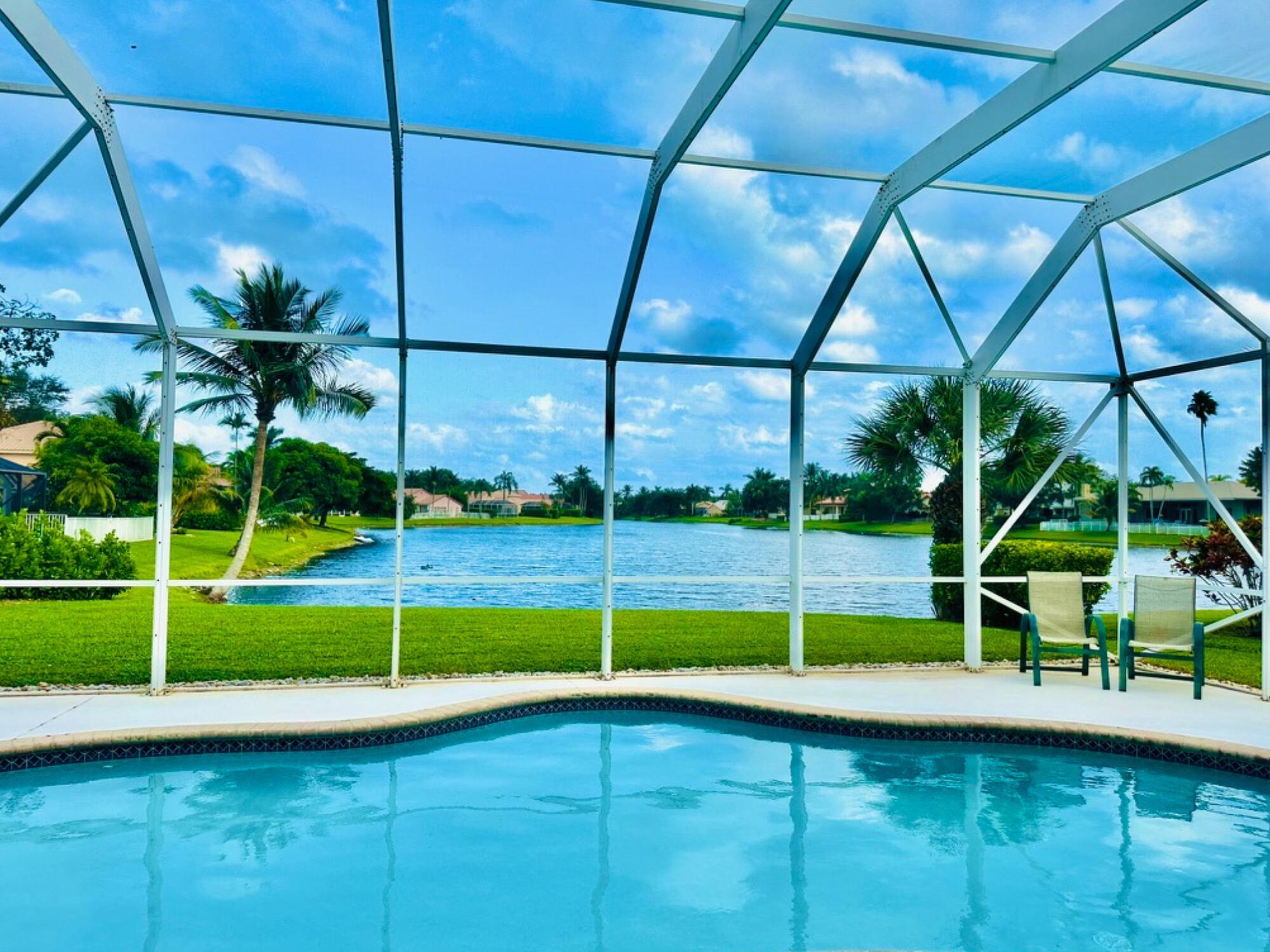 5 Bed, 4 bath home on one of the largest, best lots in this GATED Parkland community where the HOA includes lawn maintenance! This water-view lot gives perfect sunrises from a SOLAR heated screened PRIVATE POOL, and a newly landscaped lawn irrigated with water from the pond behind the home! Flooded with natural light, each large room works for an active household. Spa-like Primary Bath will relax even the most stressed house member. Walk-in closets throughout, huge laundry room and pantry are in addition to the ample attic space. Primary closet has more sqft than one of the bedrooms! Guest room on the first floor is tucked away next to a full bath that leads to the pool. Kitchen with island, Selistone counters and quiet Bosch dishwasher, lead to the Family Room with 2nd set of sliders!