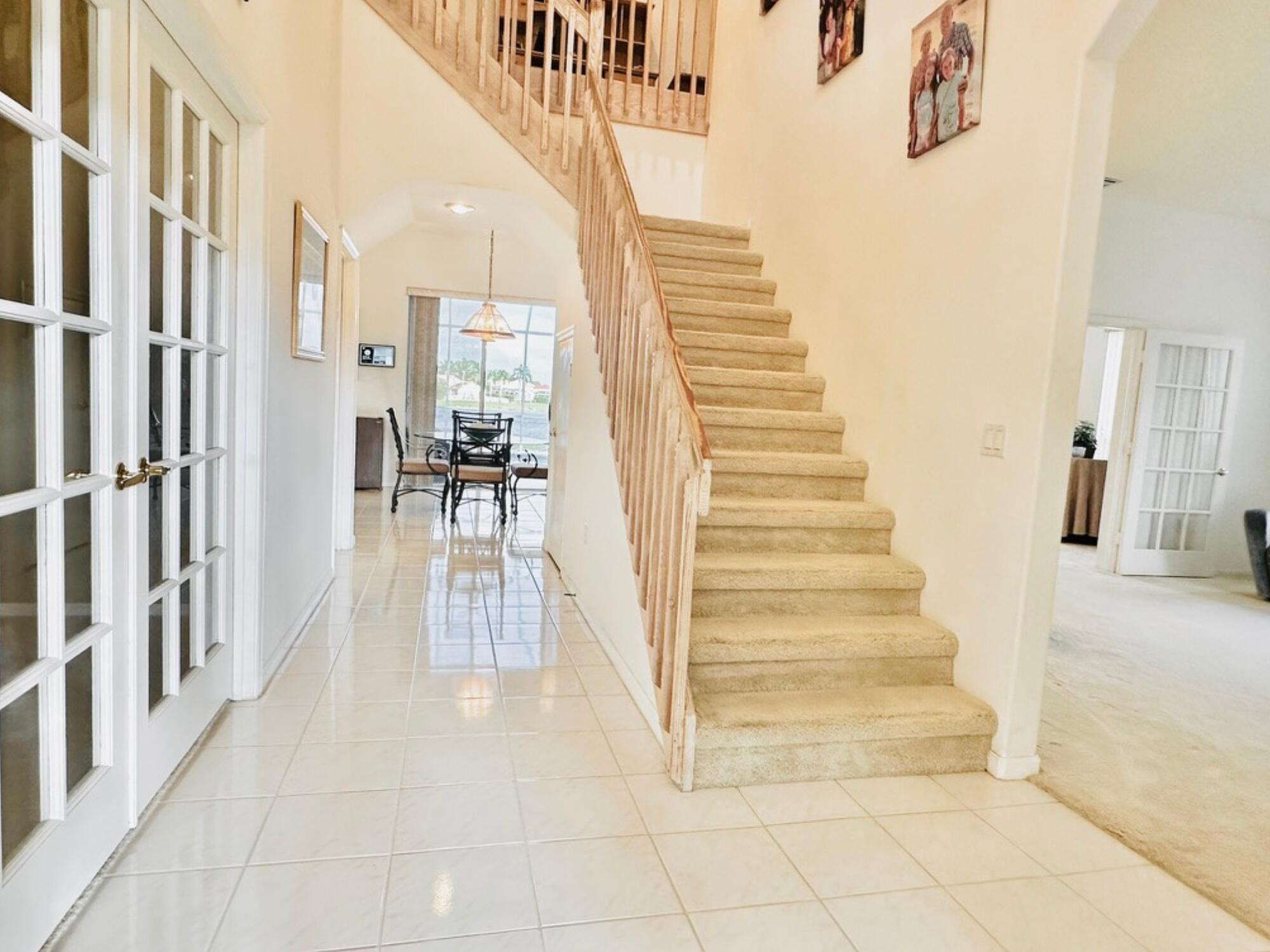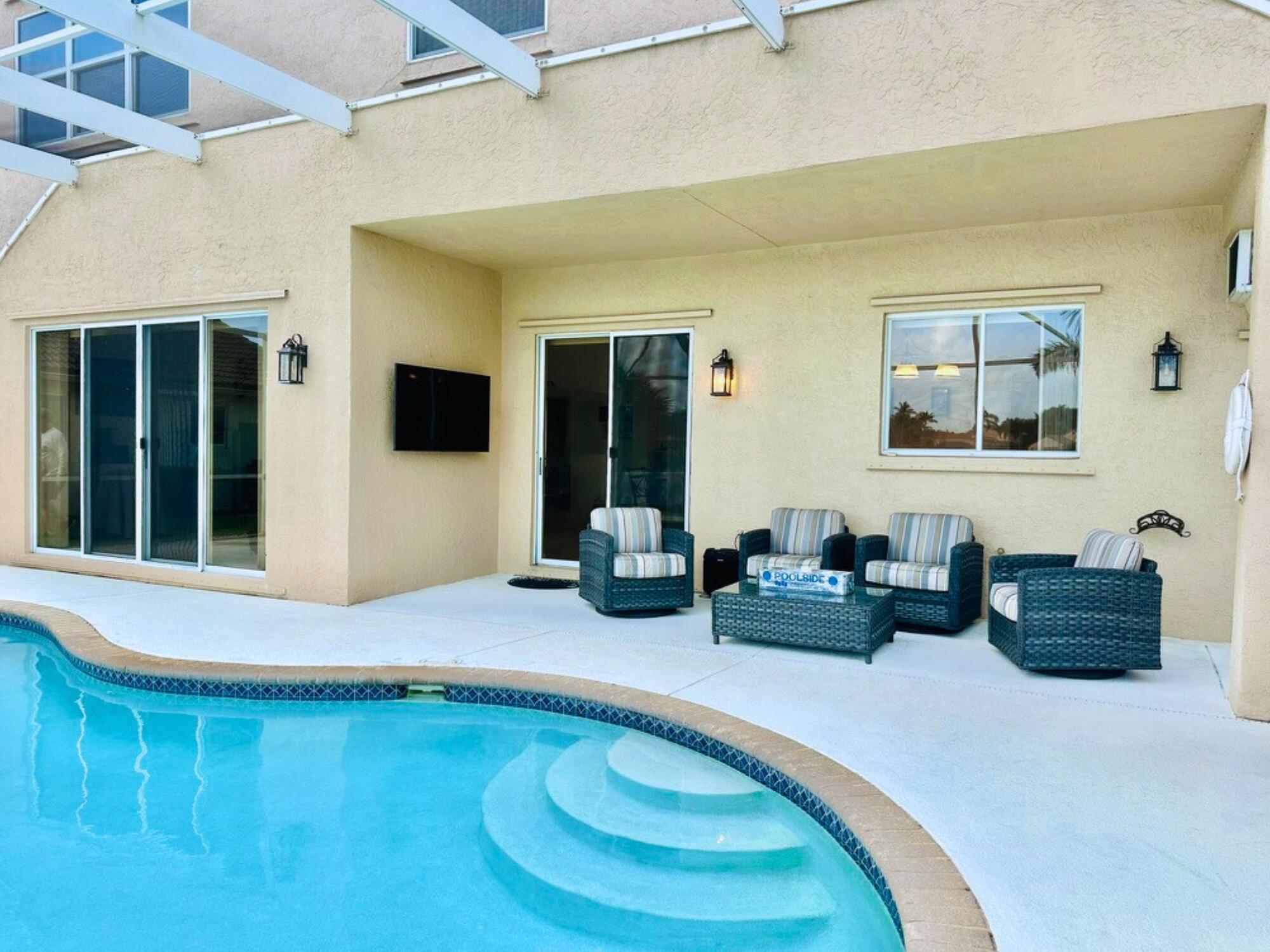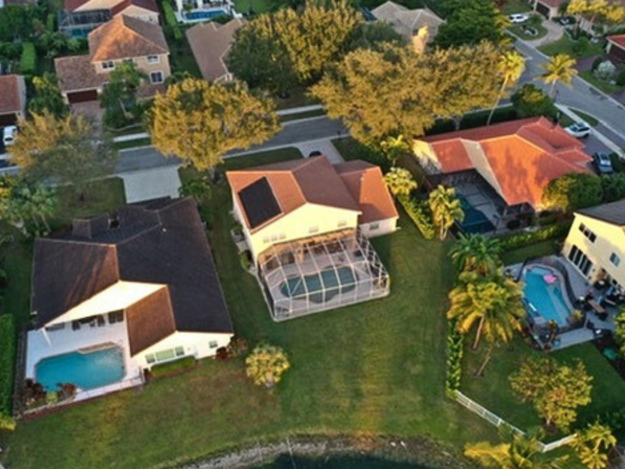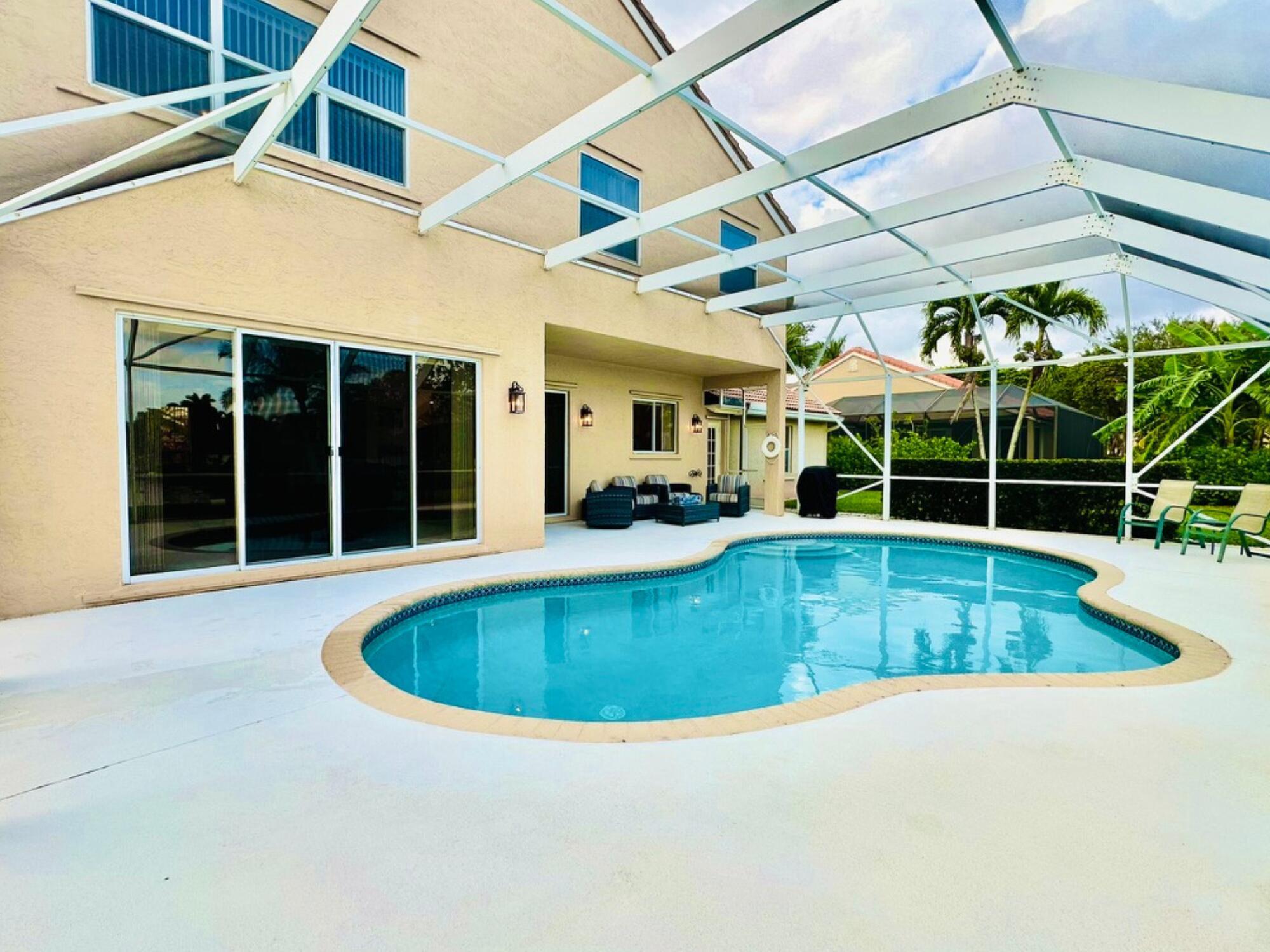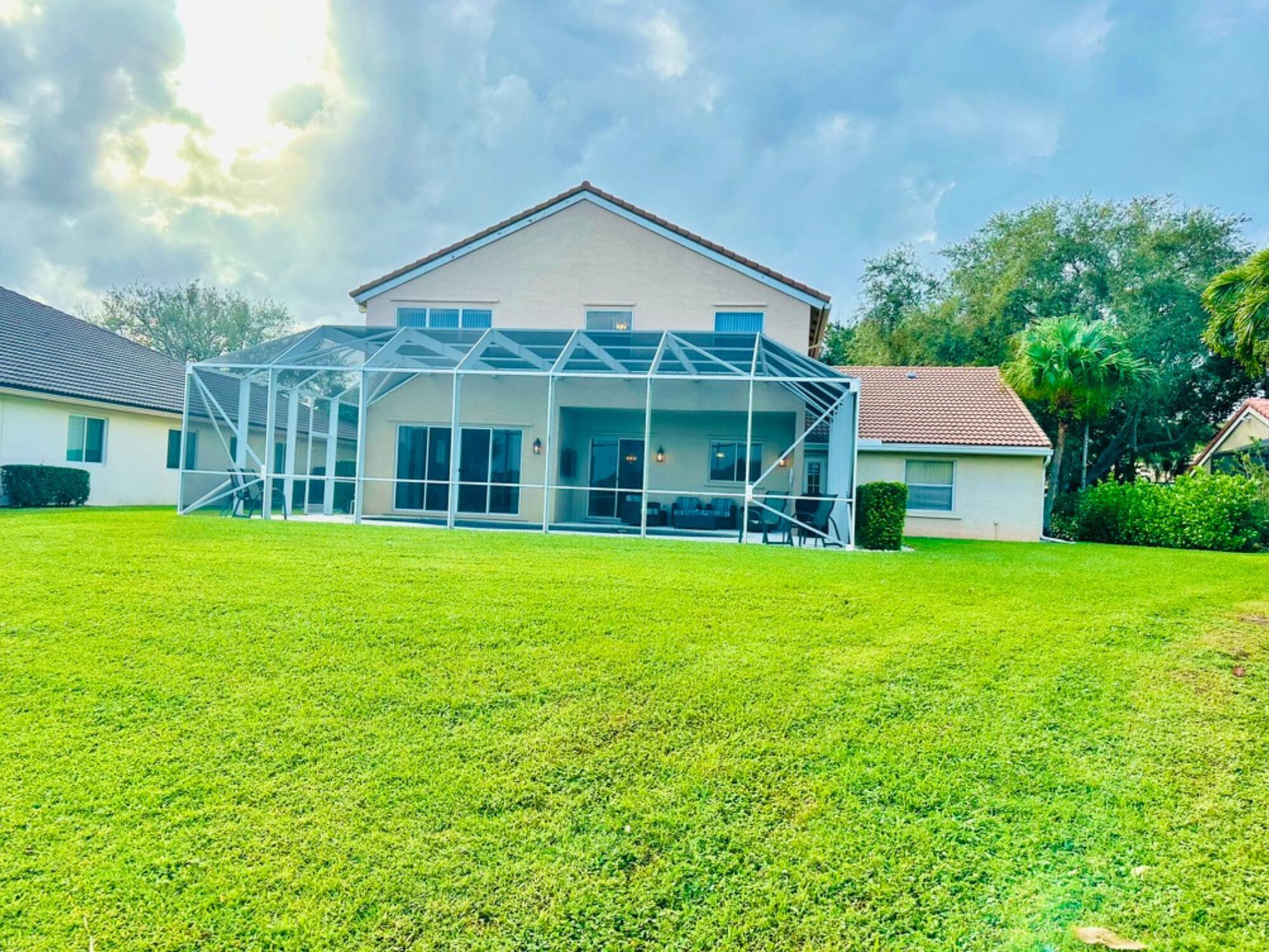 5 Bed, 4 bath home on one of the largest, best lots in this GATED Parkland community where the HOA includes lawn maintenance! This water-view lot gives perfect sunrises from a SOLAR heated screened PRIVATE POOL, and a newly landscaped lawn irrigated with water from the pond behind the home! Flooded with natural light, each large room works for an active household. Spa-like Primary Bath will relax even the most stressed house member. Walk-in closets throughout, huge laundry room and pantry are in addition to the ample attic space. Primary closet has more sqft than one of the bedrooms! Guest room on the first floor is tucked away next to a full bath that leads to the pool. Kitchen with island, Selistone counters and quiet Bosch dishwasher, lead to the Family Room with 2nd set of sliders!