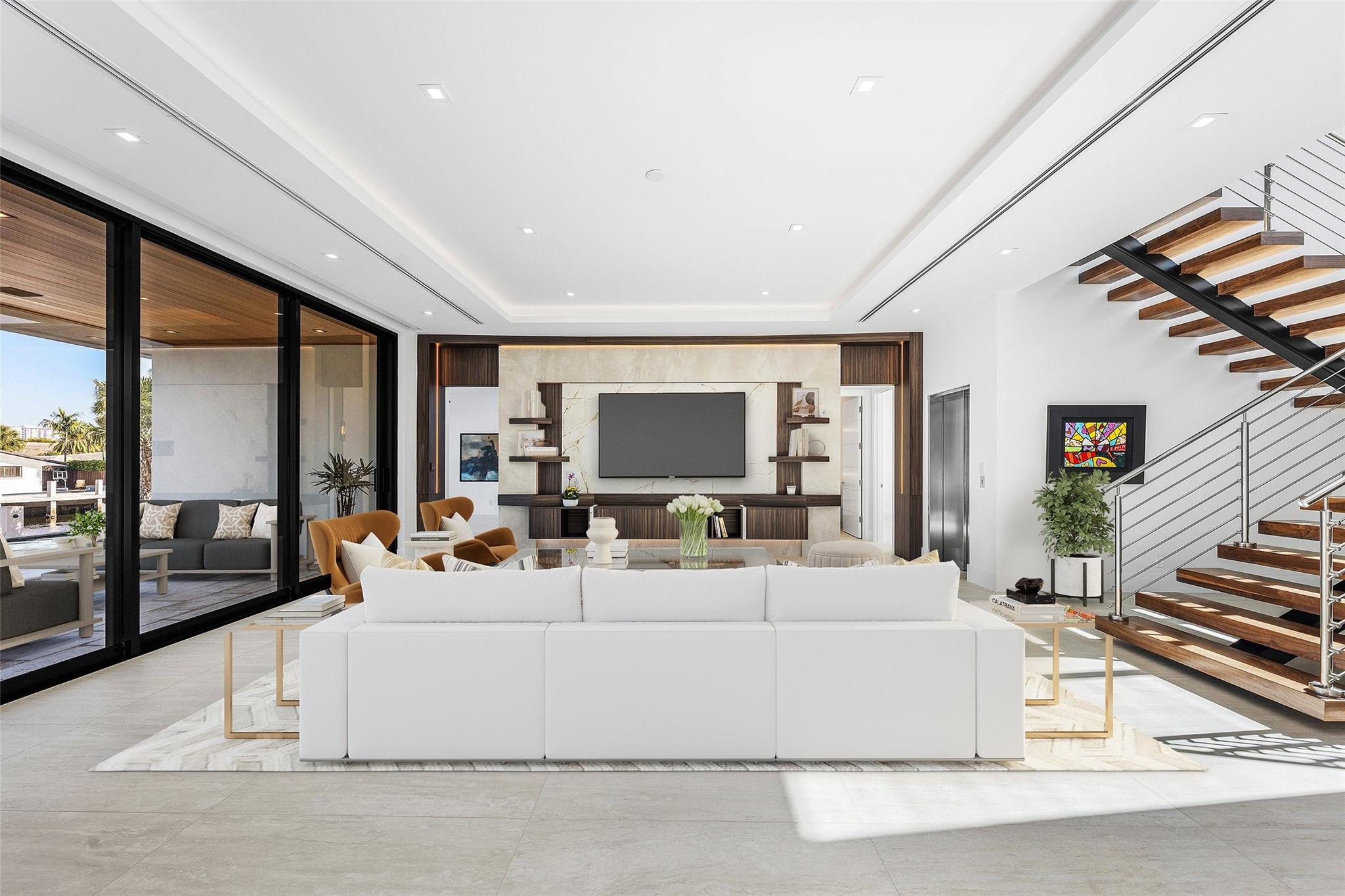 “A Rare Deepwater Masterpiece in Prestigious Coral Ridge”. Modern deep water 2 story estate in prestigious Coral Ridge. Dramatic entry, 22 ft ceiling, floating staircase and open-concept great room. 3+ car air-conditioned garage w/ room for car lifts, gym, 1st floor chef's kitchen, club room with full bar, VIP suite, wine cellar, commercial elevator. 2nd floor, ultra-lux primary suite, separate spa baths & closets, large flexible bonus room/bedroom. Upstairs and downstairs laundry rooms. Resort-style heated pool with spa, summer kitchen pavilion. 100’ dock with 200 amps of power. Lutron smart lighting and extensive entertainment package, Sonos, cameras, Lutron shades. Signature landscape lighting. Call for showing information