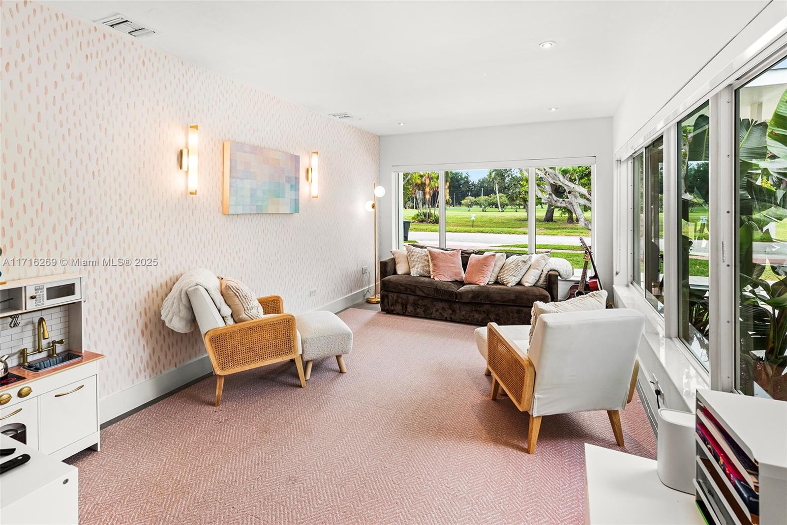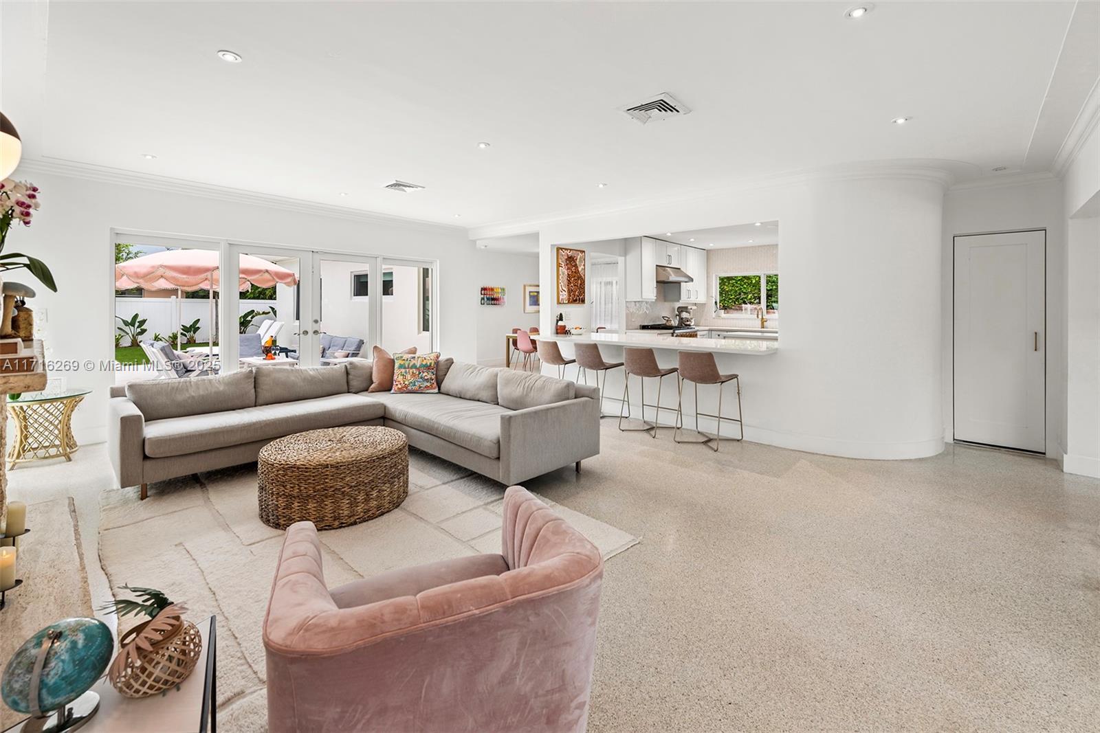 The Colony Palm Beach Meet Palm Springs! Renovated residence situated directly in front of the golf course on guard-gated Normandy Shores Island. The home offers gorgeous views and features 4 spacious bedrooms, remodeled bathrooms, chic sun-filled interiors, a remodeled white & light eat-in gas kitchen with an island, impact windows & doors, a formal dining room, a laundry room with a sink, & ample storage. In the fenced backyard oasis find a gorgeous heated & chilled (for warmer months) saltwater pool, Al Fresco dining, lounging areas, & low maintenance artificial turf. Live the Country Club Lifestyle! The island's pedestrian-friendly atmosphere offers 6 tennis/pickleball courts, clubhouse w/bar & dining, outdoor gym, playground, basketball courts, & soccer/baseball fields.