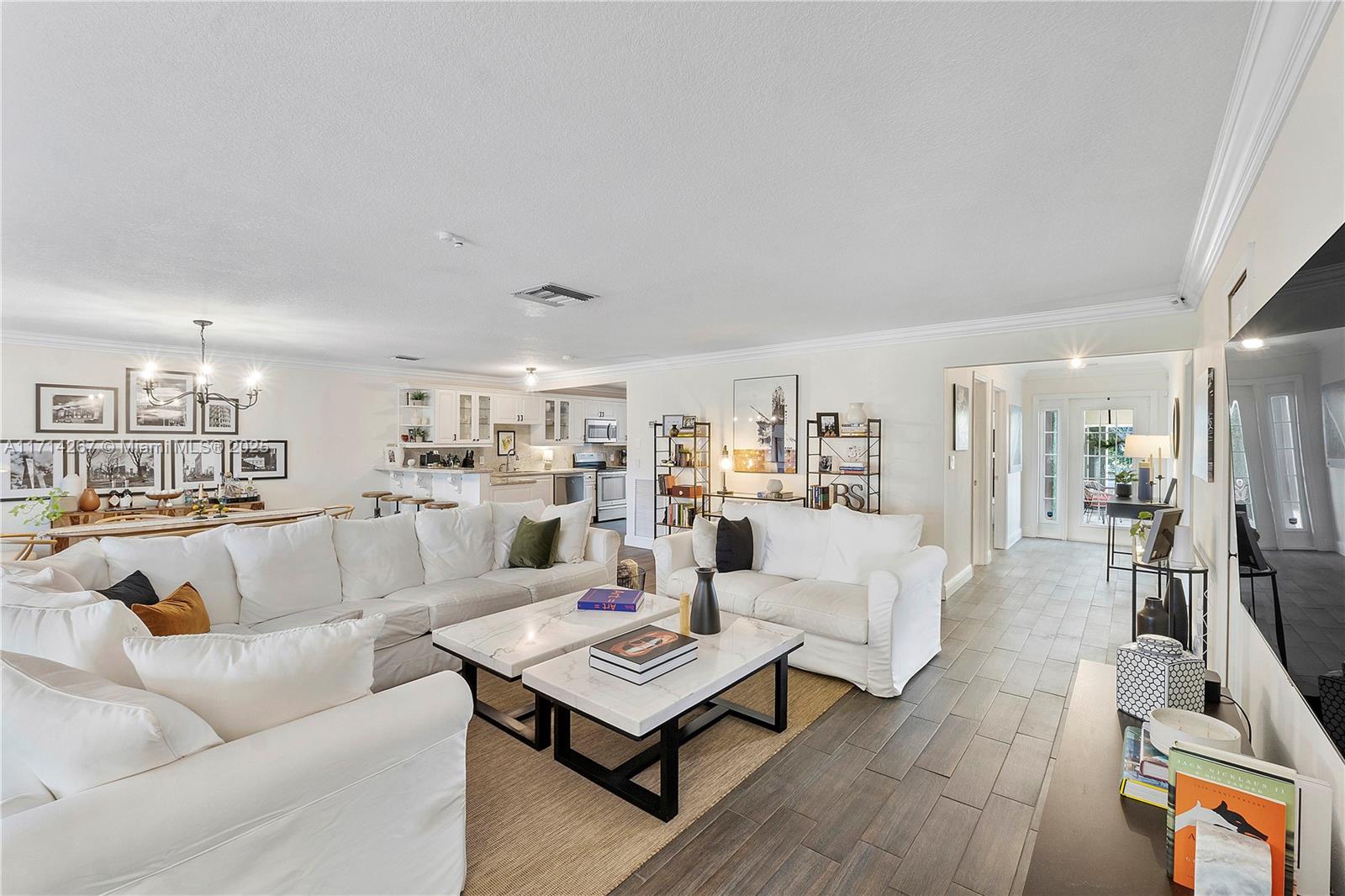 Renovated 3 bed, 3 bath townhome nestled beautifully on the Country Club of Miami Golf Course. This open concept townhome boasts complete impact windows + doors, an oversized primary bedroom with a large walk-in closet, a private ensuite bathroom in each bedroom, a lovely sunroom with plenty of natural light, a dedicated laundry room, and new light fixtures + ceiling fans. Step through impressive French doors to your backyard patio overlooking serene golf course views, perfect for entertaining. The courtyard entrance adds extra privacy and is an ideal opportunity to create a lush gardenscape right at your front door. Roof re-sealed 2023 and attic insulated 2024. Ample garage space provides plenty of additional storage. Enjoy the community's tennis and basketball court amenities.