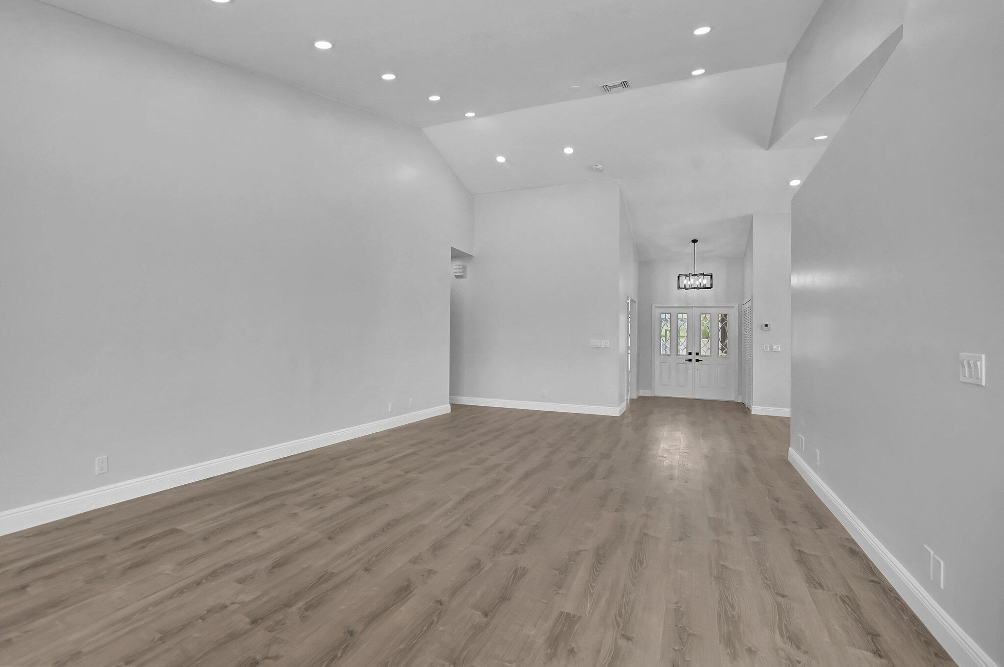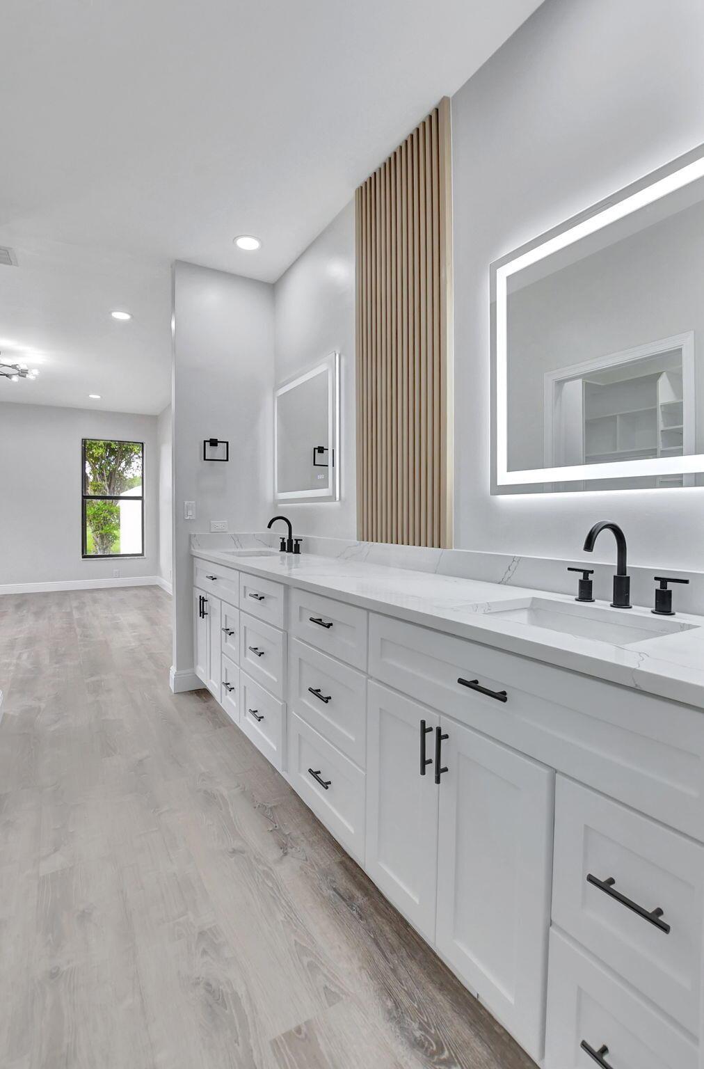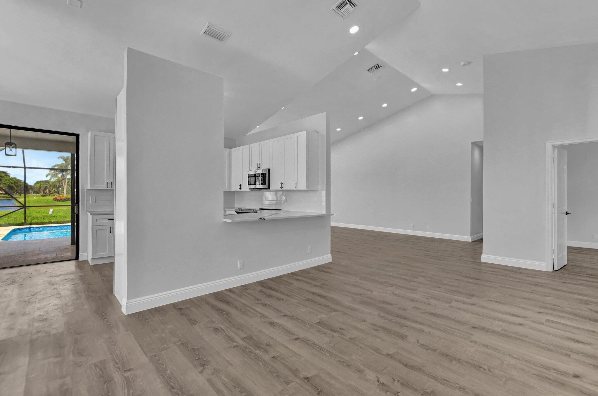 Completely remodeled 3 bedroom 3 bath lake home with 2150sq under air in desirable Boca Greens Golf Club. No membership required, All residents can play. All updated with vinyl flooring throughout, new white shaker cabinets, quartz countertops, subway tile backsplash and new appliances. New recessed lighting, light fixtures and lighted mirrors in bathrooms. Spa like Master bathroom with roman tub, oversized shower with 6 jet shower panel, rainfall shower head that lights up. Screen patio, updated pool with new tile and limestone patio stone. Low HOA fees. Resort-style amenities, tennis courts, championship golf course. Premium cable and ultra fast fiber optic internet is included. A-rated school district too. Close to shopping and restaurants. Don't miss out on this one!