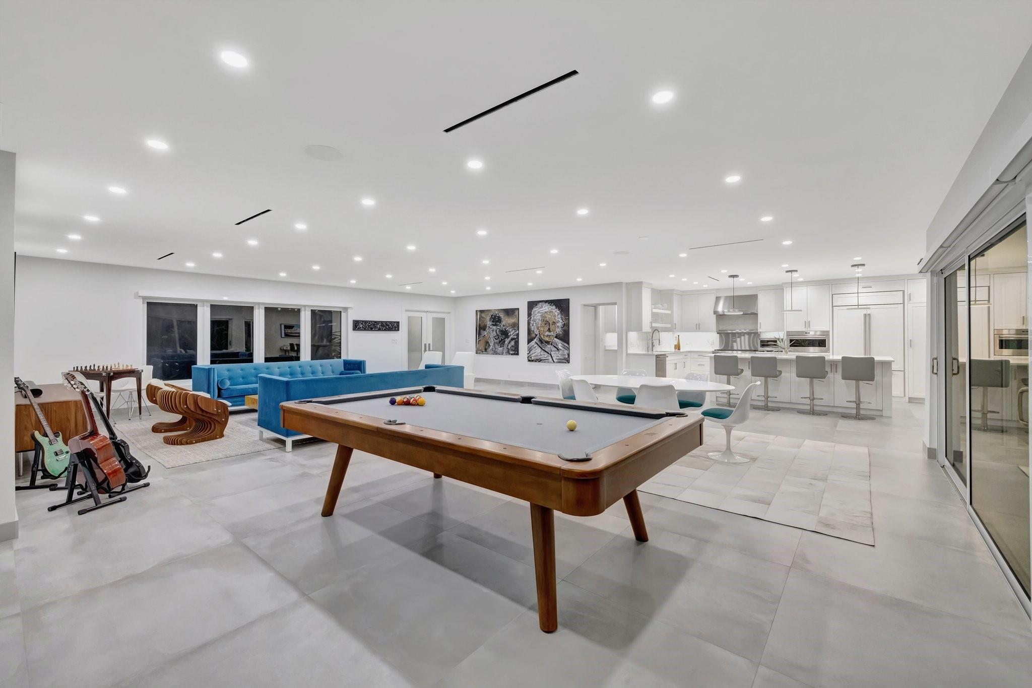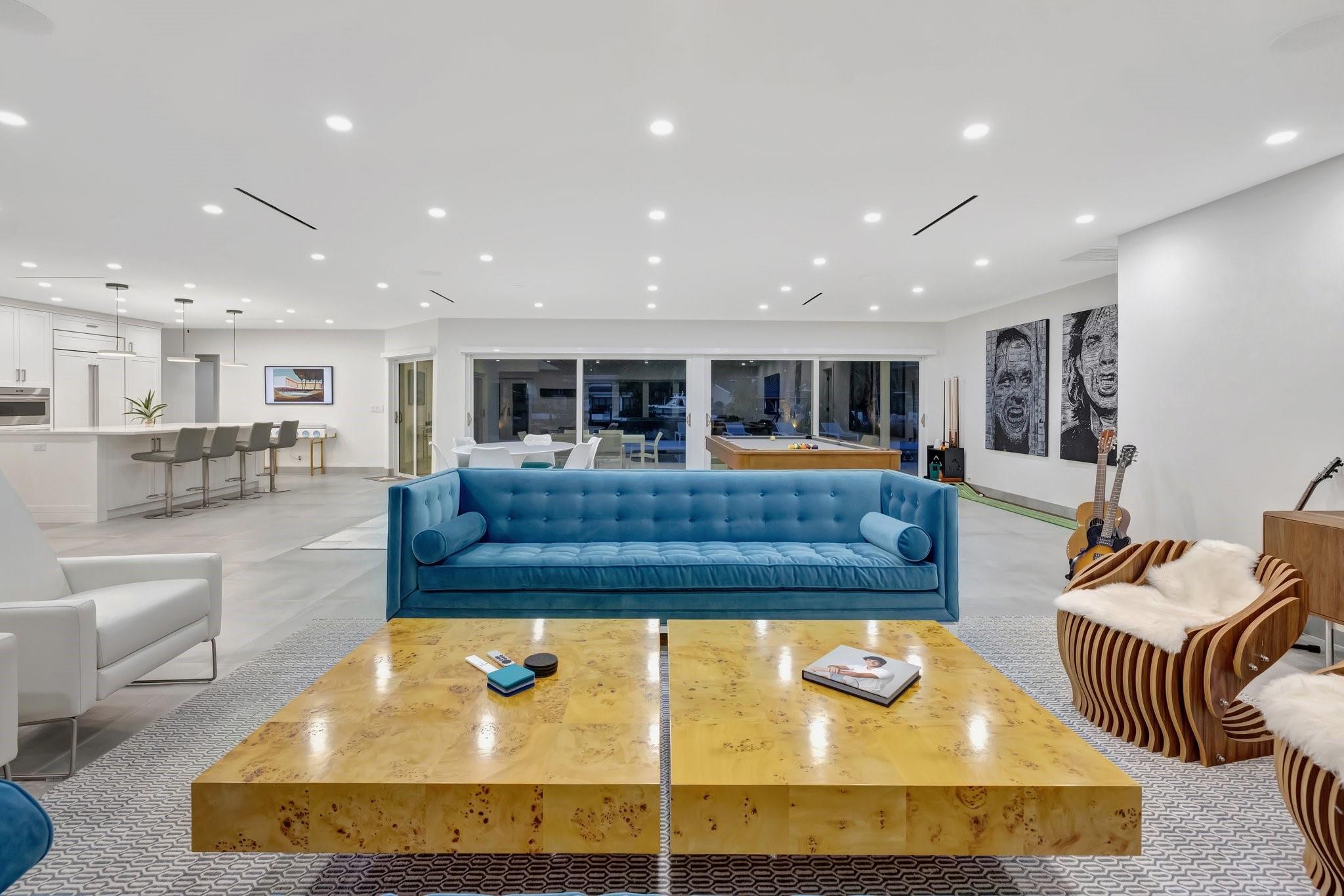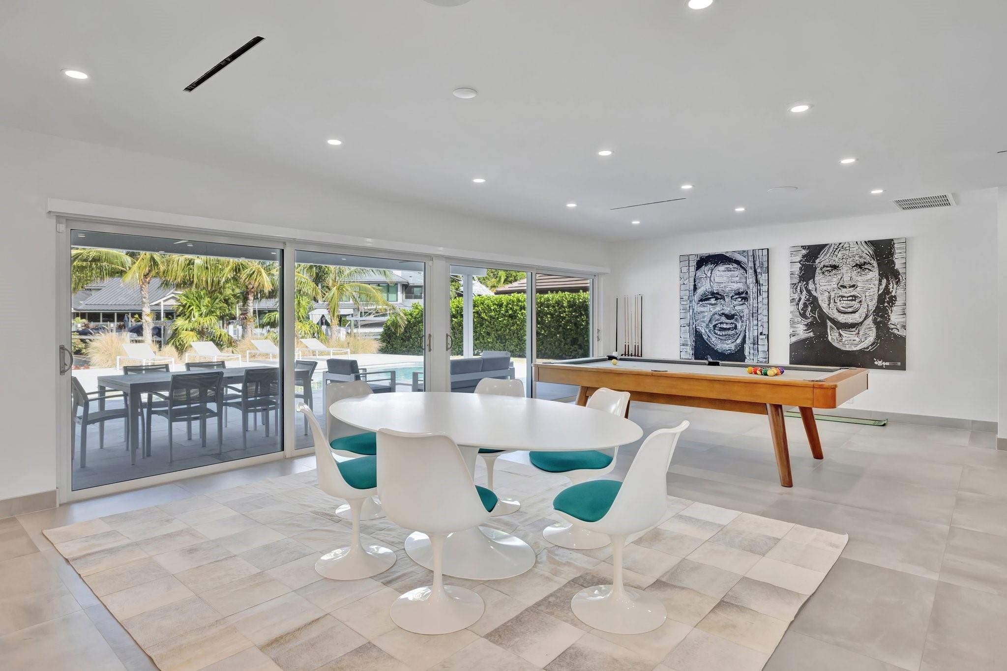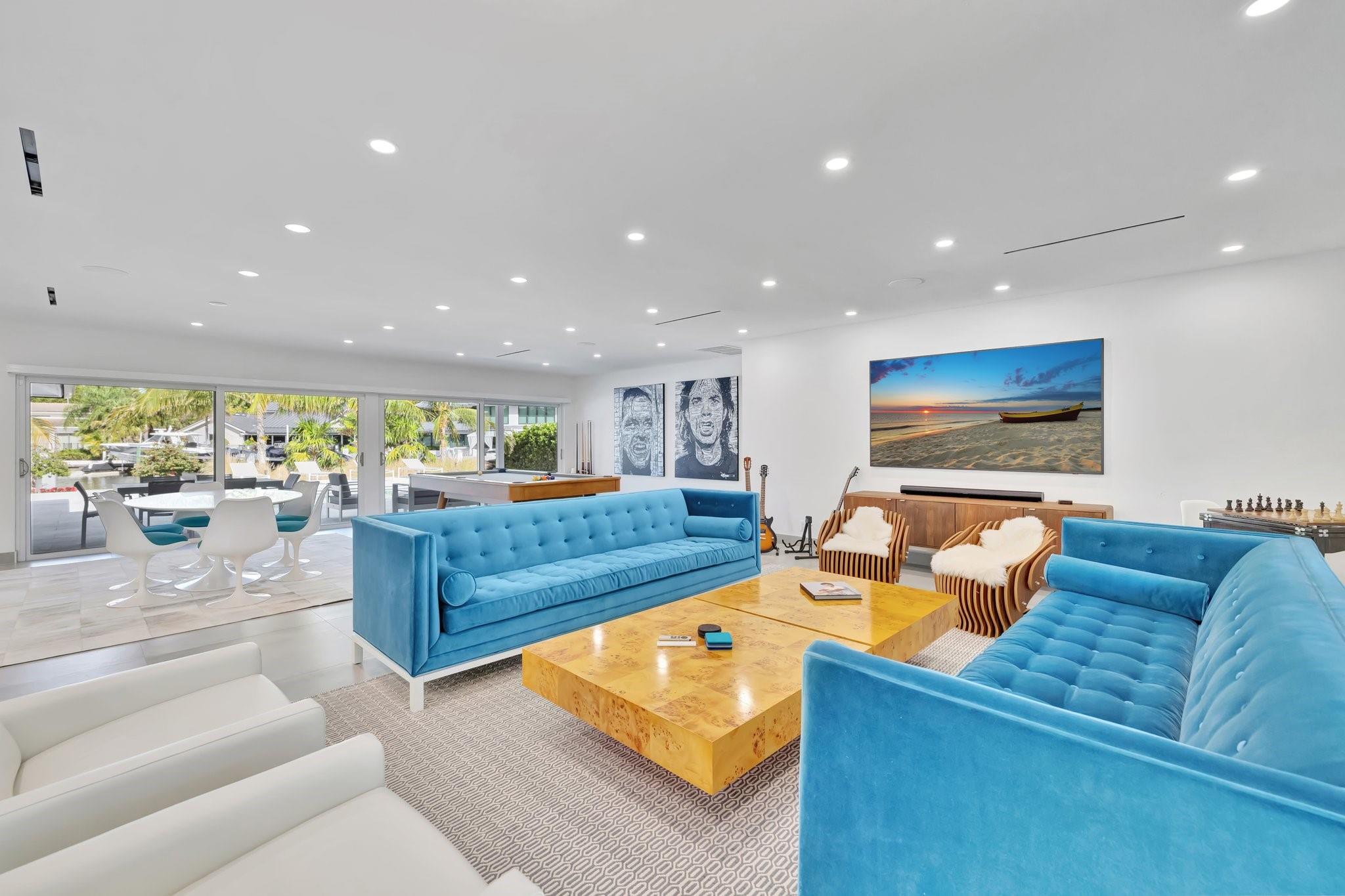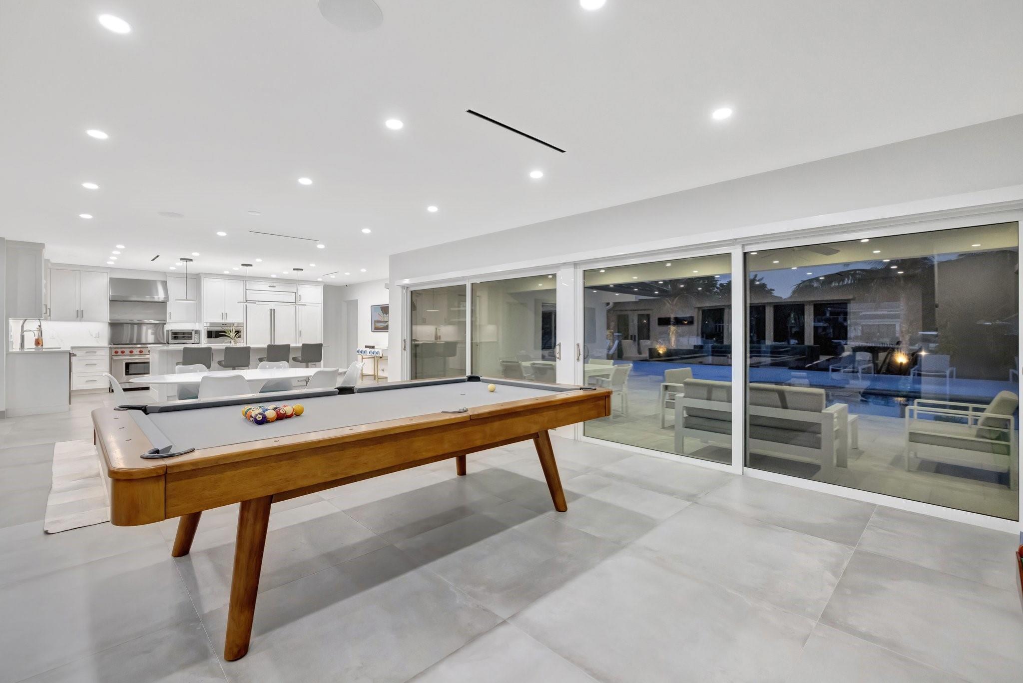 Located in Fort Lauderdale's premier 24/7 armed security guard-gated deepwater community. Enjoy stunning simplicity & functionality. Custom island-inspired single level residence. 2022 total renovation shows as NEW: metal roof, plumbing to street, all new electrical, air conditioners, tankless water heater & generator. Latest open concept living, great room, new Chef's kitchen, porcelain tile floors, new impact glass & interior doors. Private Primary Suite, dual closets, new modern spa style bath, enclosed water closet, soaking tub & floating vanities. Split floorplan: 2 secondary bedroom suites, office (4th bed) + cabana bath, air-conditioned garage. Most rooms access pool & wide-open radius turning basin views, 95 ft protected dockage. Perfectly Pine Crest & other A rated school location