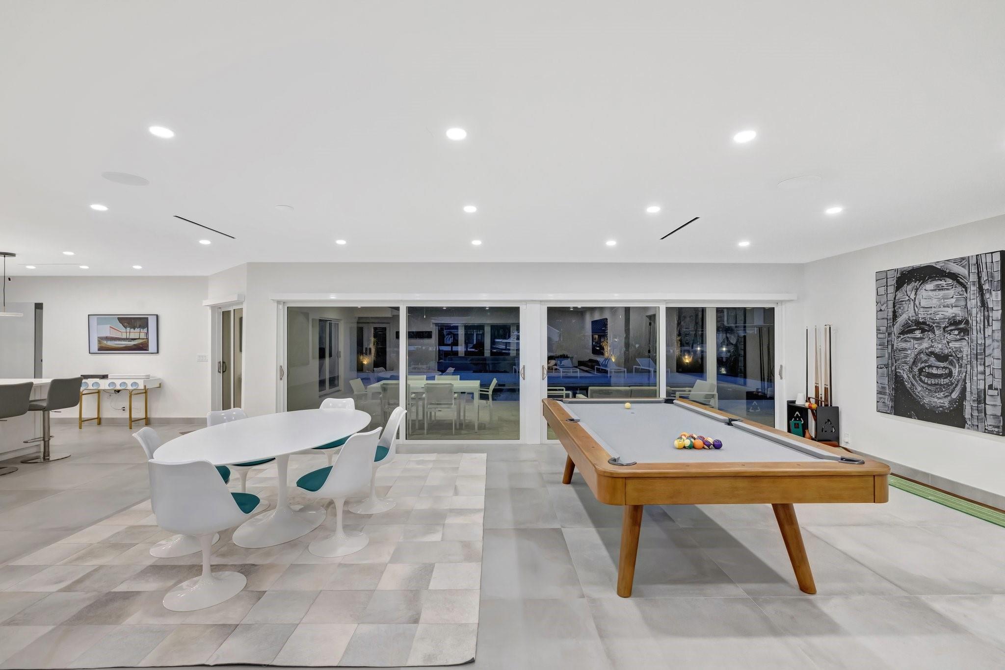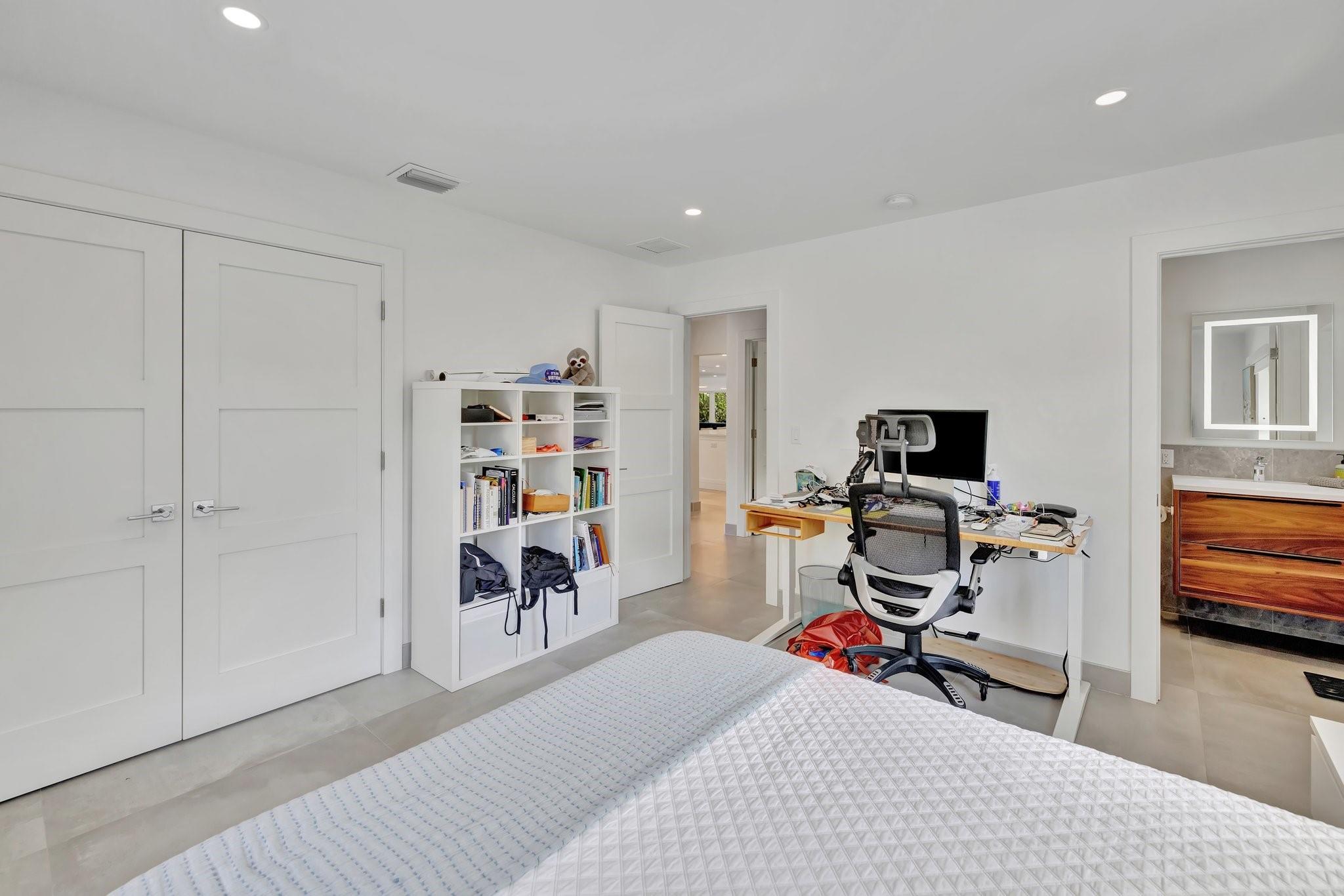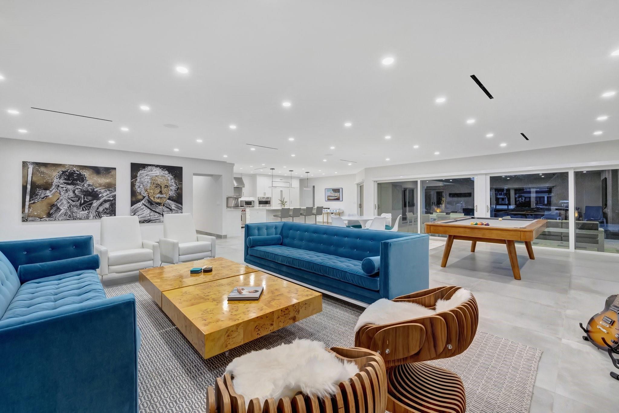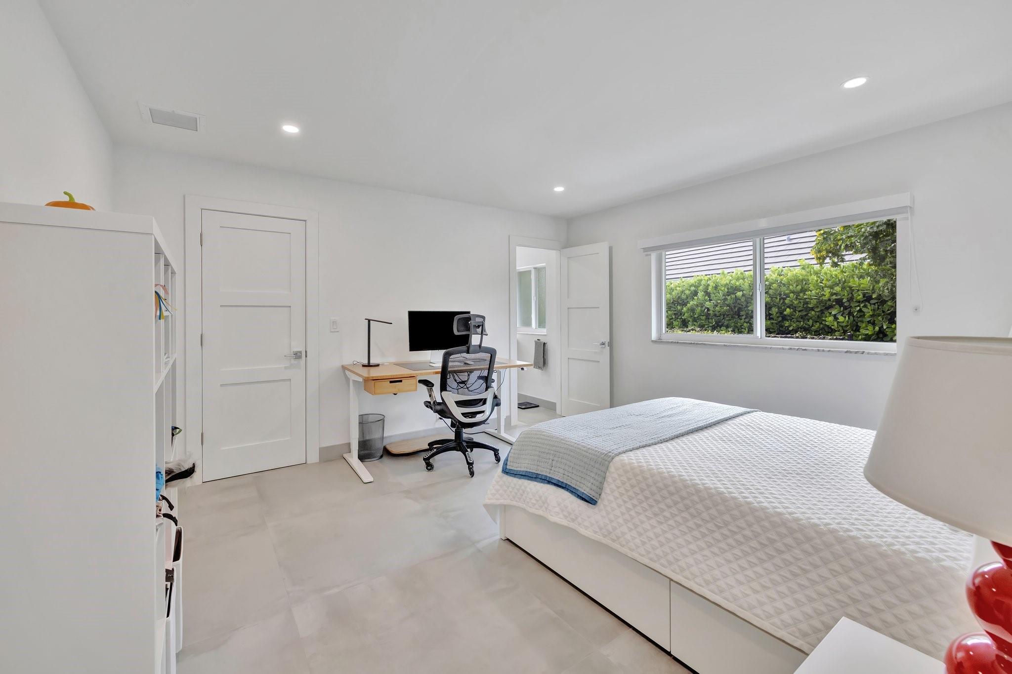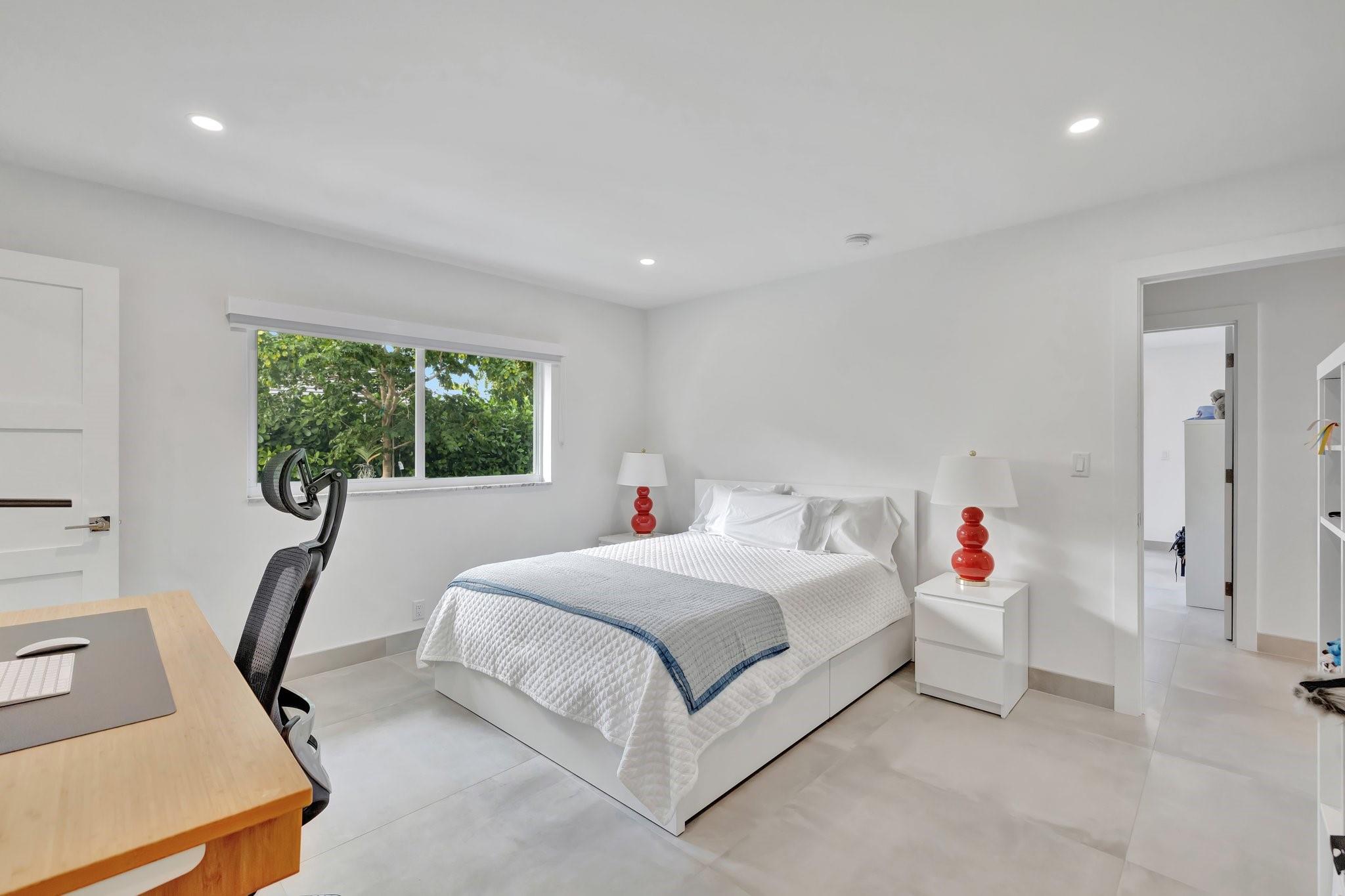 Located in Fort Lauderdale's premier 24/7 armed security guard-gated deepwater community. Enjoy stunning simplicity & functionality. Custom island-inspired single level residence. 2022 total renovation shows as NEW: metal roof, plumbing to street, all new electrical, air conditioners, tankless water heater & generator. Latest open concept living, great room, new Chef's kitchen, porcelain tile floors, new impact glass & interior doors. Private Primary Suite, dual closets, new modern spa style bath, enclosed water closet, soaking tub & floating vanities. Split floorplan: 2 secondary bedroom suites, office (4th bed) + cabana bath, air-conditioned garage. Most rooms access pool & wide-open radius turning basin views, 95 ft protected dockage. Perfectly Pine Crest & other A rated school location