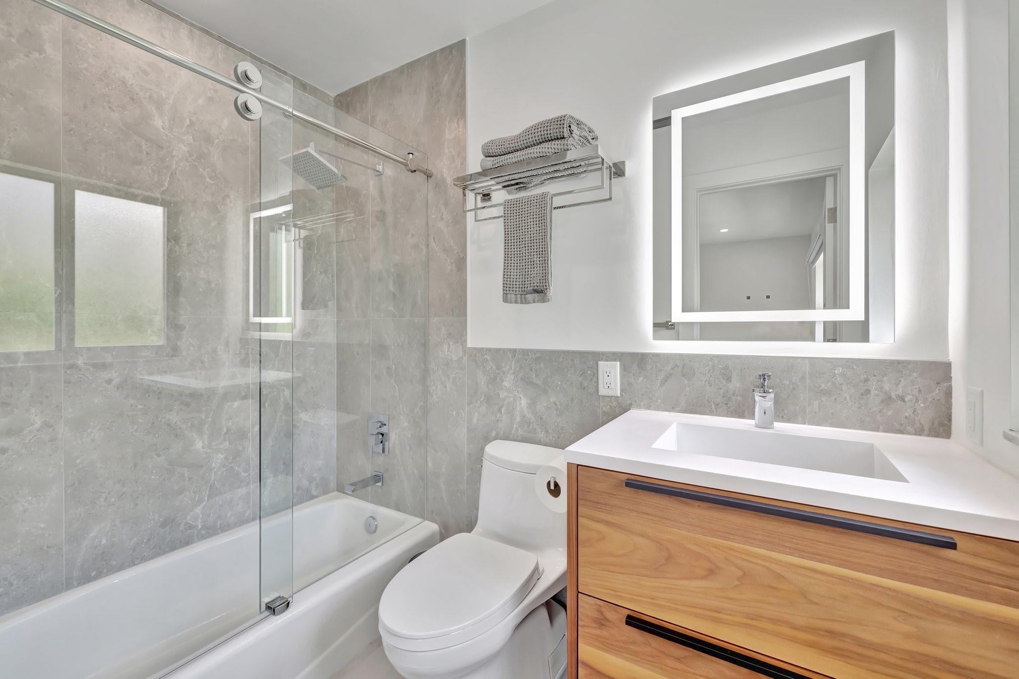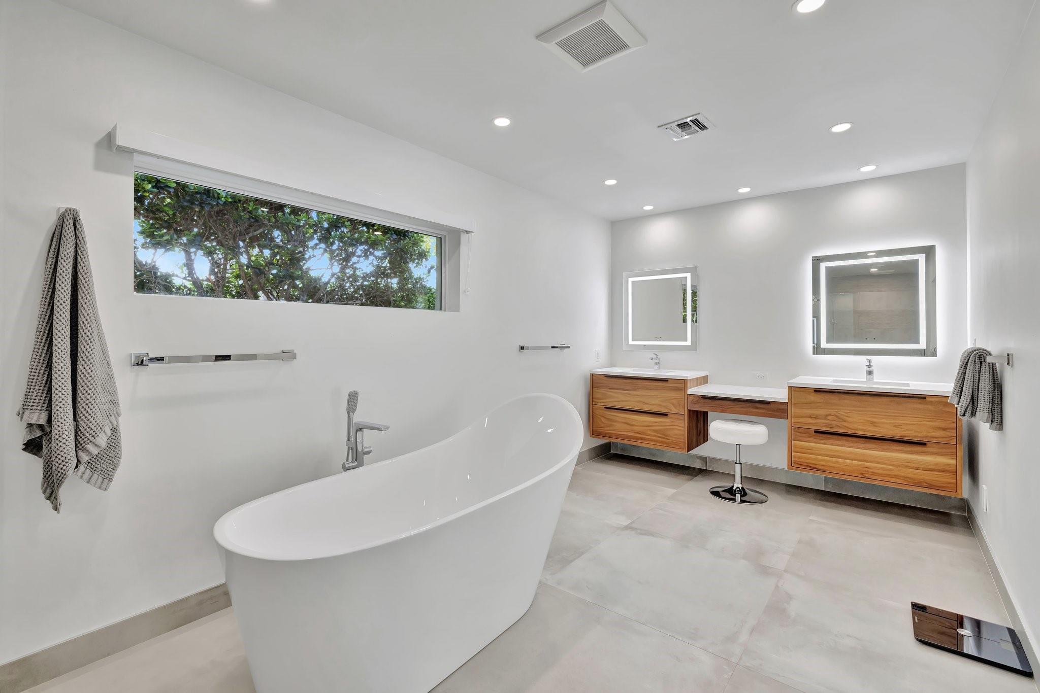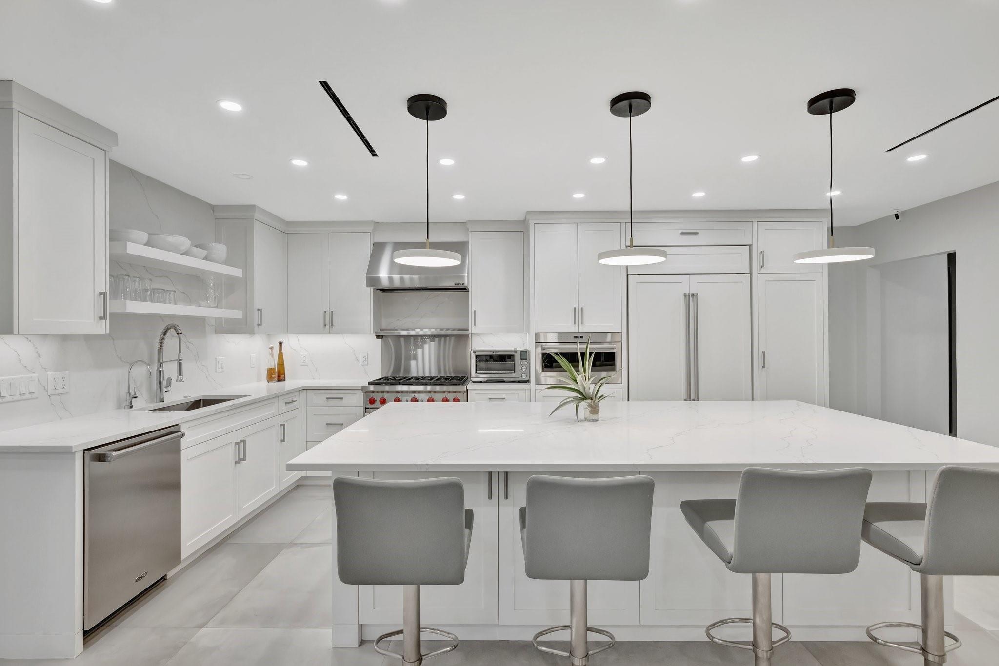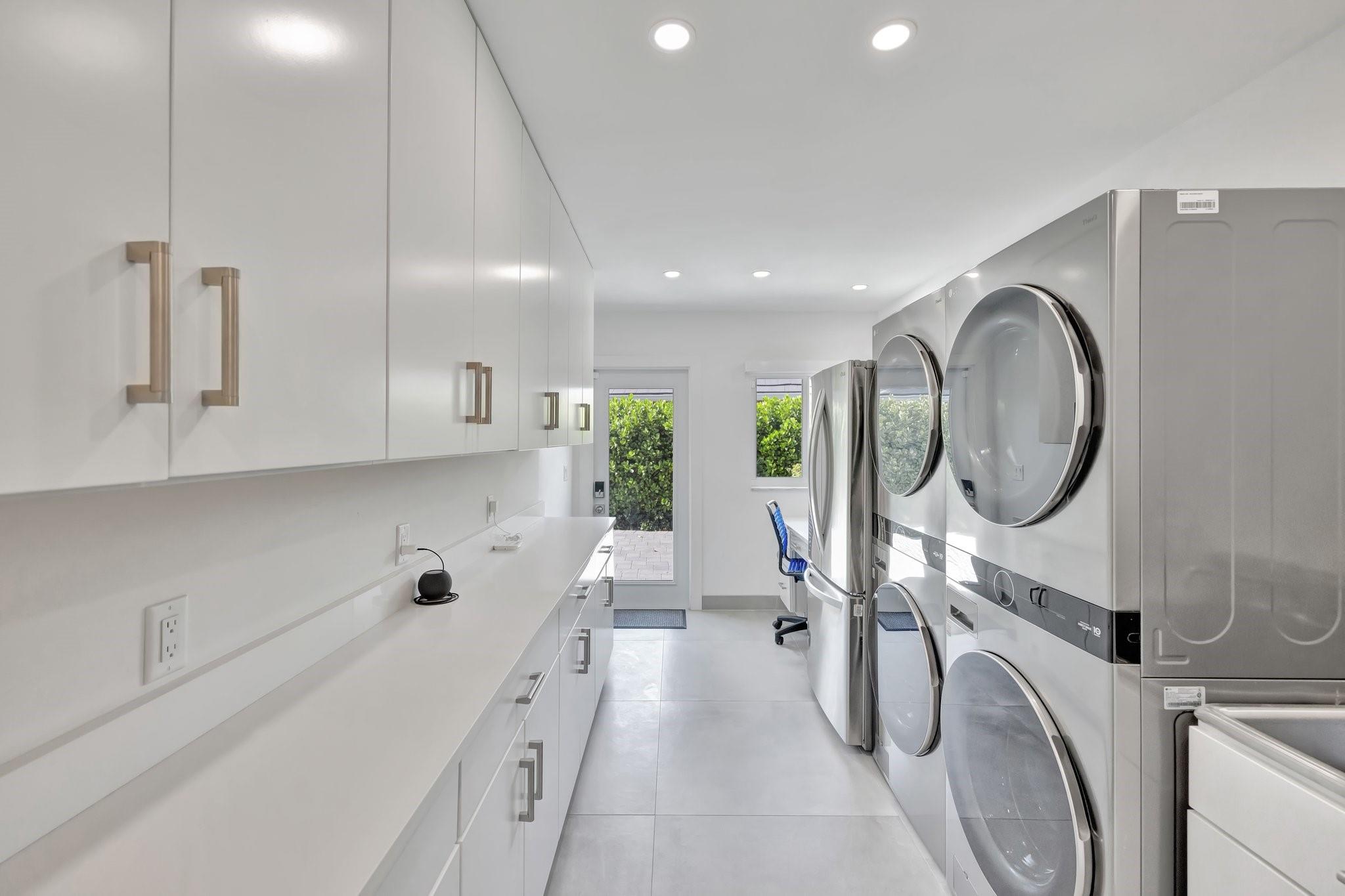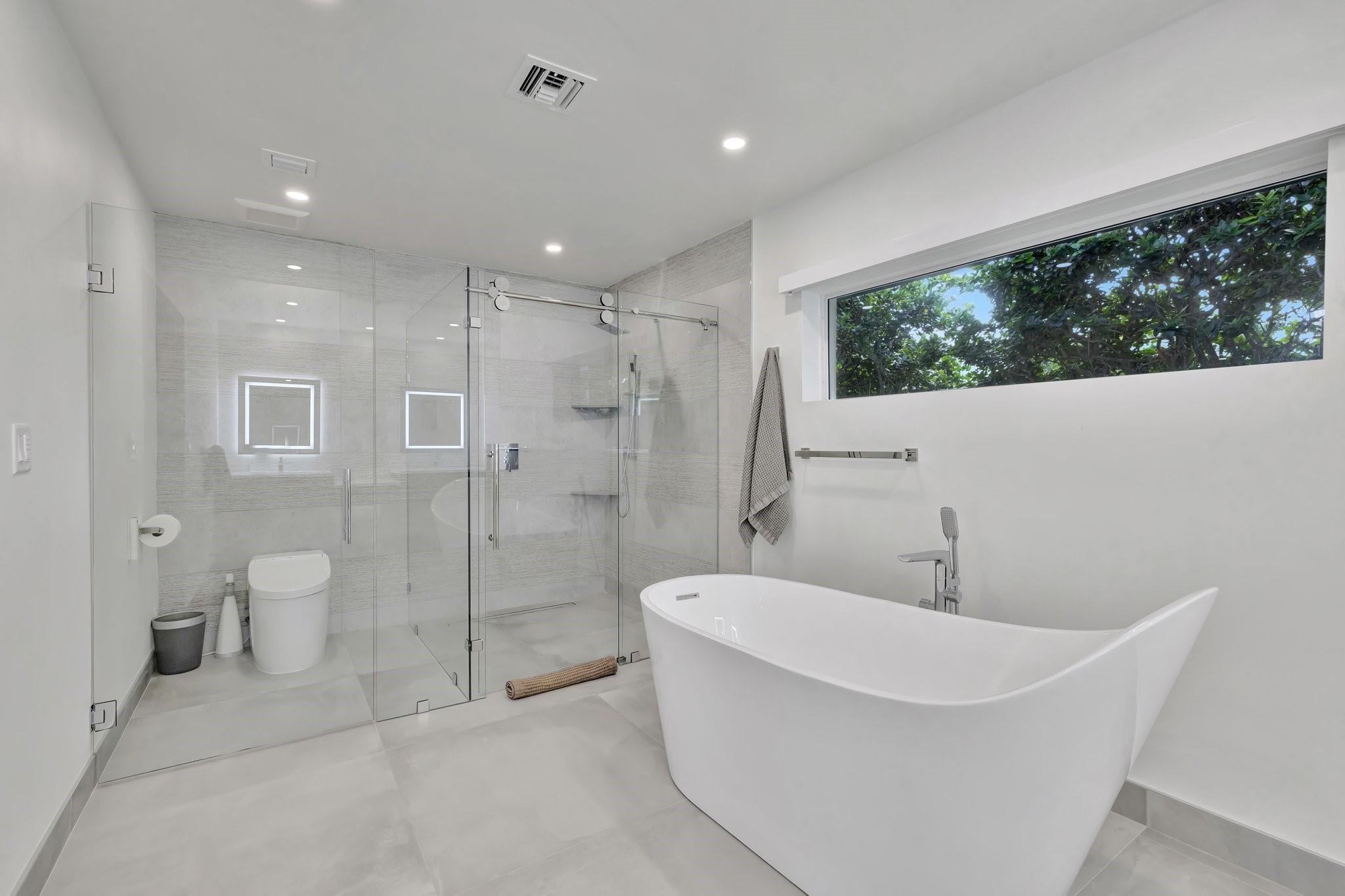 Located in Fort Lauderdale's premier 24/7 armed security guard-gated deepwater community. Enjoy stunning simplicity & functionality. Custom island-inspired single level residence. 2022 total renovation shows as NEW: metal roof, plumbing to street, all new electrical, air conditioners, tankless water heater & generator. Latest open concept living, great room, new Chef's kitchen, porcelain tile floors, new impact glass & interior doors. Private Primary Suite, dual closets, new modern spa style bath, enclosed water closet, soaking tub & floating vanities. Split floorplan: 2 secondary bedroom suites, office (4th bed) + cabana bath, air-conditioned garage. Most rooms access pool & wide-open radius turning basin views, 95 ft protected dockage. Perfectly Pine Crest & other A rated school location