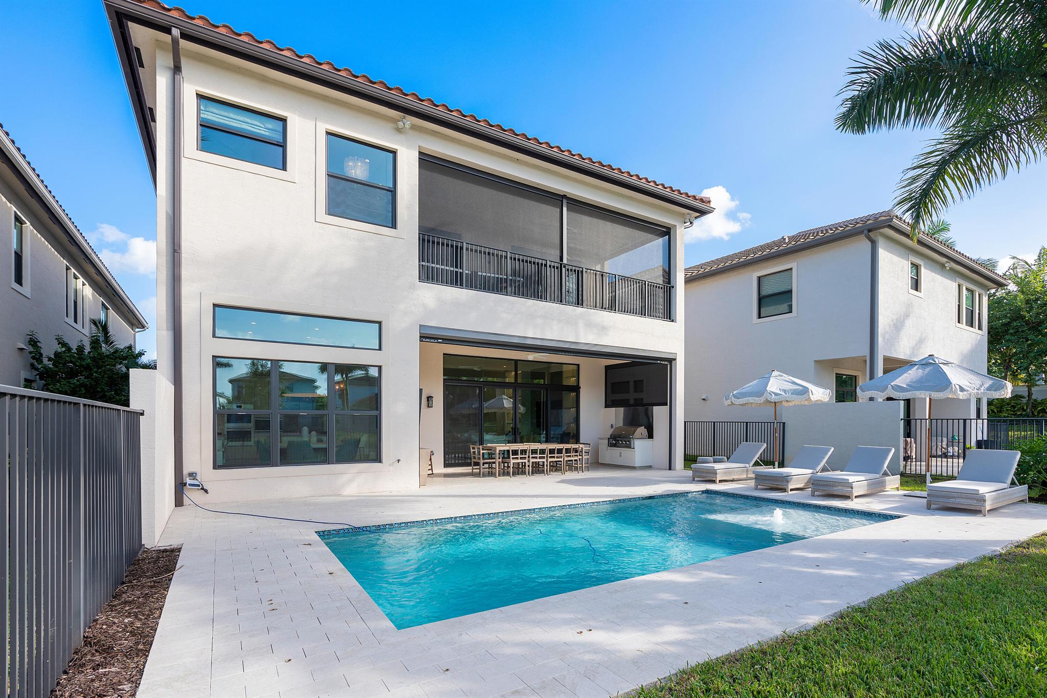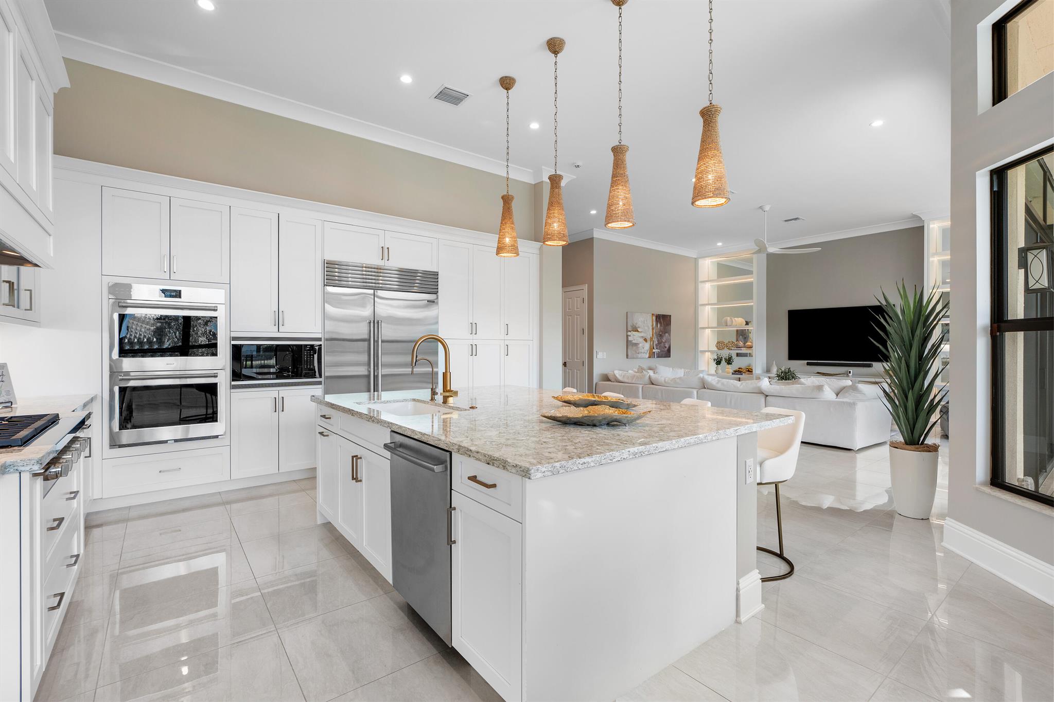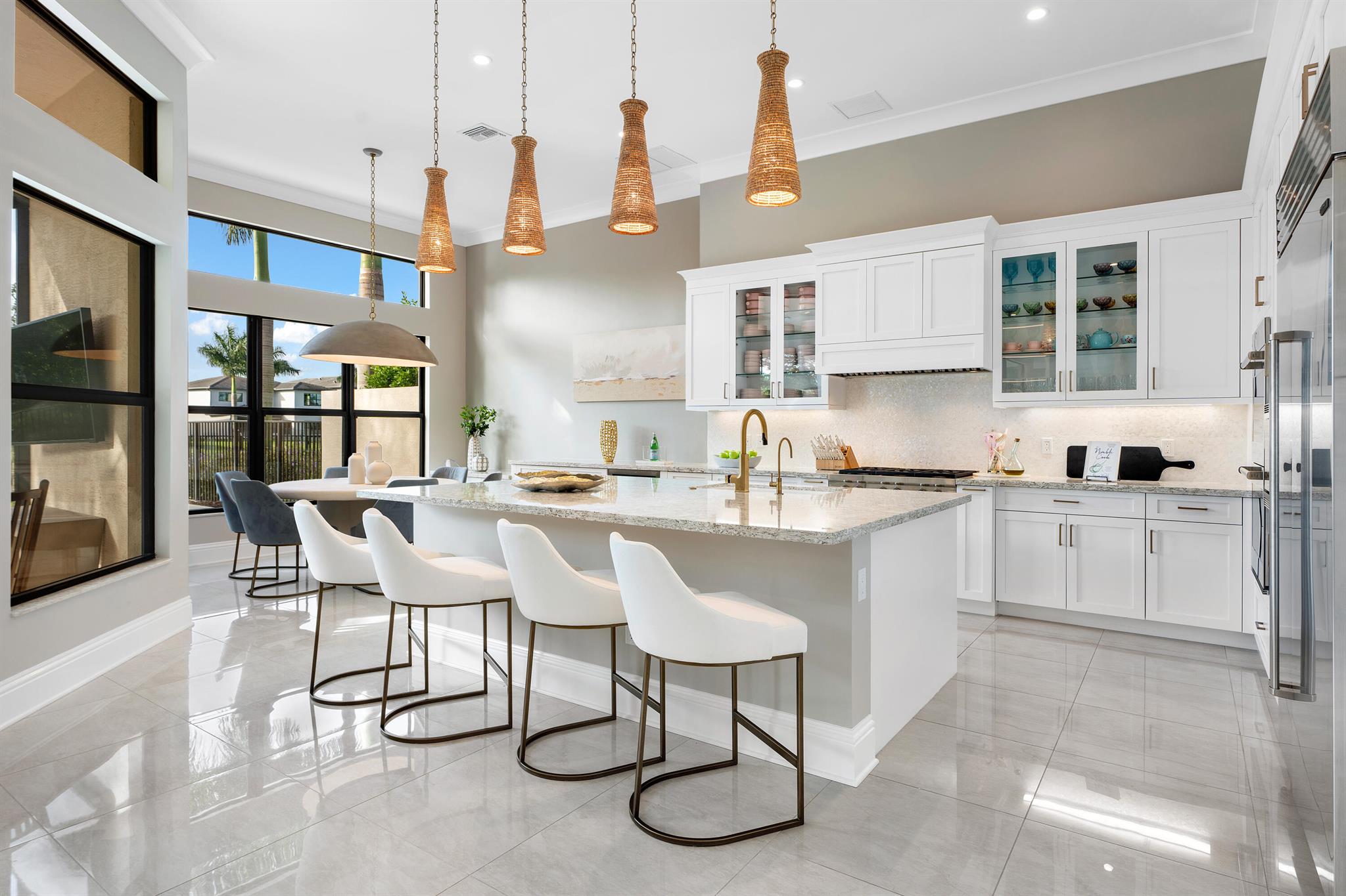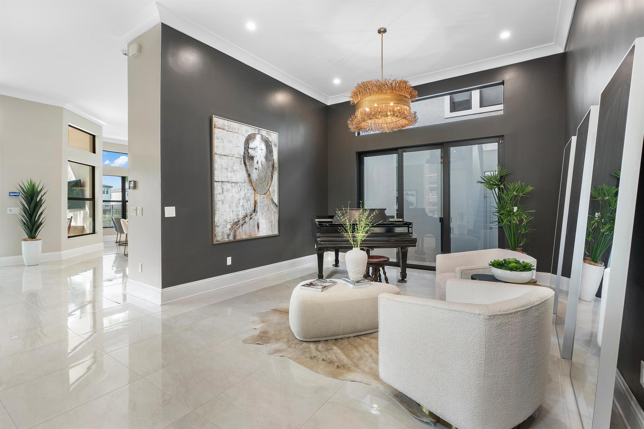 Nestled in the prestigious Boca Bridges community, this designer-decorated and extensively upgraded Florence model seamlessly blends luxury with comfort. With five bedrooms and five full bathrooms, this home boasts timeless architecture and meticulous craftsmanship at every turn. The open-concept design effortlessly connects the living, dining, and kitchen areas, creating a perfect setting for both grand entertaining and intimate family gatherings. The chef's kitchen stands as a culinary masterpiece, featuring top-of-the-line appliances, custom cabinetry, and premium finishes. Ascend to the second floor to find beautiful white oak flooring that adds warmth and sophistication, along with bonus room currently used for the ultimate entertainment experience. The luxurious