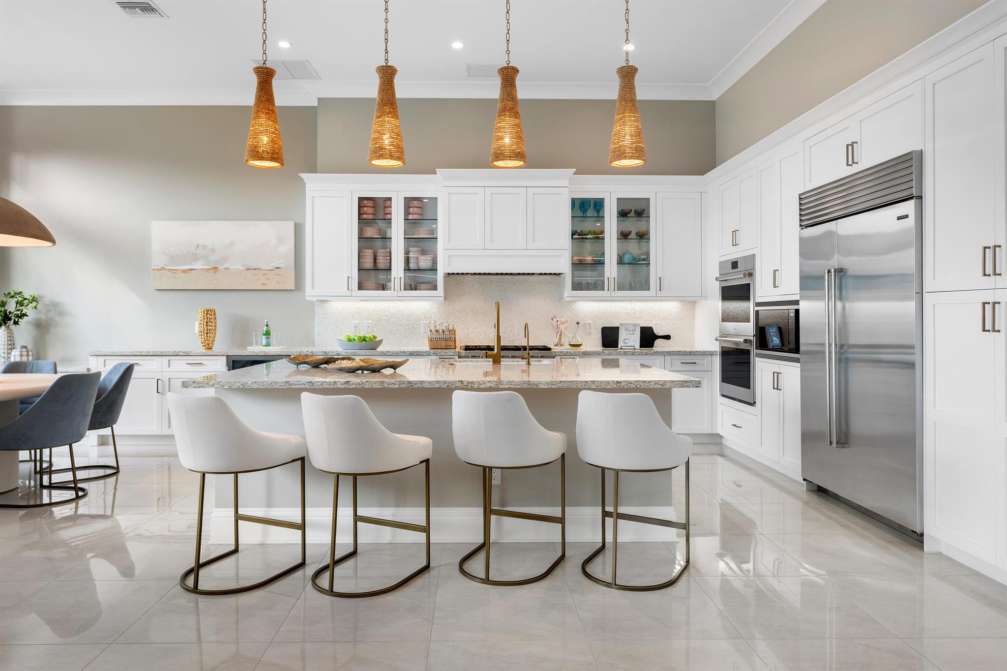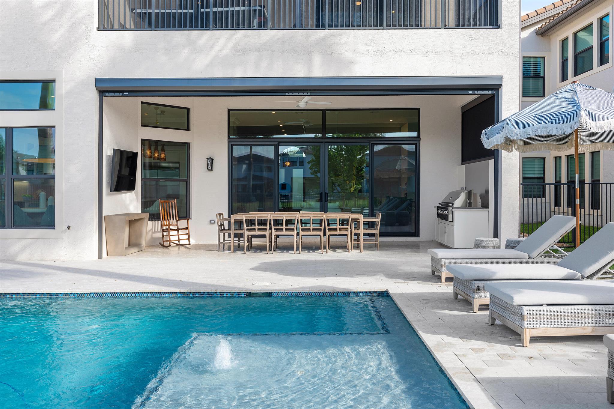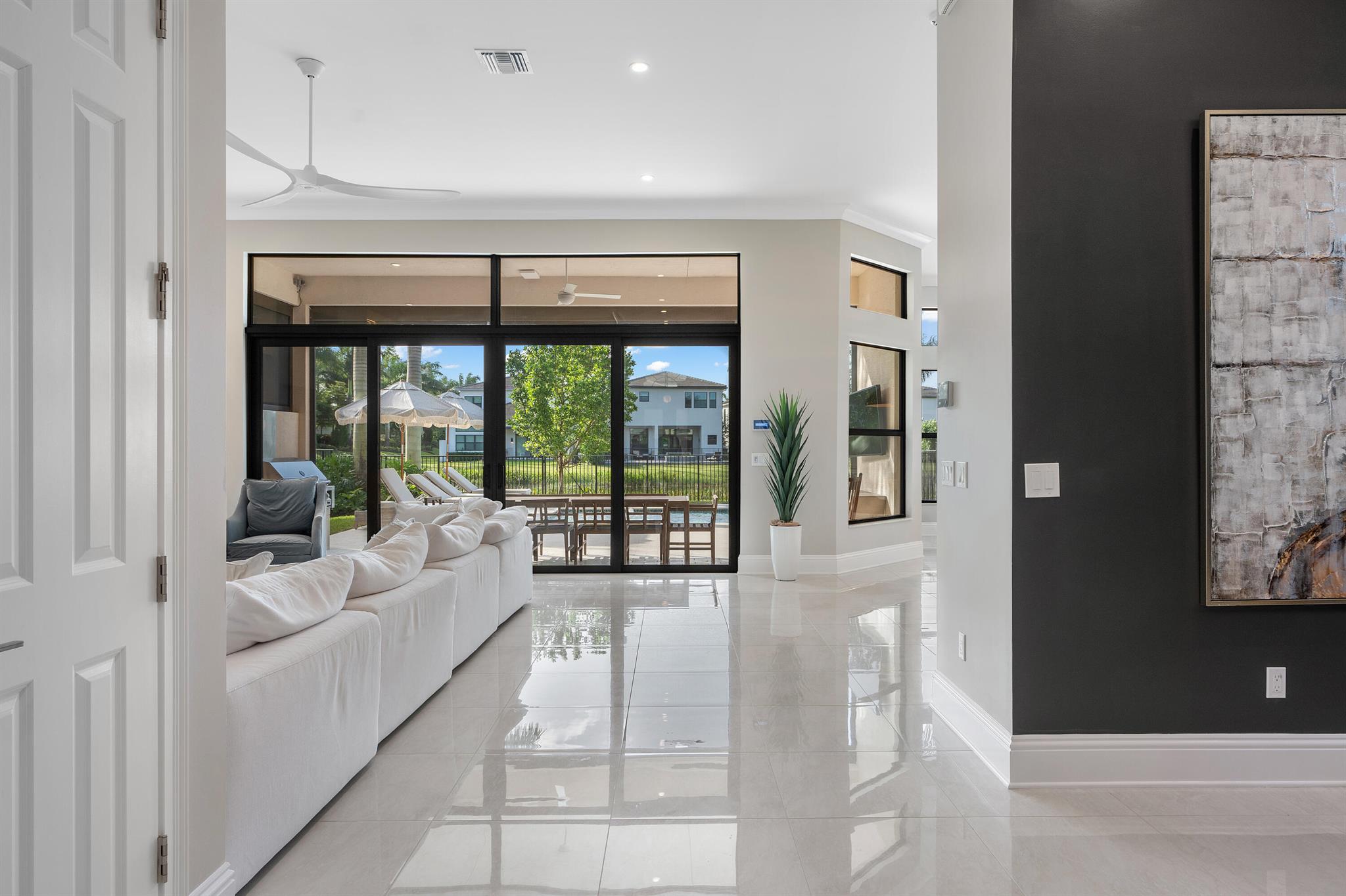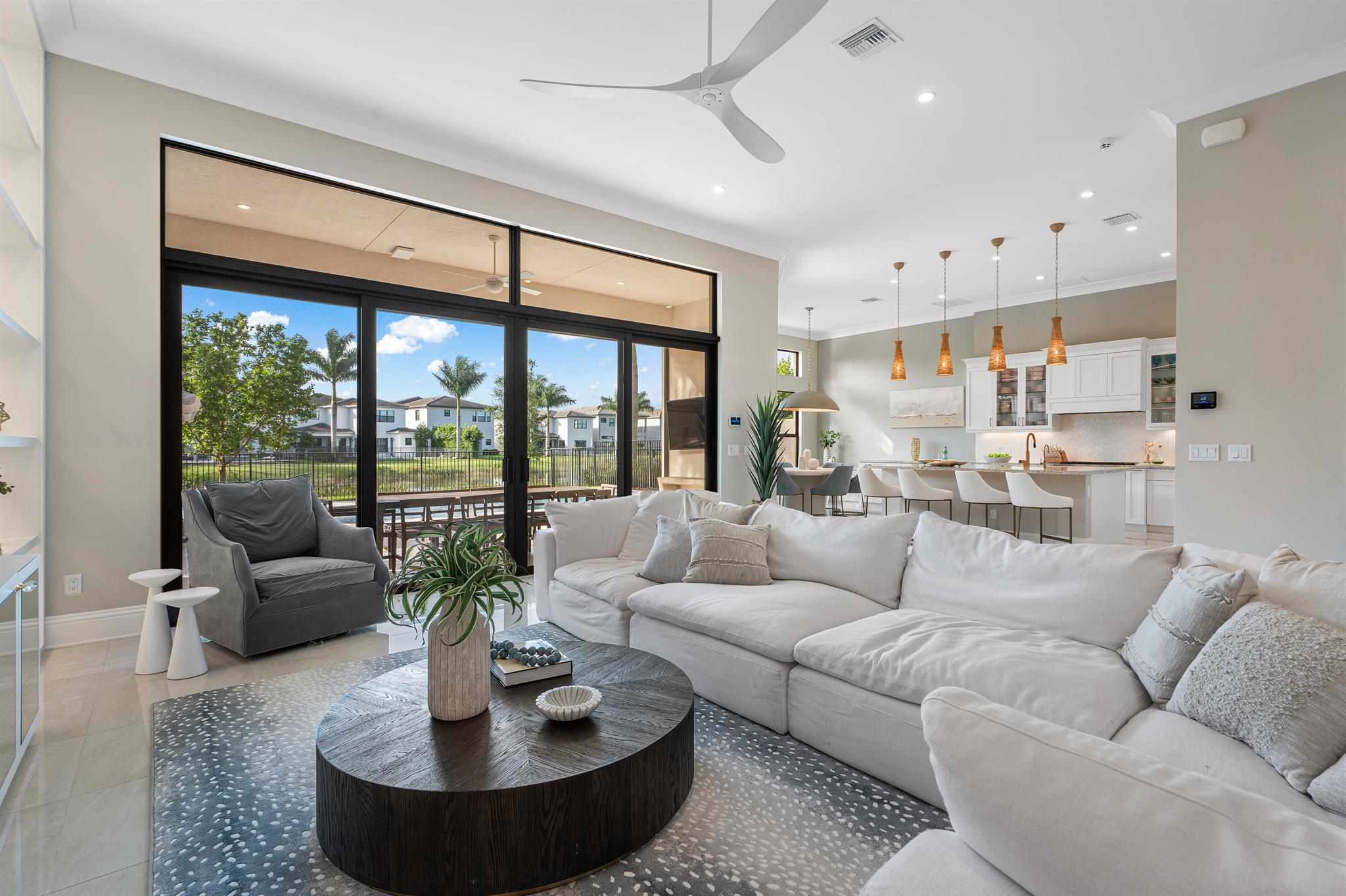 Nestled in the prestigious Boca Bridges community, this designer-decorated and extensively upgraded Florence model seamlessly blends luxury with comfort. With five bedrooms and five full bathrooms, this home boasts timeless architecture and meticulous craftsmanship at every turn. The open-concept design effortlessly connects the living, dining, and kitchen areas, creating a perfect setting for both grand entertaining and intimate family gatherings. The chef's kitchen stands as a culinary masterpiece, featuring top-of-the-line appliances, custom cabinetry, and premium finishes. Ascend to the second floor to find beautiful white oak flooring that adds warmth and sophistication, along with bonus room currently used for the ultimate entertainment experience. The luxurious