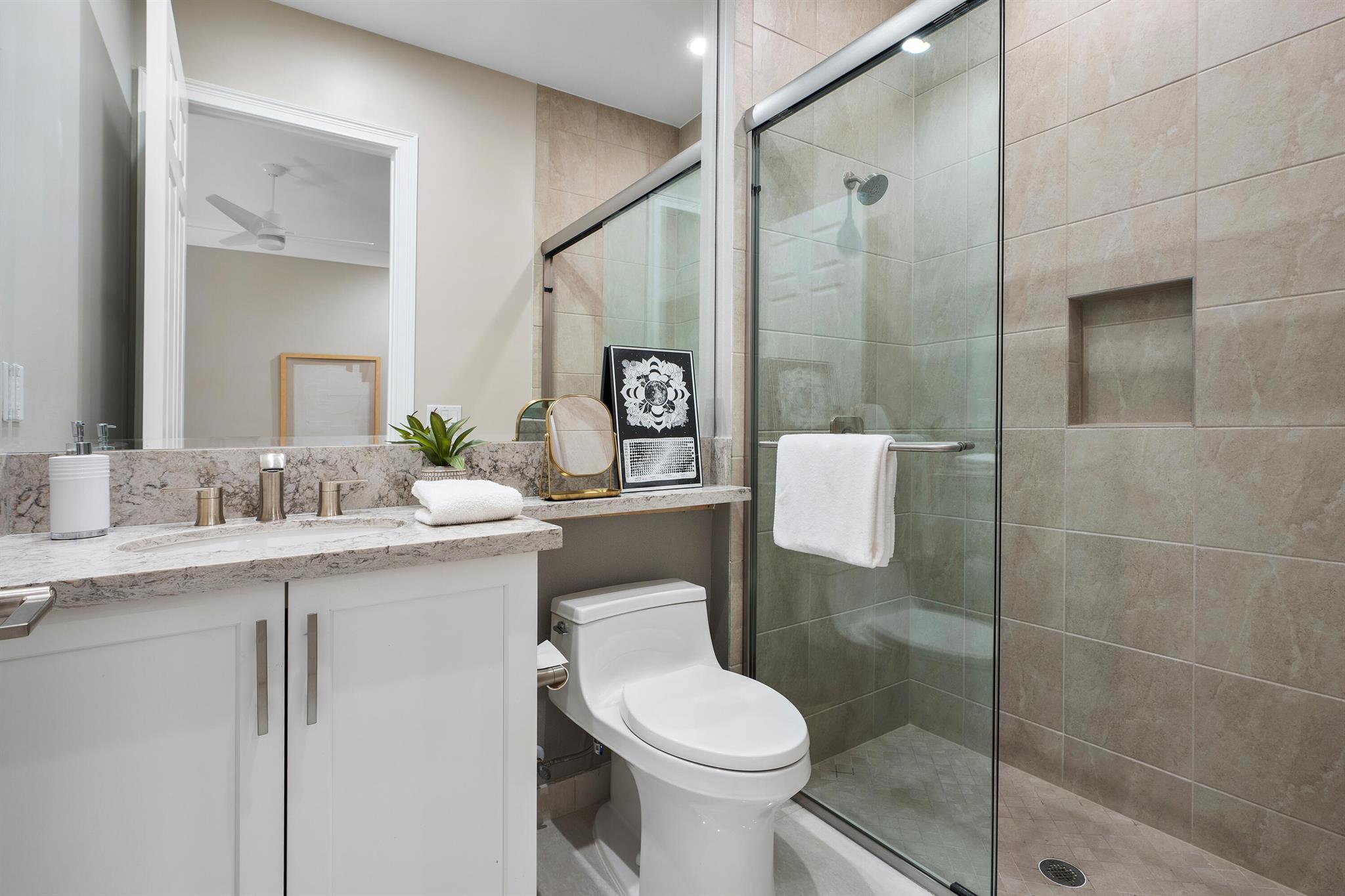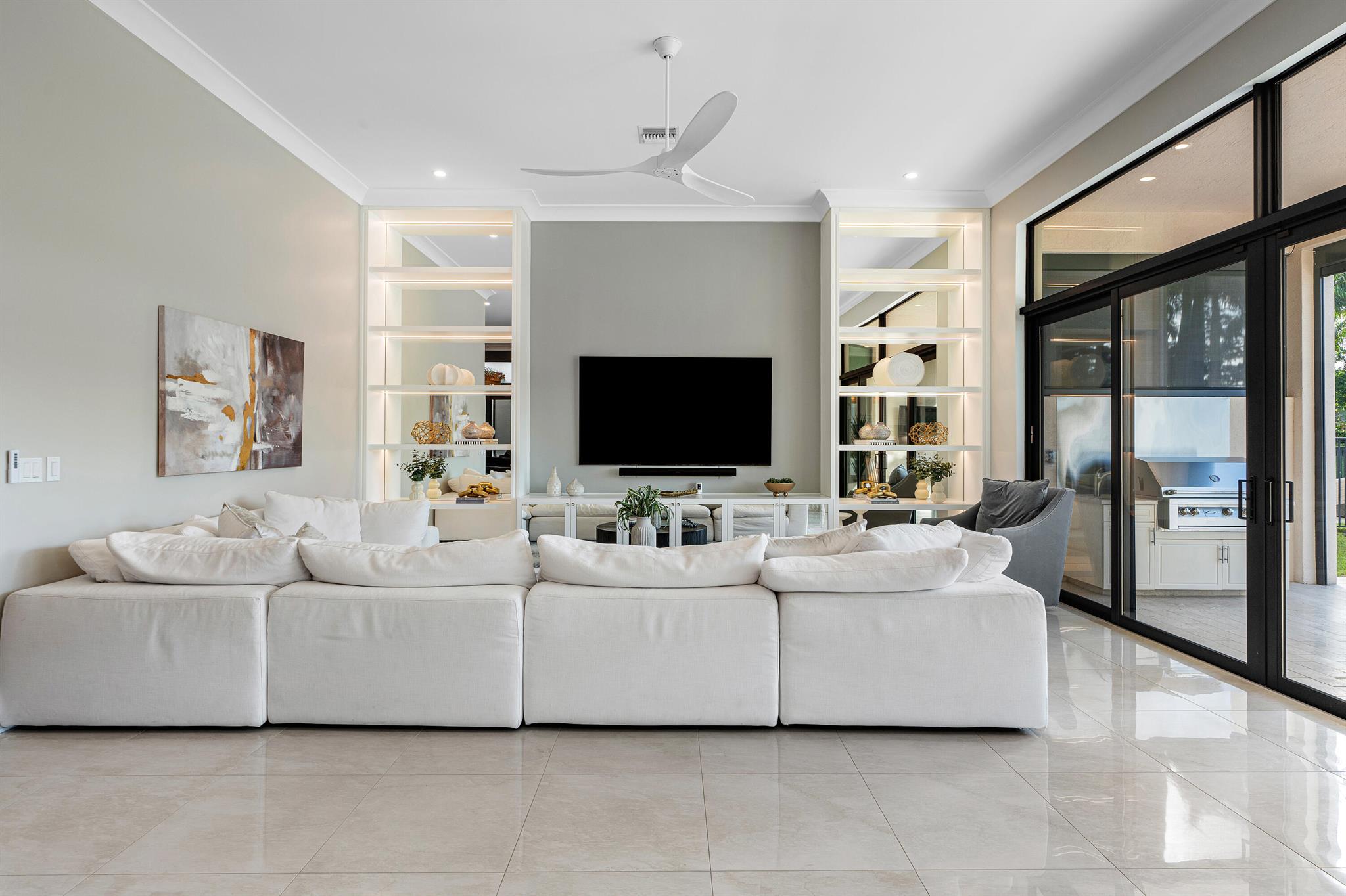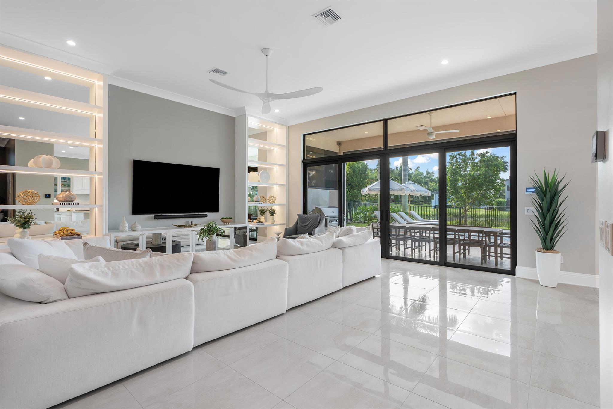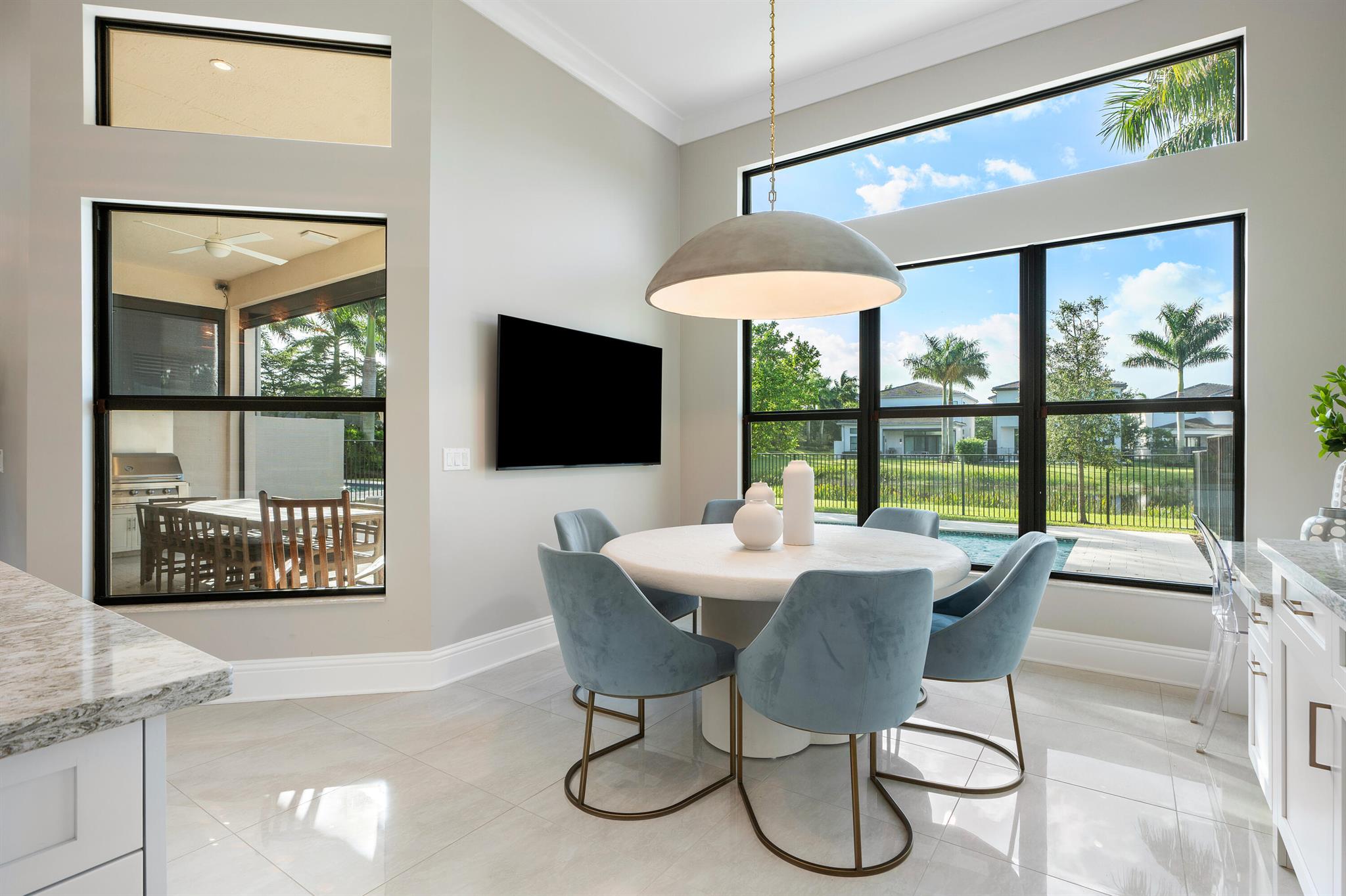 Nestled in the prestigious Boca Bridges community, this designer-decorated and extensively upgraded Florence model seamlessly blends luxury with comfort. With five bedrooms and five full bathrooms, this home boasts timeless architecture and meticulous craftsmanship at every turn. The open-concept design effortlessly connects the living, dining, and kitchen areas, creating a perfect setting for both grand entertaining and intimate family gatherings. The chef's kitchen stands as a culinary masterpiece, featuring top-of-the-line appliances, custom cabinetry, and premium finishes. Ascend to the second floor to find beautiful white oak flooring that adds warmth and sophistication, along with bonus room currently used for the ultimate entertainment experience. The luxurious