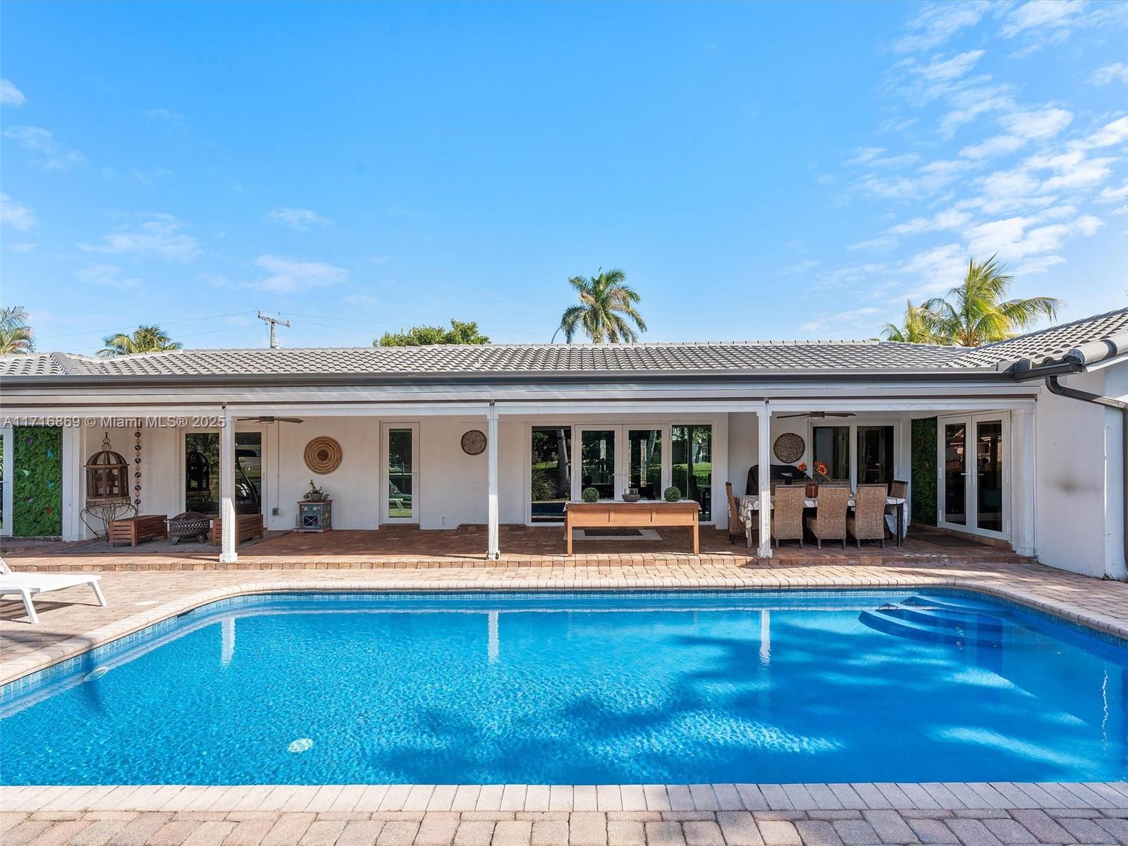 In the sought-after Plantation Golf Estates. A perfect blend of privacy & city convenience with no HOA. Step inside to discover a world of elegance and style, with an open-concept kitchen with top-of-the-line appliances. Cozy family with wood-burning fireplace. Motorized window treatments, custom closets & cabinetry, illuminated baseboards and designer wallpaper. Generator hook-up and smart fans. Large pool with new Diamond Brite. New tile roof & impact windows, garage door & front door, ensuring peace of mind for hurricane protection. Ample two-car garage with separate AC unit. This house is impeccably maintained. Discover the charm of this classical Plantation estate, where you can golf, bike and enjoy the walking trail around the reserve, steps away from shops and restaurants.