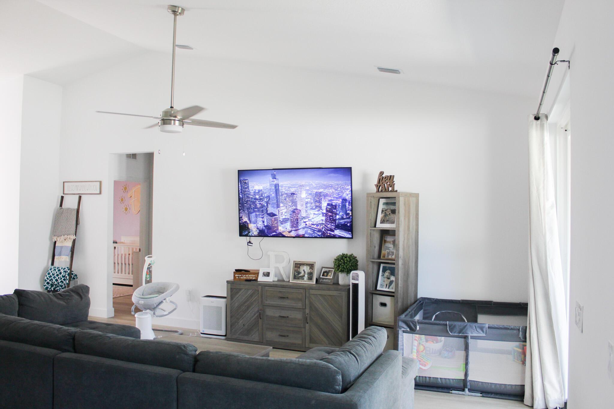 Seller offering $10K in closing costs! Welcome to this beautifully designed 4-bedroom, 2-bath home, built by the renowned Coastal Homes of Brevard. This stunning property boasts an open, airy feel with 14-foot ceilings in the main living area, creating a spacious and inviting atmosphere. The bedrooms and bathrooms offer 9-foot ceilings and 8-foot doors, providing a sense of elegance throughout the home. Energy efficiency is a top priority with impact-resistant windows and doors, along with upgraded insulation in both the attic and walls, ensuring comfort year-round. A zero-entry design leads into the home, where you'll find waterproof vinyl flooring throughout, complemented by 9-inch baseboards for a sleek, modern look.