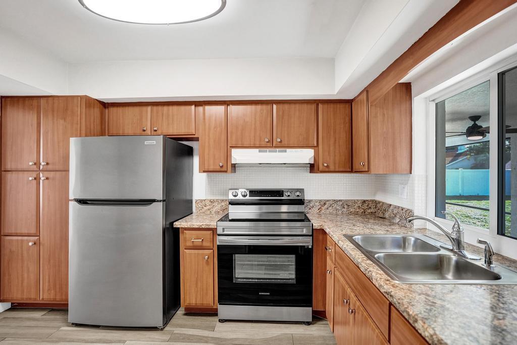 This charming home is nestled in the heart of Boca Raton just minutes from the beaches, Mizner Park, Downtown & all of the amenities that Boca has to offer. 2021 tile roof, impact windows & doors, , 2019 A/C, updated GE electrical panel & impact garage door provide the security & highest insurance discounts. Beautiful wood plank porcelain tile floors throughout. The tile is carried out to the completely covered newly screened patio. The large private yard has plenty of room for a pool. Kitchen window has pass through to the patio & the large interior laundry room provides additional storage. Main bedroom has 2 closets with built-ins. Interior freshly painted & ready to move in. Park in your garage or the large decorative paver driveway. Highly rated school district.