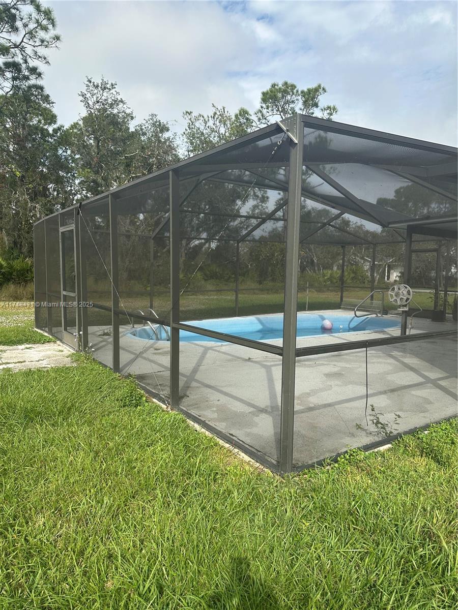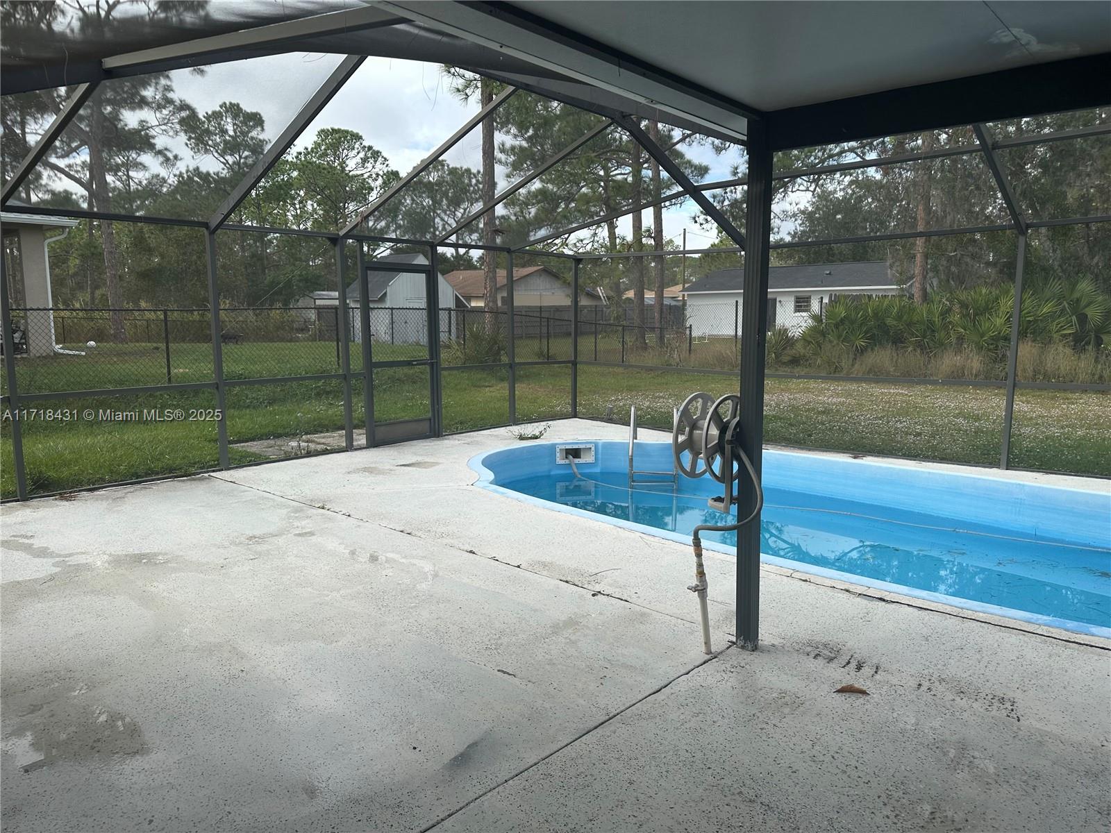 Beautiful corner home nestled on AN OVERSIZE LARGE LOT ( 12,500 SF) ideal for truck owner,boat or trailer's owners.The property features 2 bedrooms 2 baths, Living -Dinning area and a completed updated kitcken with nice white capentry and new stainless stell appliances overlooking the screended pool area and back porch. The home also has solar panels both the air condition unit and the panels were place in 2/8/2023 and the roof was replaced on 6/15/2022.