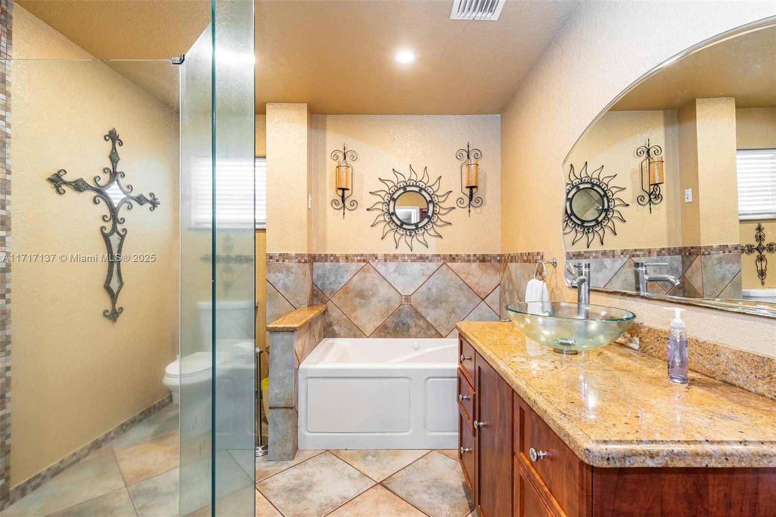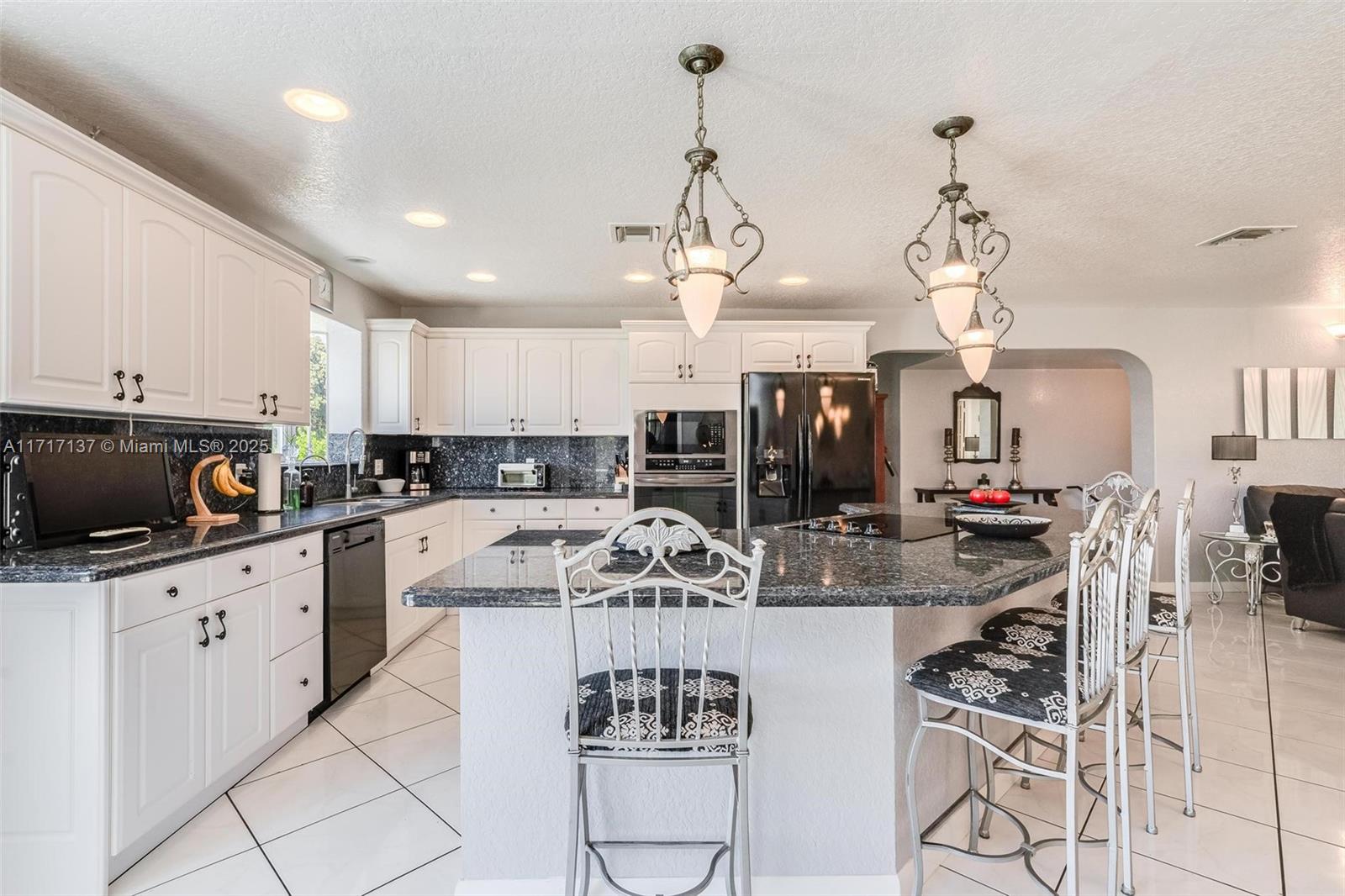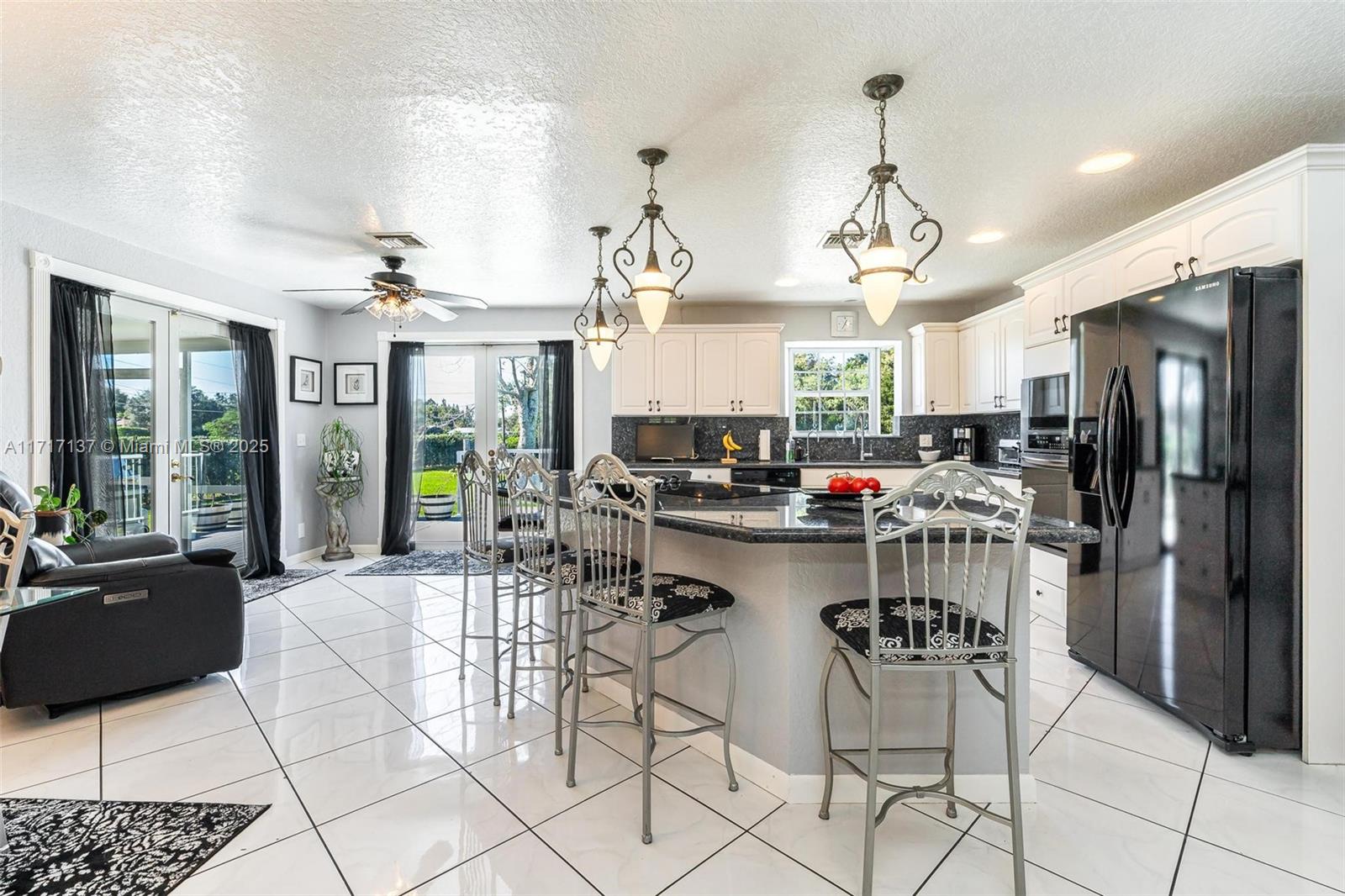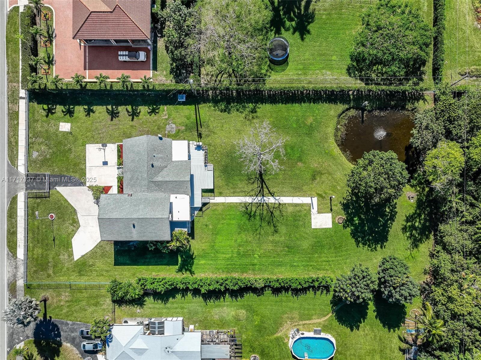 If you have been looking for a pristine Davie acre home with a storybook view...this one is for you. Custom built 5 bedroom with almost 3000 sf under air & over 43,500 sf lot. Gated property with a garage that fits 3 cars & has a safe room. Step in to the open airy floor-plan featuring recently painted great room, dining area, snack bar & gorgeous open kitchen. Primary bedroom conveniently located on first floor. Large bedrooms & handy office space upstairs. Upgrades include plantation shutters, granite & wood cabinetry, pretty flooring & rated garage doors, water filtration system & beautifully updated bathrooms. FPL just put electric lines under ground. Enjoy your private pond view from raised deck and covered patio. Pad with electric is ready for hot tub or RV. Terrific Davie schools
