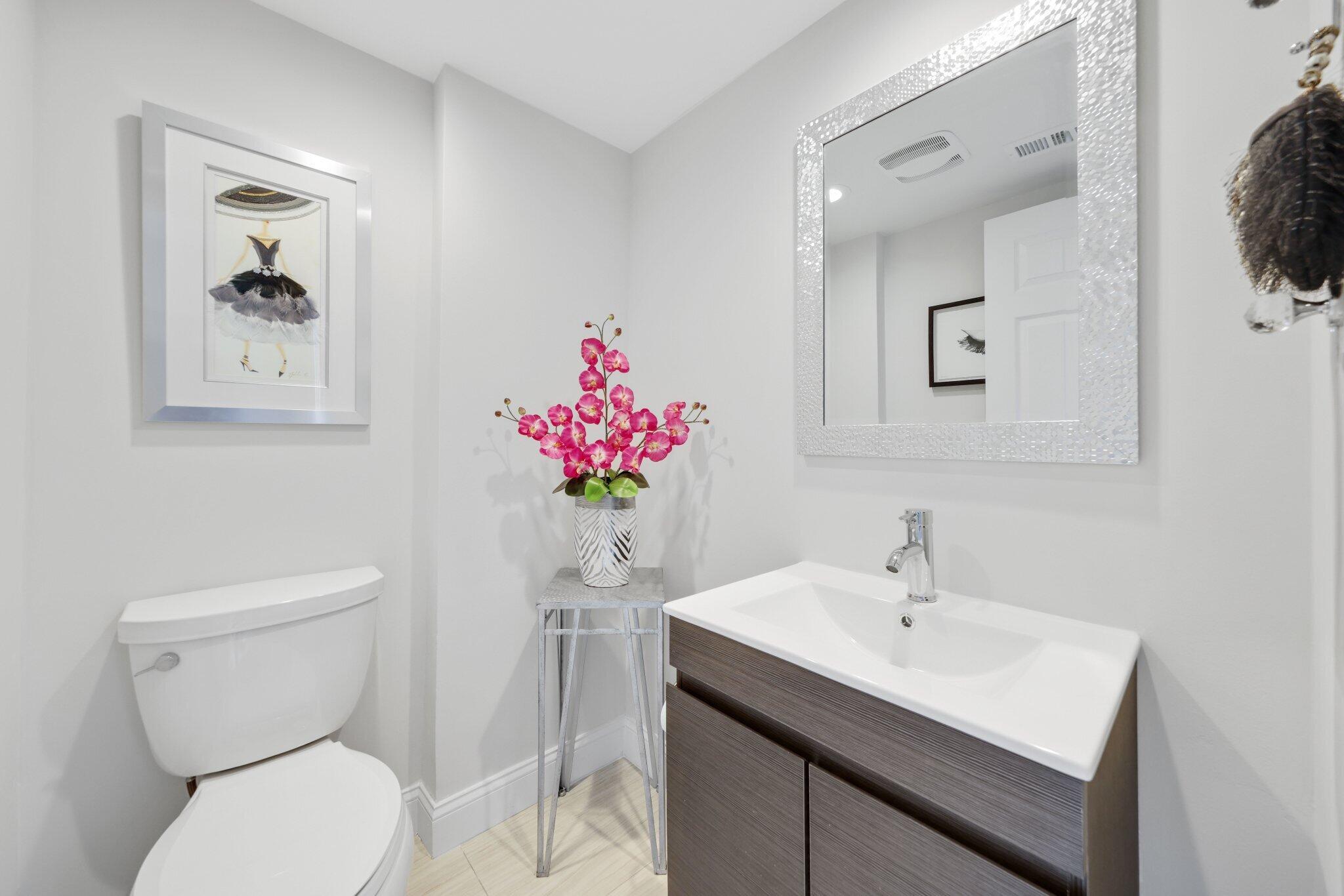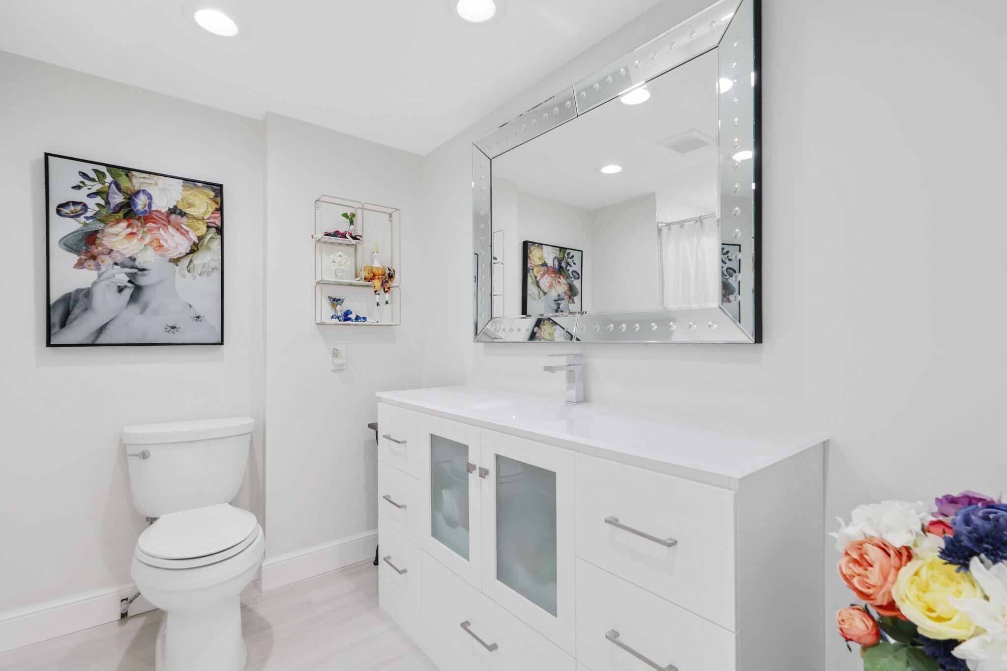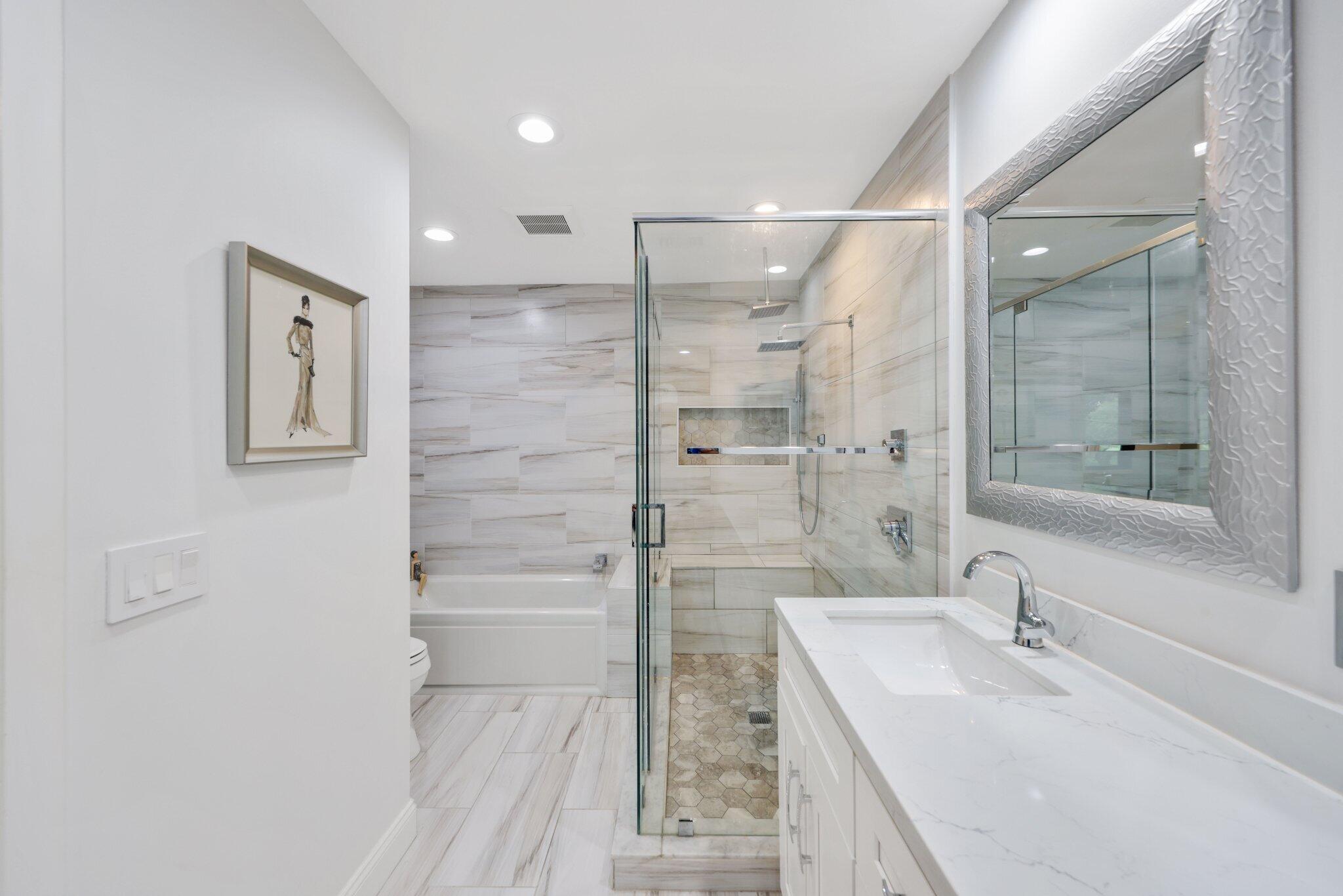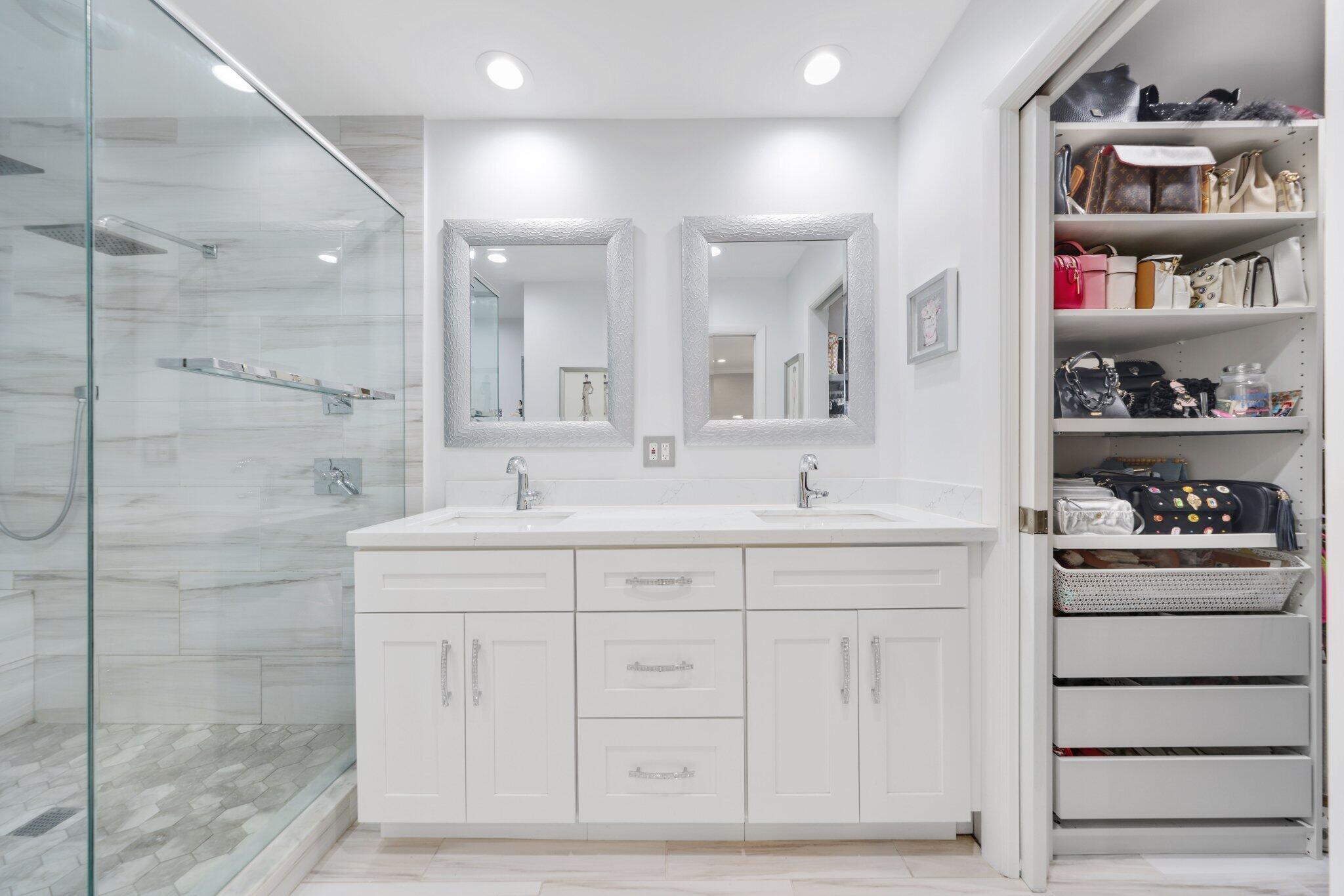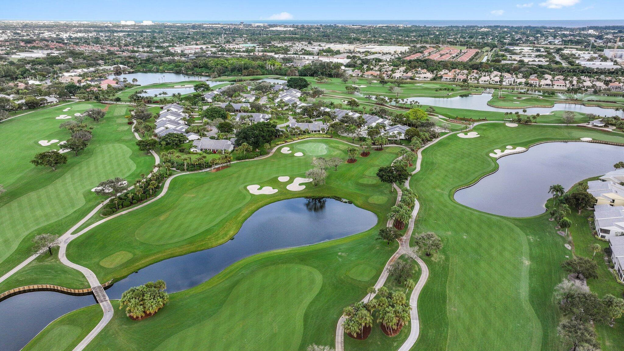 Paradise awaits in this meticulously remodeled 2-bedroom, 2.5-bathroom townhome in the prestigious Hunters Run community. With upgrades at every turn, this home features impact glass on all windows and doors, a new roof (2024), AC (2022), tankless water heater, and recessed LED lighting. The chef's kitchen boasts quartz countertops, 2023 refrigerator, stainless steel appliances, and a pantry with pull-out drawers. The updated powder room and separate laundry room with extra storage complete the main level. Upstairs, the expansive primary suite includes remote blackout shades, a custom closet with custom pull-out drawers and a spa-like bath with a walk-in shower and Jacuzzi tub. The guest suite offers an en-suite bath, and both bedrooms enjoy stunning golf course views.