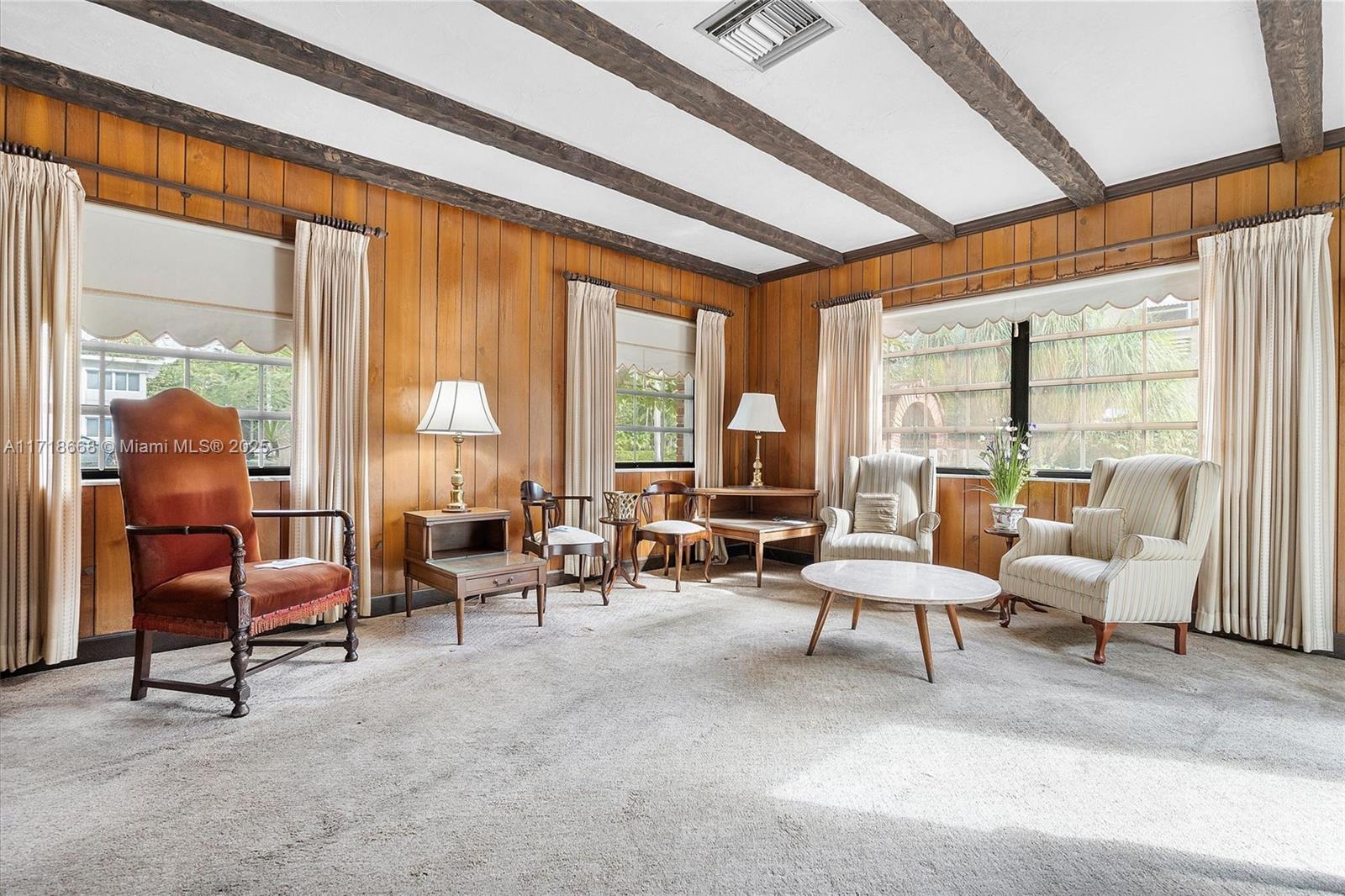 Nestled on a desirable corner lot in the highly sought-after Miami Shores neighborhood, this timeless gem is hitting the market for the first time. Filled with character, it features exposed beams, a classic design, and a thoughtful layout. Boasting 4 bedrooms, 3 bathrooms, and versatile private quarters ideal for live-in help or a guest suite, this home offers exceptional flexibility. The property includes a 1-car garage and 1-car carport, providing ample parking and storage. With its charm, prime location, and endless potential, this is a rare opportunity to create your dream home in one of Miami’s most prestigious communities.