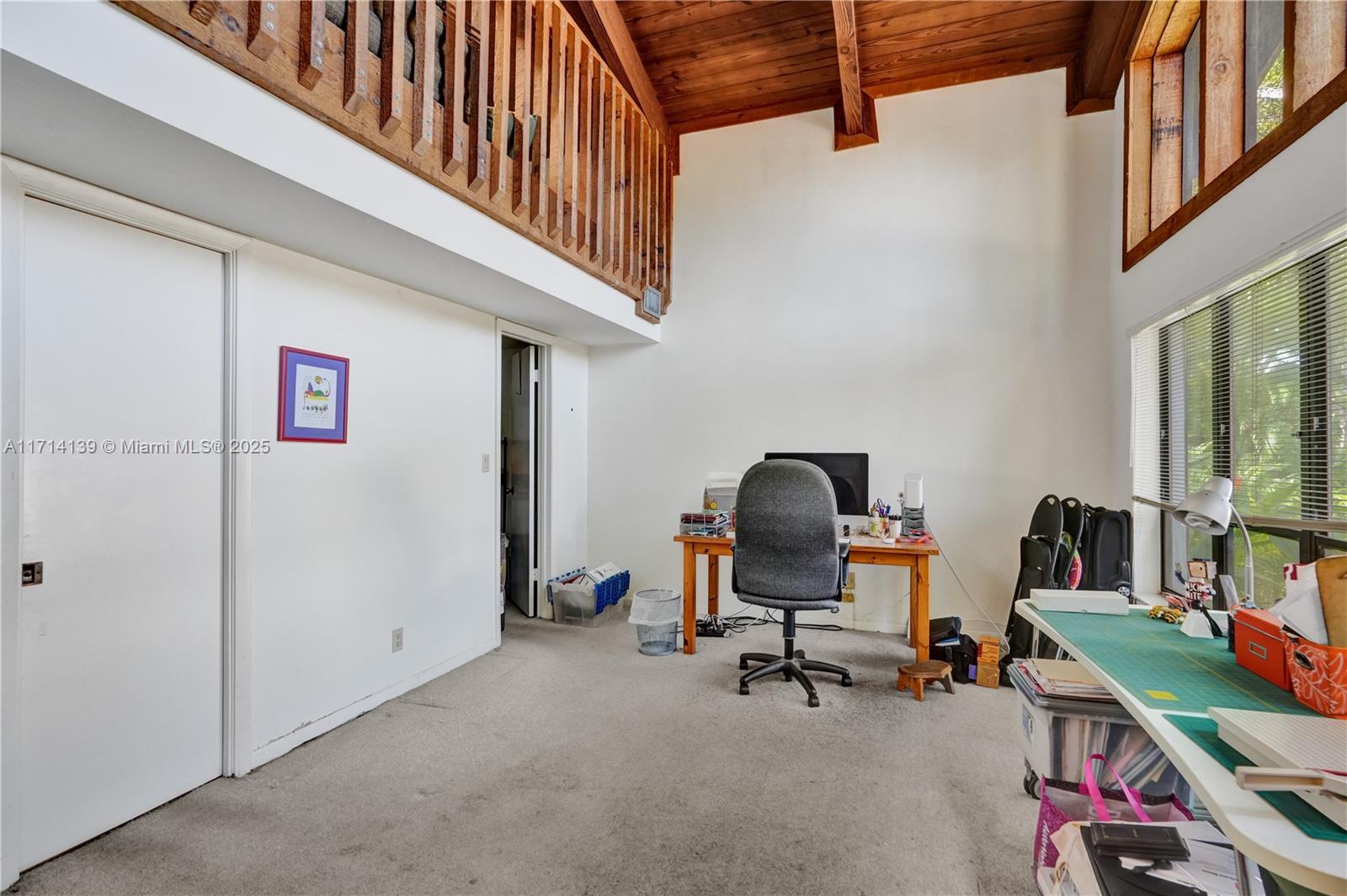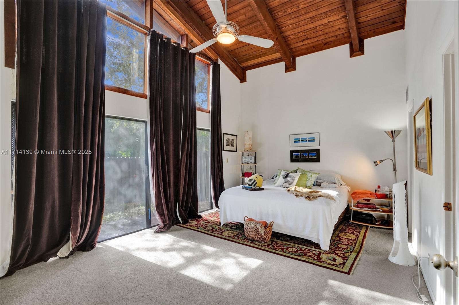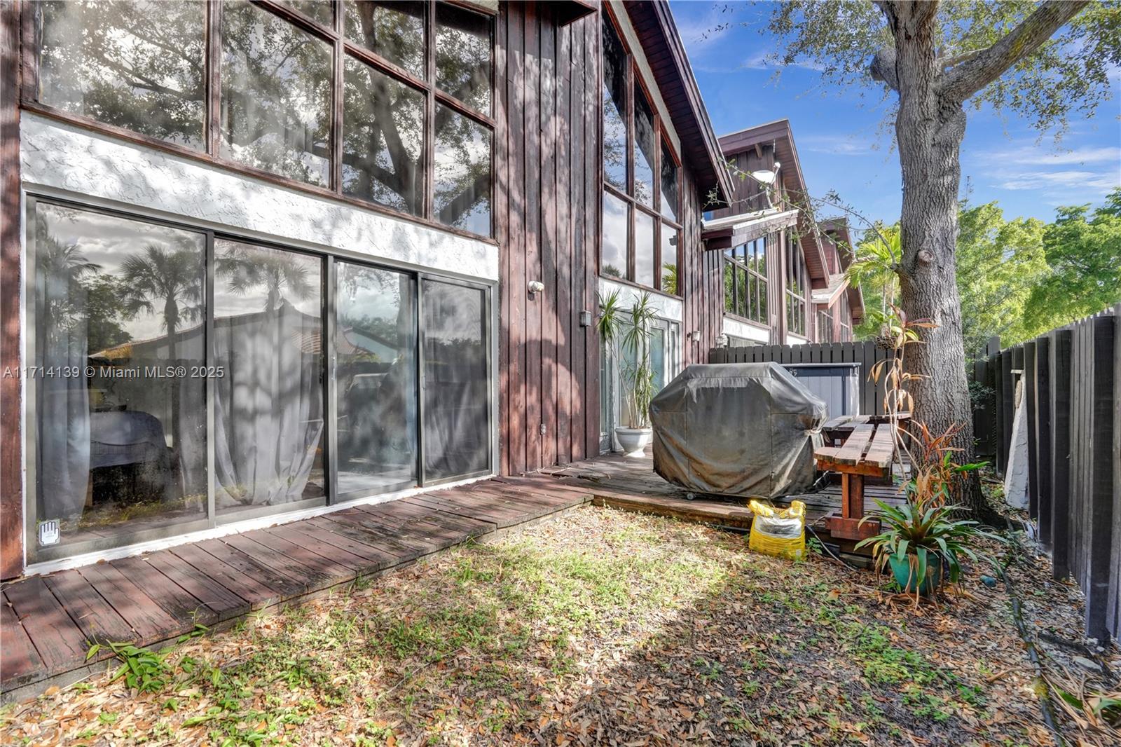 Light and bright, this 3 bed, 2.5 bath chalet style home is waiting for you! Enjoy an open concept floor plan with beautiful 29’ soaring vaulted ceilings, exposed wood beams and natural light in abundance. The owner’s suite with large walk-in closet is located on the 1st floor, along with a guest bedroom and full guest bathroom. The spiral staircase leads up to the 3rd bedroom and 1/2 bathroom. Outside, find a fenced (2024) private deck perfect for lounging or enjoy the community pool just steps away. Your comfort & energy efficiency are further enhanced with newer A/Cs from 2019 & 2023 and newer water heater (2019)! Ideally located in the heart of Plantation inside the Jacaranda Country Club in a private enclave of 20 homes, near top-rated schools, shopping, dining, parks, highways & more
