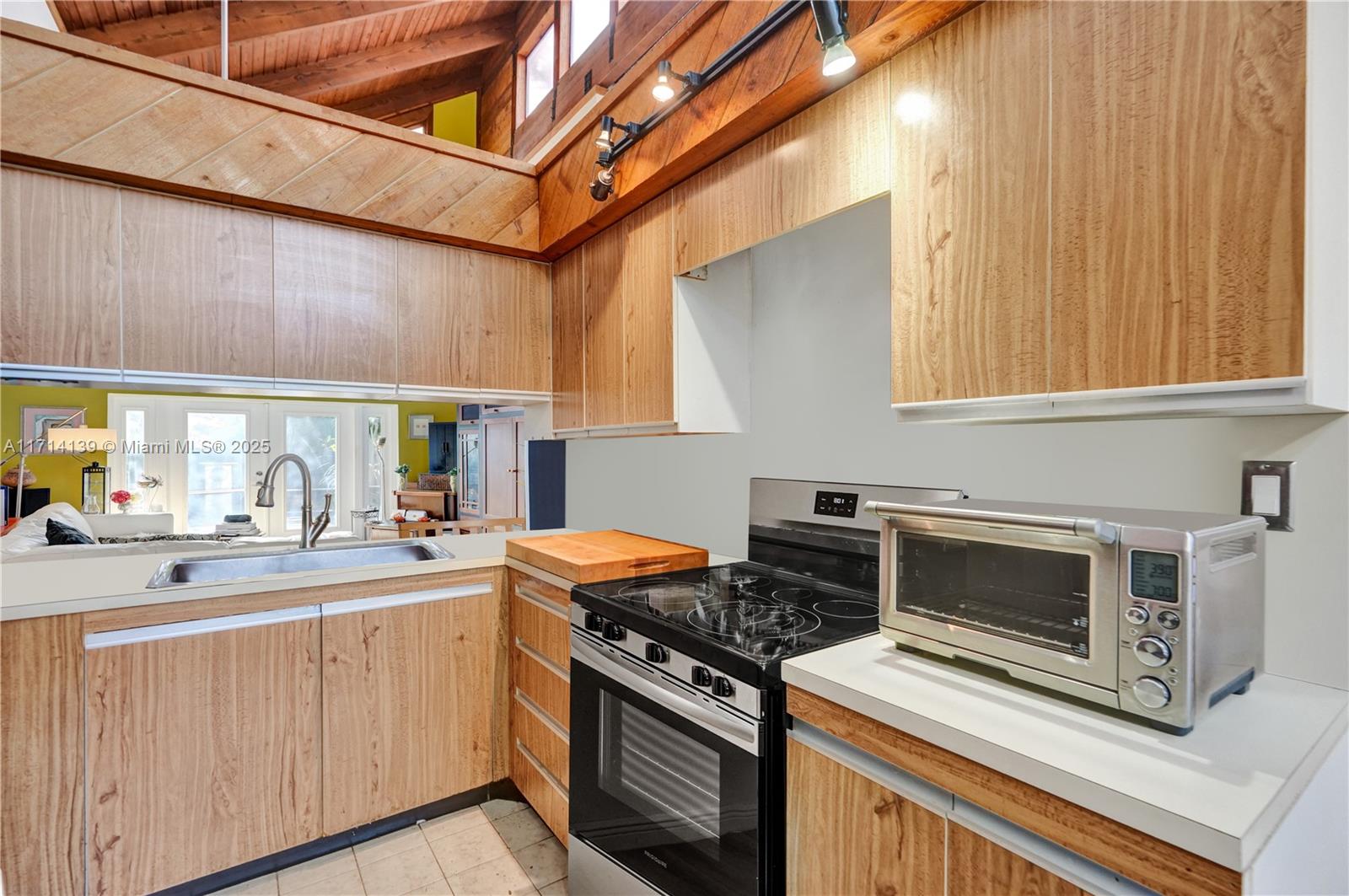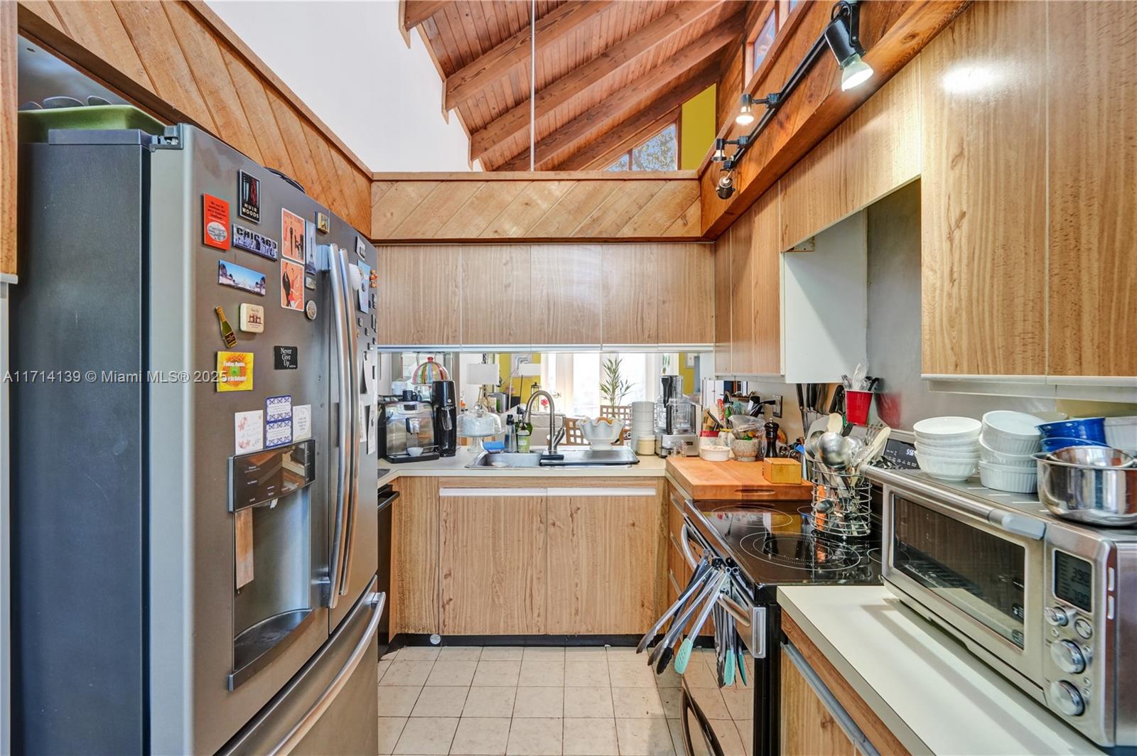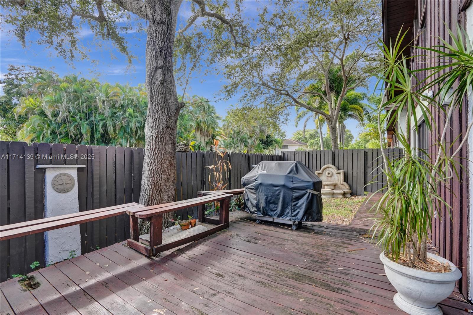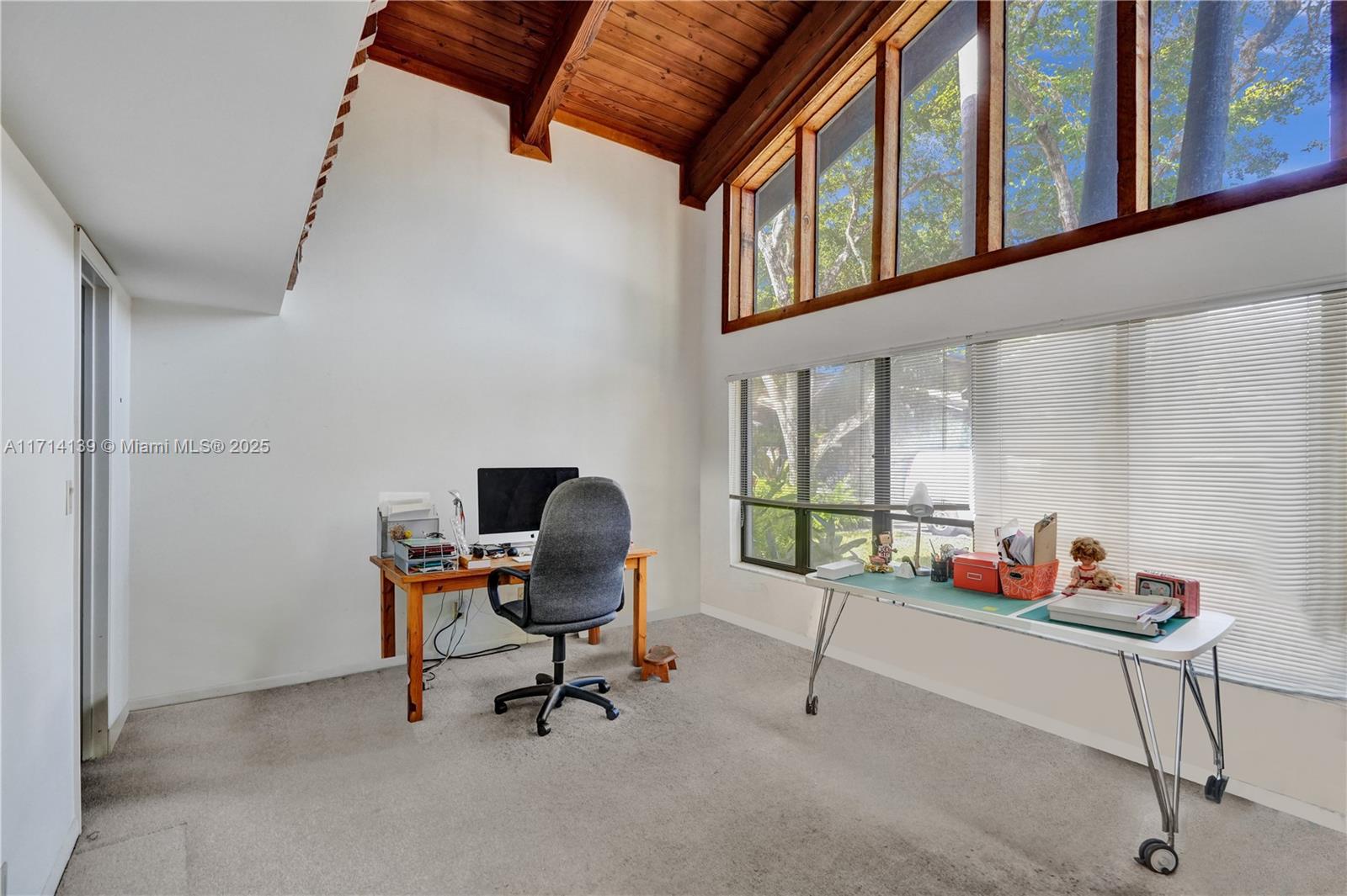 Light and bright, this 3 bed, 2.5 bath chalet style home is waiting for you! Enjoy an open concept floor plan with beautiful 29’ soaring vaulted ceilings, exposed wood beams and natural light in abundance. The owner’s suite with large walk-in closet is located on the 1st floor, along with a guest bedroom and full guest bathroom. The spiral staircase leads up to the 3rd bedroom and 1/2 bathroom. Outside, find a fenced (2024) private deck perfect for lounging or enjoy the community pool just steps away. Your comfort & energy efficiency are further enhanced with newer A/Cs from 2019 & 2023 and newer water heater (2019)! Ideally located in the heart of Plantation inside the Jacaranda Country Club in a private enclave of 20 homes, near top-rated schools, shopping, dining, parks, highways & more