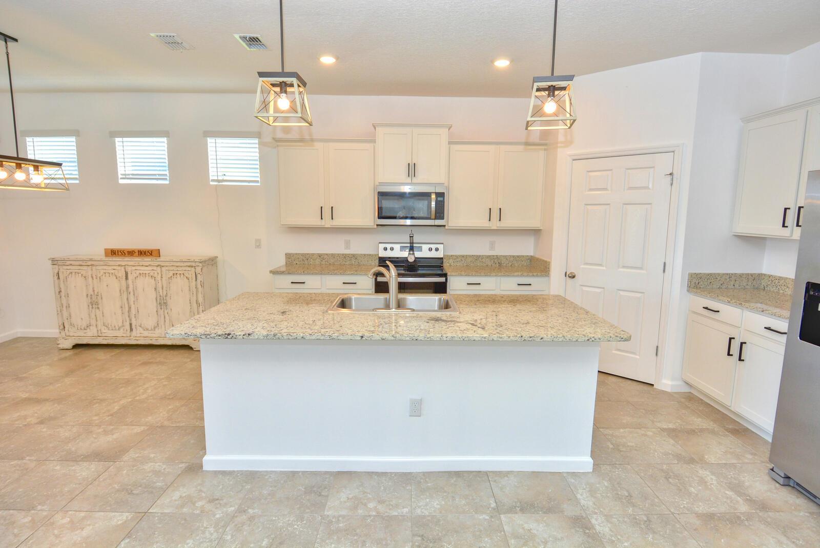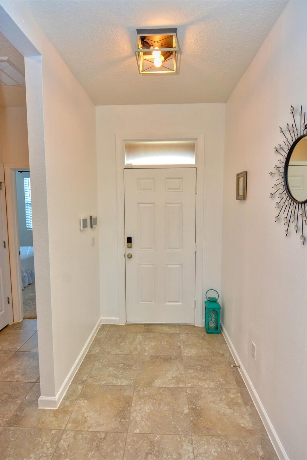 Welcome Home to this amazing eco-friendly / energy efficient smart home located in the gated and secure private community of The Preserves / Estates of Tradition. This pristine 4BD, 2BA, 2-car garage single family home, situated on the lake, provides stunning sunrise views as well as picturesque sightings of jumping fish and water fowl from the expansive back patio where tranquil tropical breezes abound. The open floor plan is accentuated by the exquisite white granite kitchen counter tops with Breakfast Bar; ceramic tile throughout the main living areas; SS appliances; ceiling fans and decorative lighting. The Owners suite boasts dual vanities, large wall mirror, walk in shower and water closet. Additional upgrades have been added and include the painting of the exterior and much of