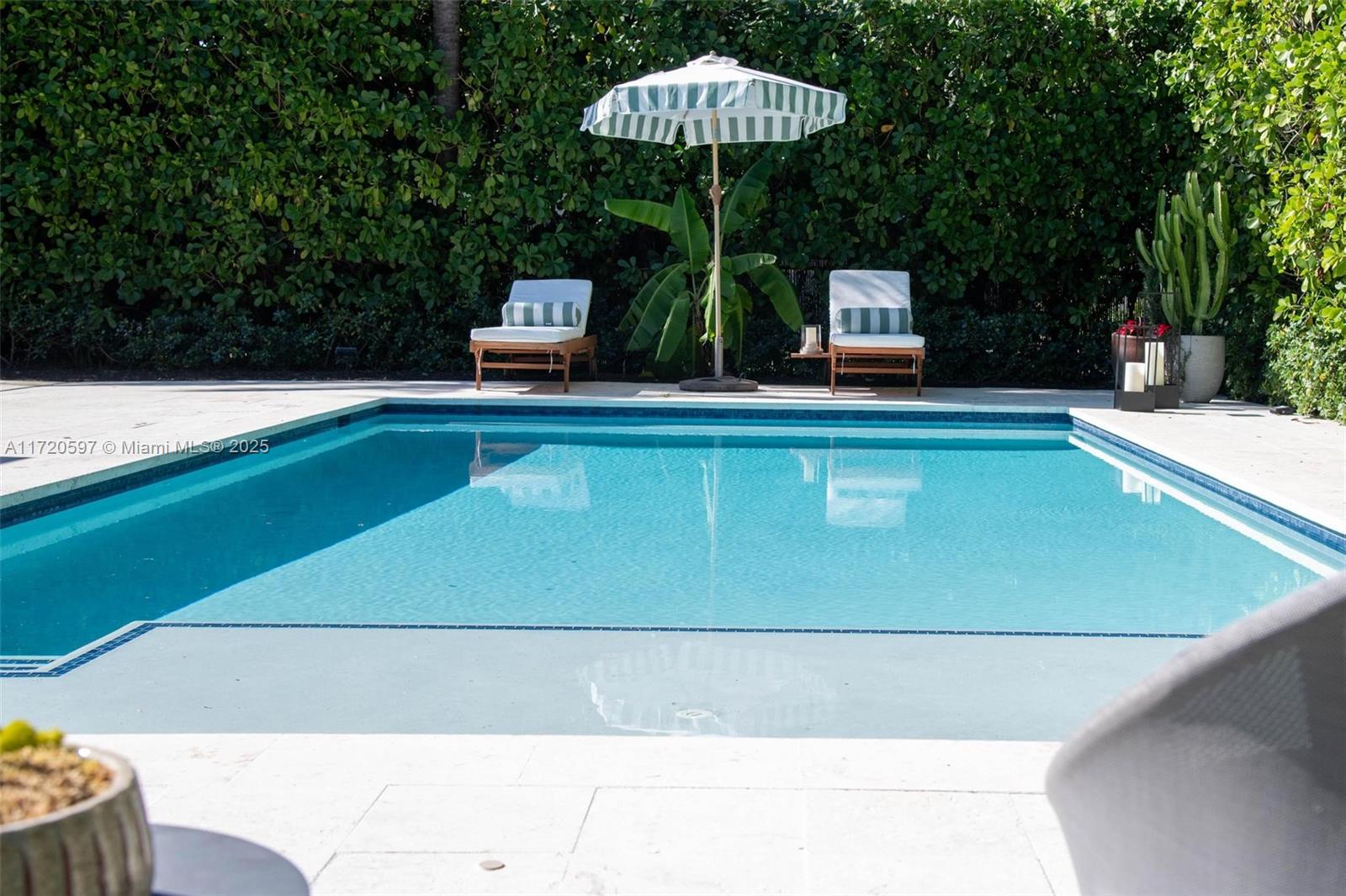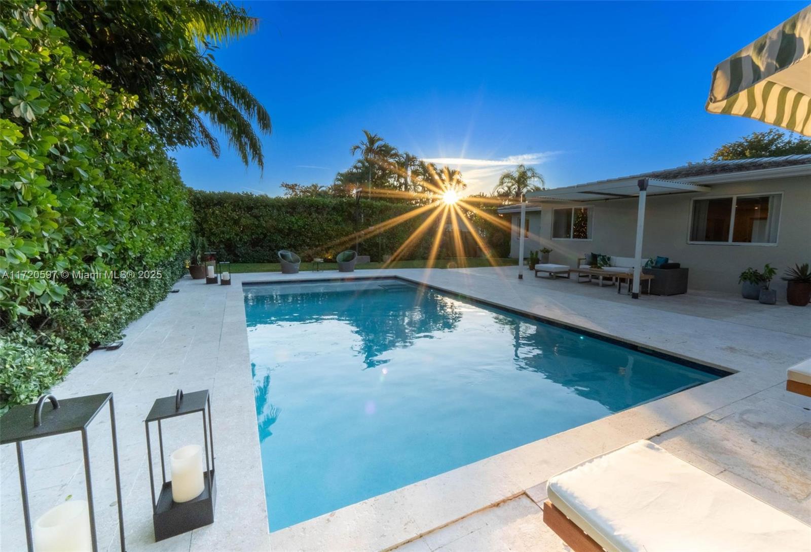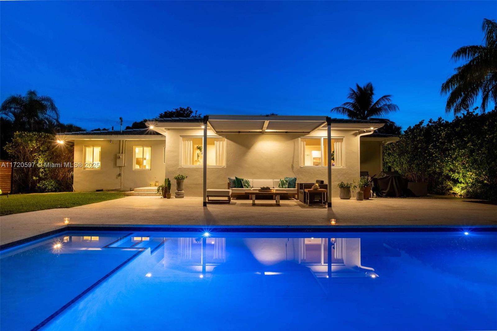 This mid-century modern pool home is unquestionably the best value right now in all of The Shores! Welcome to Villa Julia. You’ll instantly feel welcomed as you enter this light, bright, airy, spacious ~1,800 SF updated home with signature wide open flow living, dining, and grand gourmet eat-in kitchen, all opening to the lush gardens, entertainment patios, and sparkling pool. Equipped with a stacked three bedroom, two bath plan, including a roomy principal en-suite retreat with walk-in closet. Great features: new pool, new AC, designer kitchen and baths, impact windows and doors, beautifully refinished terrazzo floors, updated electrical, plenty of guest parking, and a one car garage. All in a convenient location, nestled on a sprawling 9,225 SF lot, just blocks to Downtown Miami Shores.