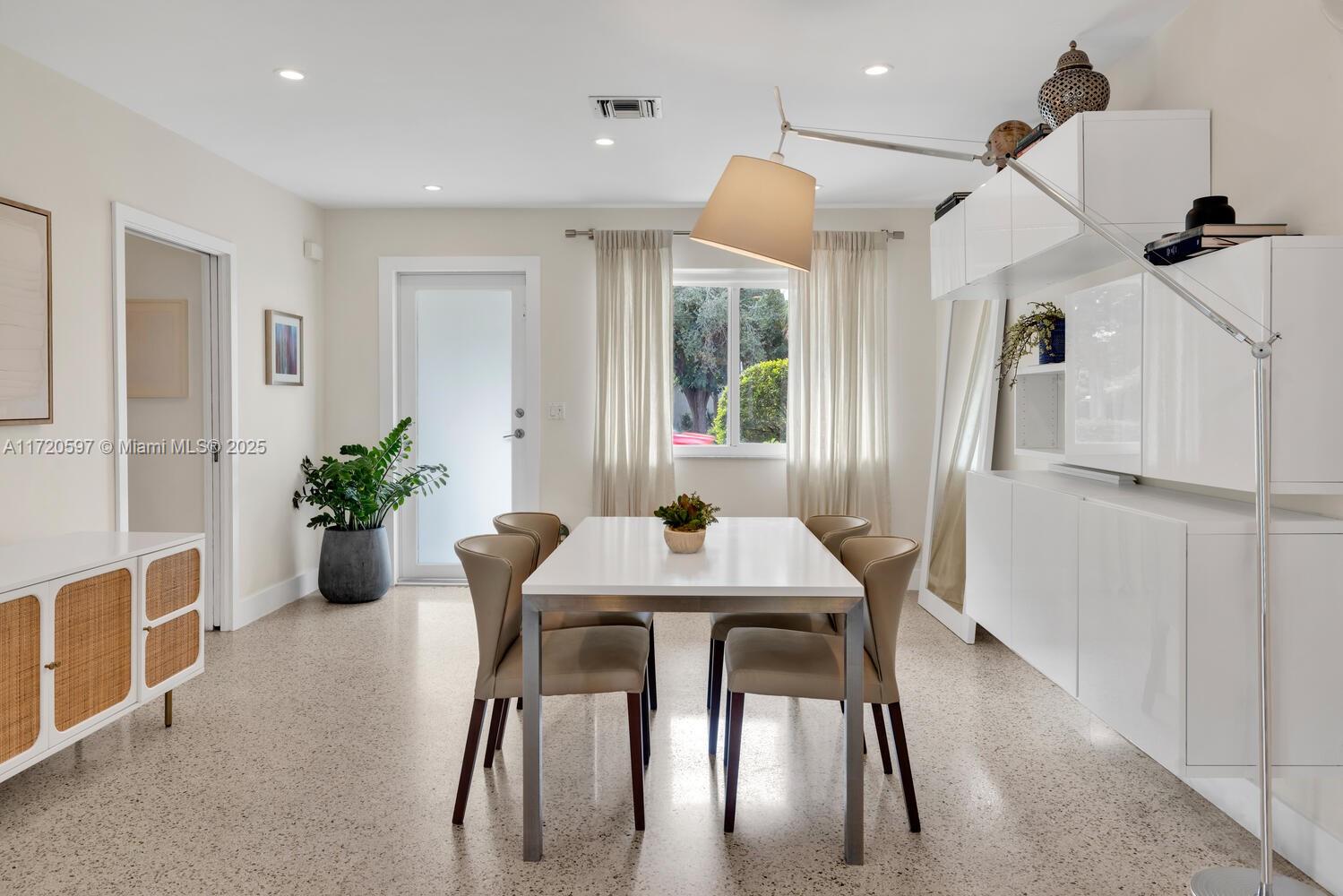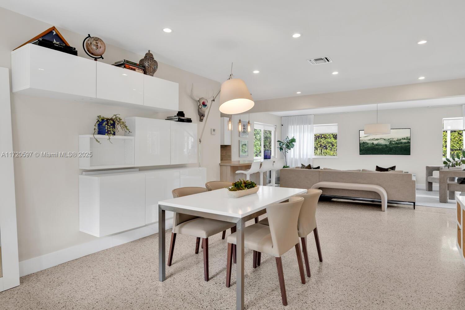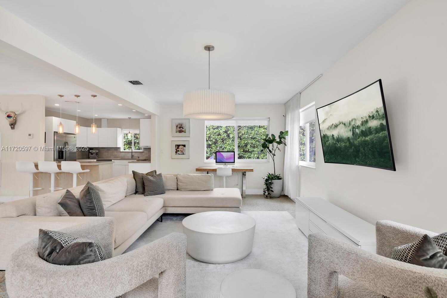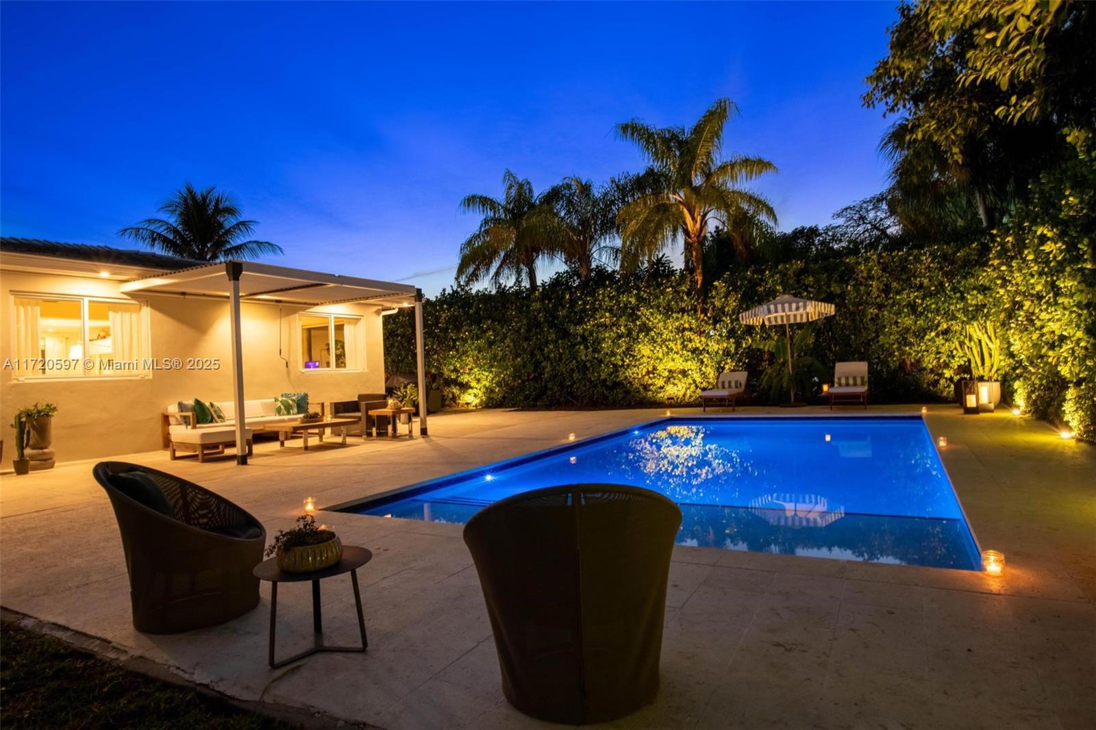 This mid-century modern pool home is unquestionably the best value right now in all of The Shores! Welcome to Villa Julia. You’ll instantly feel welcomed as you enter this light, bright, airy, spacious ~1,800 SF updated home with signature wide open flow living, dining, and grand gourmet eat-in kitchen, all opening to the lush gardens, entertainment patios, and sparkling pool. Equipped with a stacked three bedroom, two bath plan, including a roomy principal en-suite retreat with walk-in closet. Great features: new pool, new AC, designer kitchen and baths, impact windows and doors, beautifully refinished terrazzo floors, updated electrical, plenty of guest parking, and a one car garage. All in a convenient location, nestled on a sprawling 9,225 SF lot, just blocks to Downtown Miami Shores.