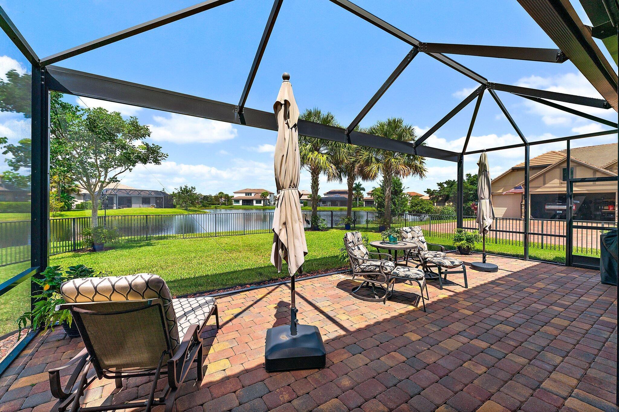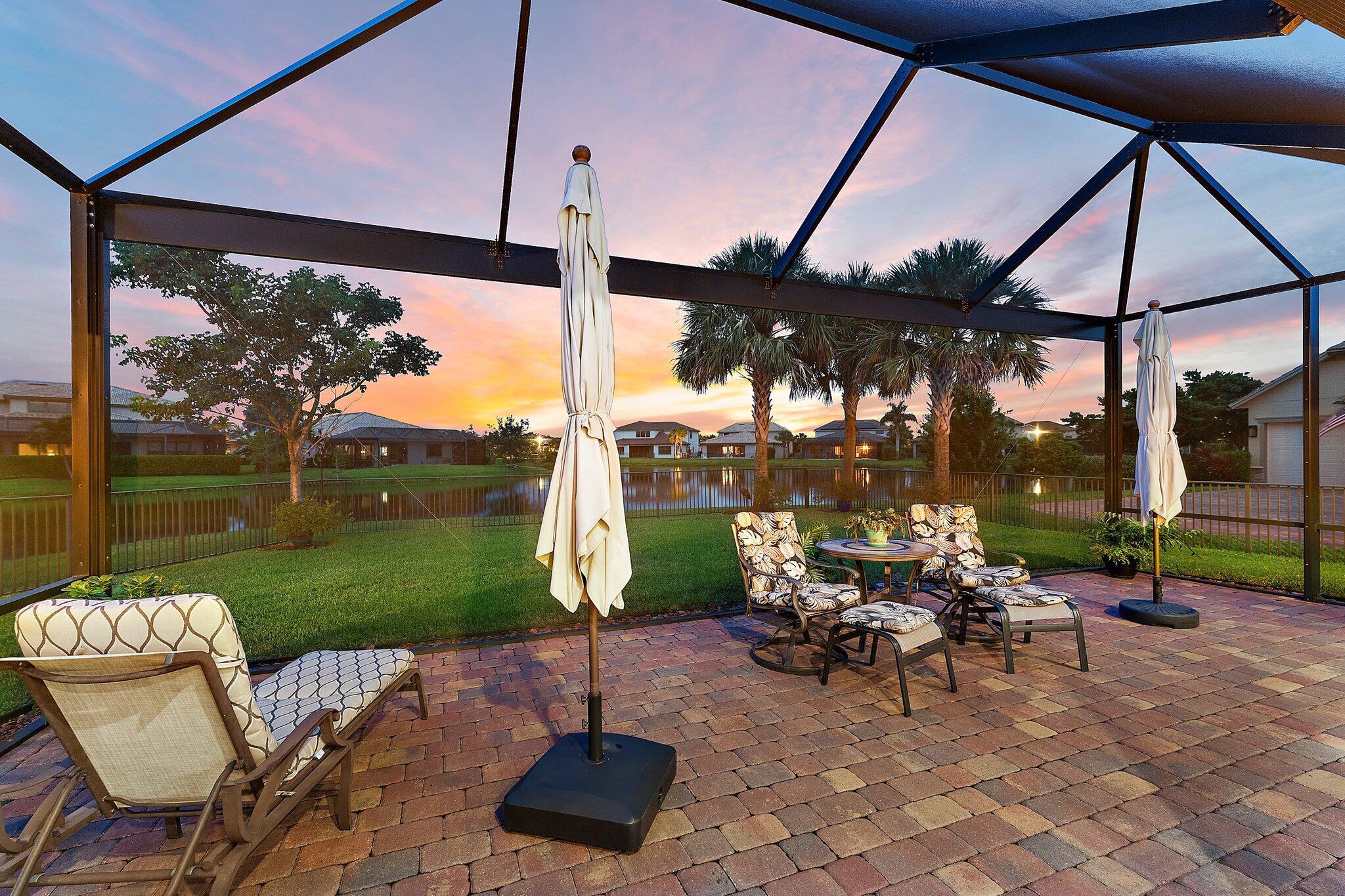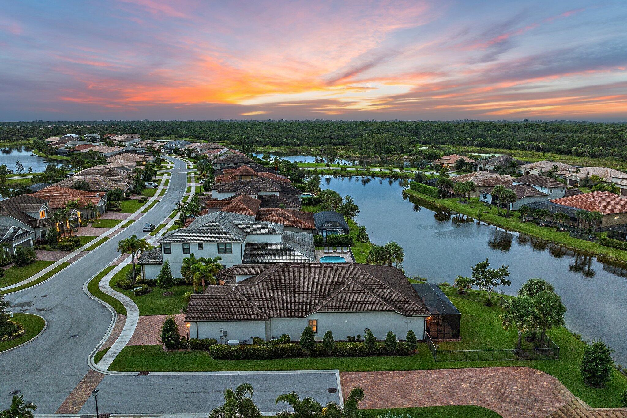 This extremely popular one-story ''Stonewater'' model home by DiVosta is located in the heart of the community, at the end of a cul-de-sac, and overlooking a large lake. Special features include a whole house, gas generator; patio roll-up sun shades and armor hurricane roll-up blinds; Twin Eagle gas grill; crown molding; ''no-seeum'' patio screening; enlarged garage with built-in cabinetry and epoxy floor; solid core doors throughout, and much more.