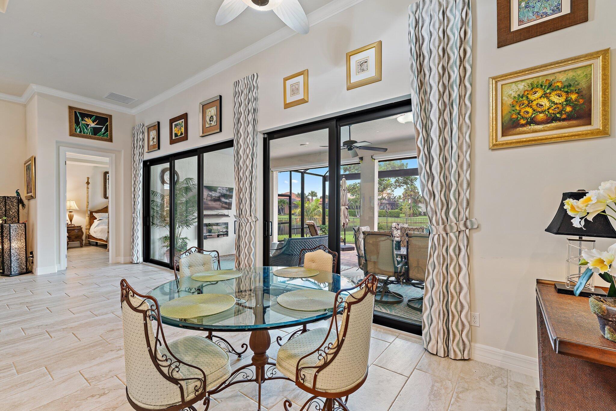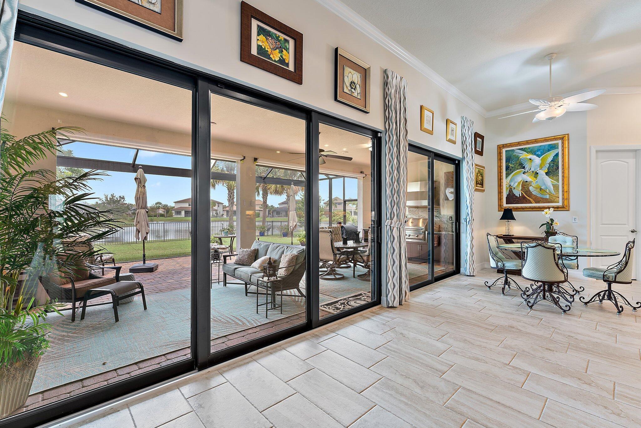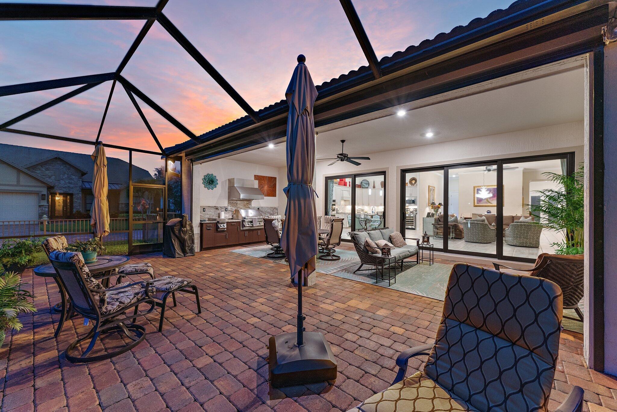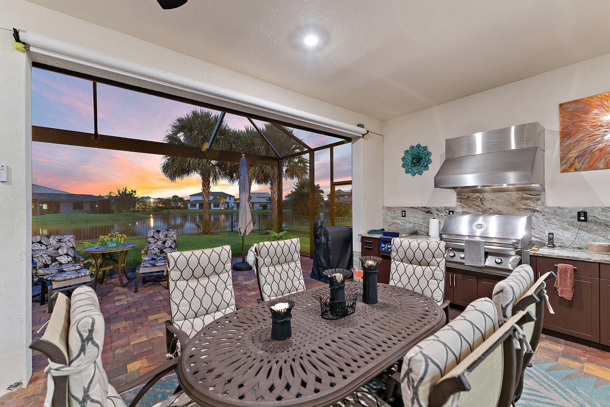 This extremely popular one-story ''Stonewater'' model home by DiVosta is located in the heart of the community, at the end of a cul-de-sac, and overlooking a large lake. Special features include a whole house, gas generator; patio roll-up sun shades and armor hurricane roll-up blinds; Twin Eagle gas grill; crown molding; ''no-seeum'' patio screening; enlarged garage with built-in cabinetry and epoxy floor; solid core doors throughout, and much more.