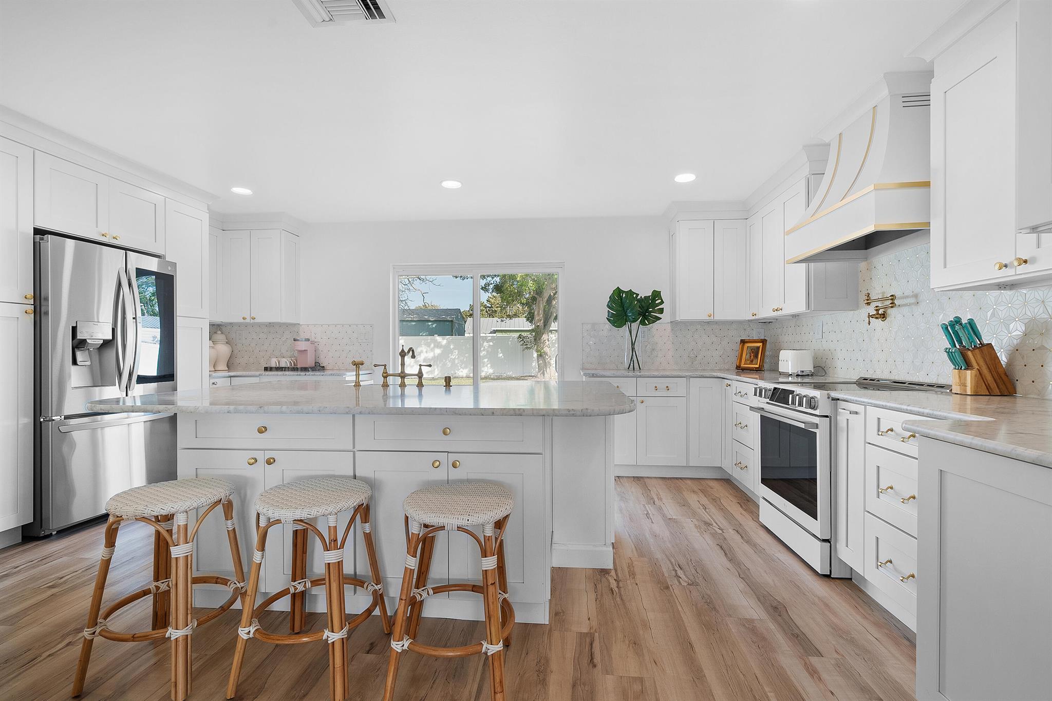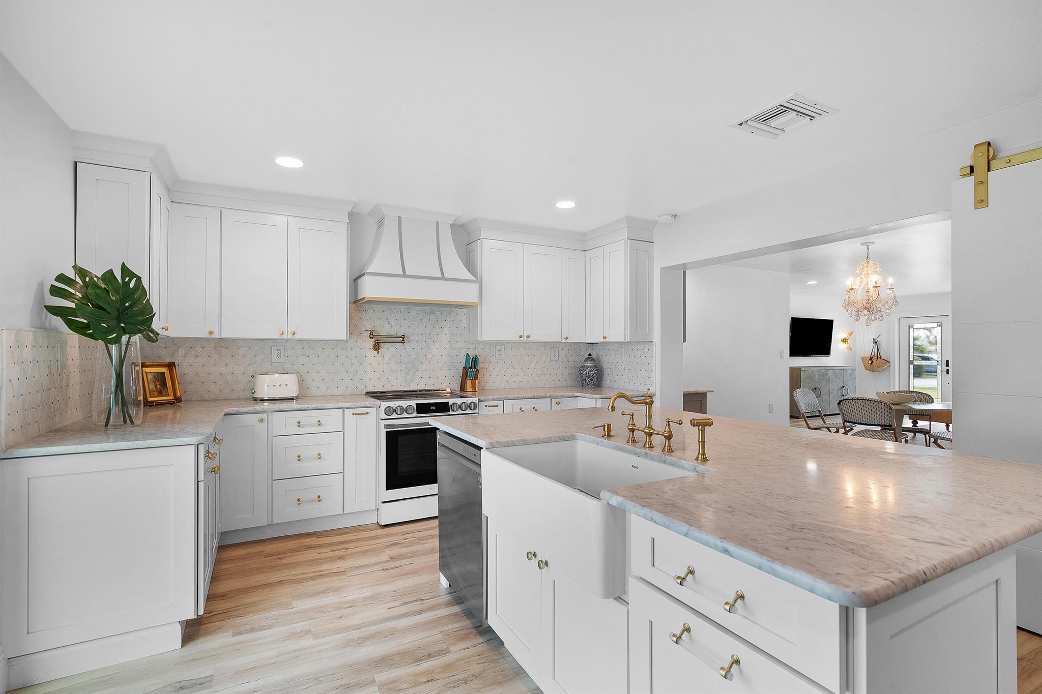 If Serena and Lily is your vibe, then this house is totally your vibe. This island home won the mayor's gold hammer award! Every single thing has been redone. Seamless Metal Roof 2021, ALL IMPACT windows & doors, AC 2023, WH 2022. LVP throughout. Aesthetically pleasing kitchen featuring a custom wood range hood paired w/brass strapping, honed Carrera marble countertops, timeless white shaker cabinetry, brushed gold hardware, & even a microwave drawer! The lot itself is BALLER with it being a third of an acre that's just a 6-minute walk to the beach & walking distance to 7 other island bars & restaurants. You also have views of Faber Cove from your front window. A money-making machine, in the last 2 years this vacation rental home has brought in a revenue of $125,000!