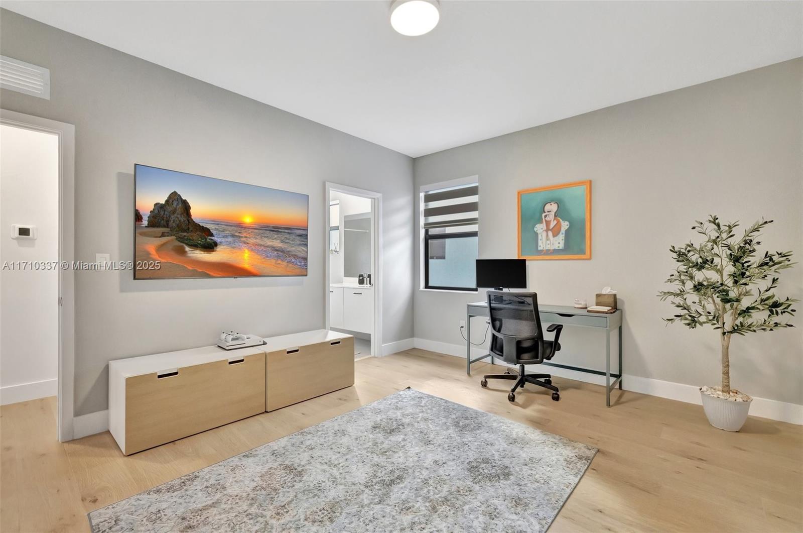 Next Gen, Guest Suite w/ Private Entrances! Experience modern luxury in this 5-bedroom, 2-story home in Marbella, Miramar, built in 2022. At 3,633 sq ft, it features an attached in-laws suite w/ a wet bar, fridge, bedroom, bath, sitting room & secondary laundry—ideal for guests or a home office. Gourmet kitchen w/ quartz counters, cooking island opens to large, bright great room. Upgrades include Luxury Vinyl floors, designer wall coverings & paint, Cat-6 wiring, Hurricane Impact Windows, Doors & Garage, window treatments, Epoxy Garage & Smart Home w/ Ring w/ 6 Cameras, EV charger, smart lock. PVC Fenced backyard w/ Artificial Turf & expanded Pavers. Located in a new gated community w/ a heated lakefront Pool, Clubhouse, Gym & close to top-rated schools, shopping, dining & highways.