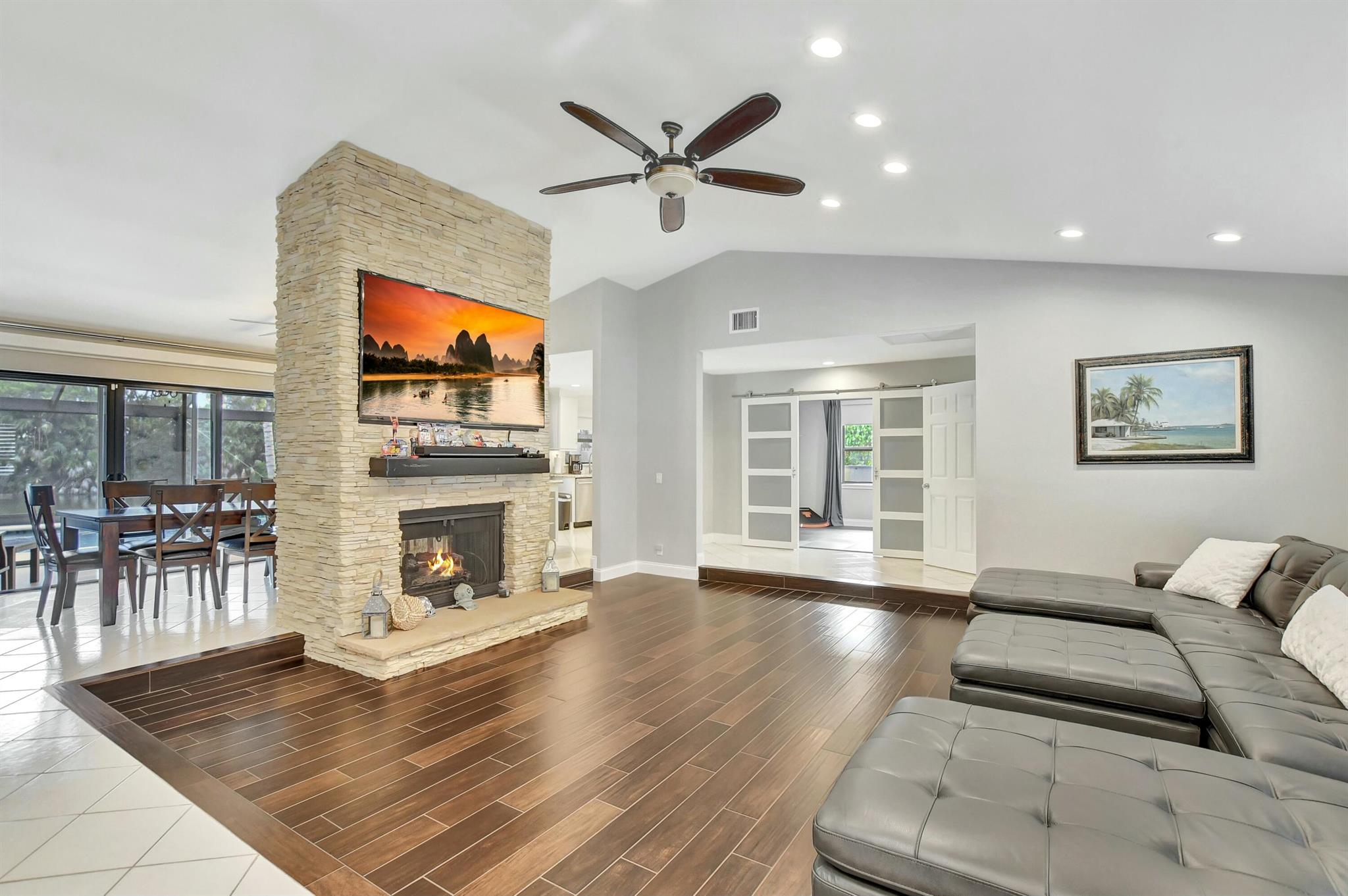 OWNER WILL CONSIDER FINANCING This house is meticulously upgraded for its new owner, boasts everything you could ever desire. It features impact-resistant windows and doors, new patio screen structure, a state-of-the-art pool heater plus a working fireplace The kitchen and bathroom have been renovated with high-end appliances as fixtures. The layout is exceptional, with a convertible den/office that can be transformed into a fourth bedroom. If you seek privacy and a breathtaking water view, this house is the ideal place for you! Boca Greens is also home to the Boca Greens Golf Club no membership is required, the course can be used on a pay to play basis. The low HOA fee includes fast fiber internet and an excellent cable package including HBO Max and Showtime.