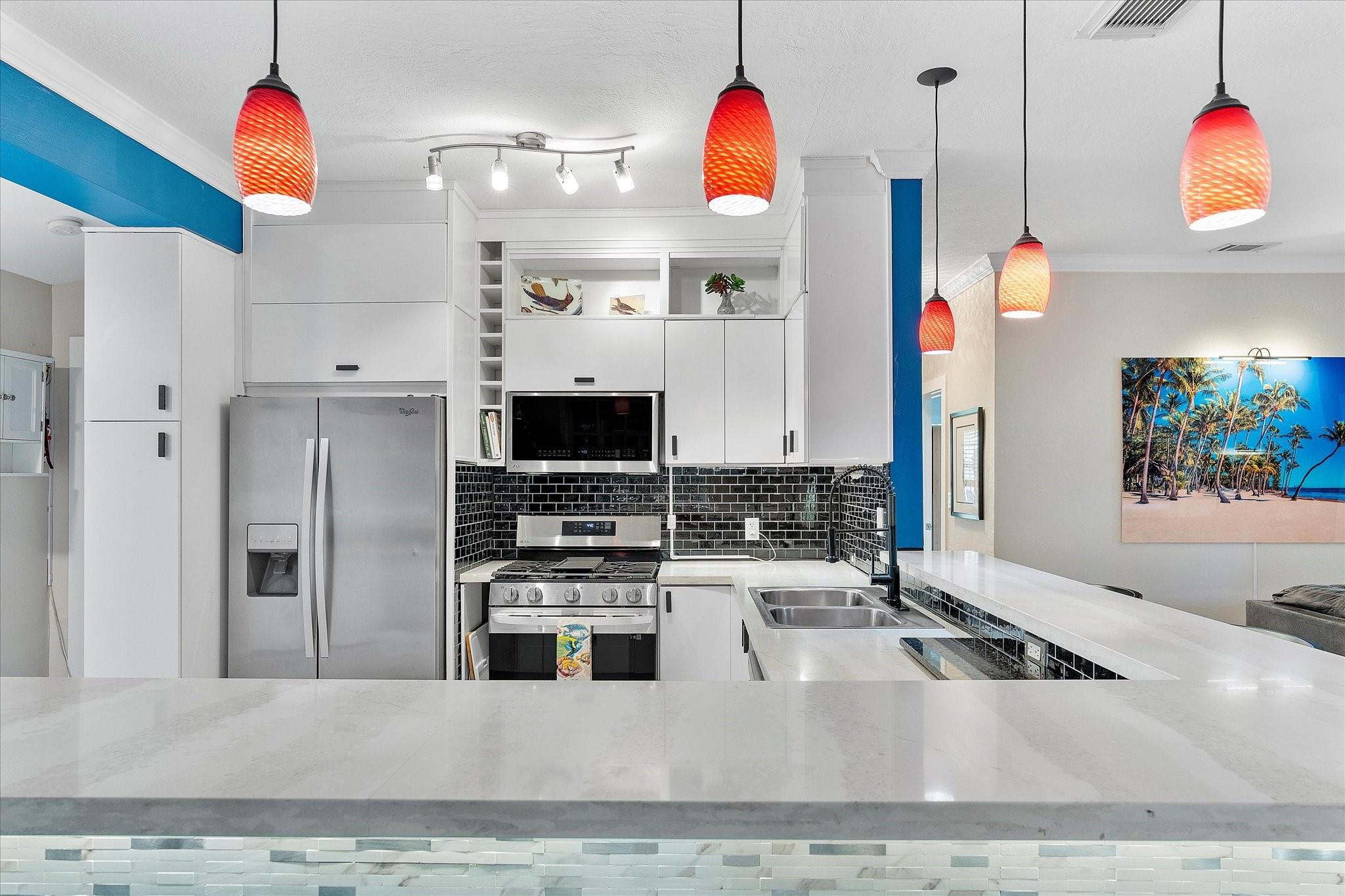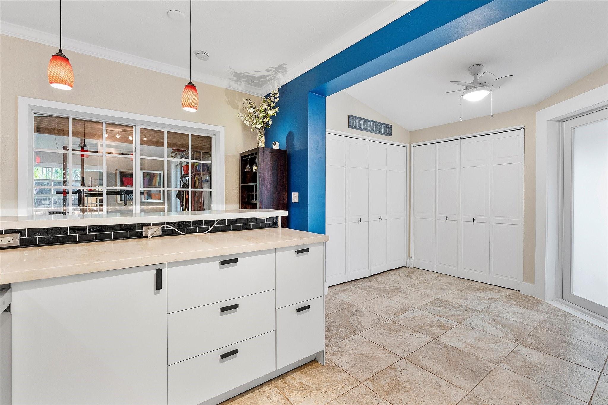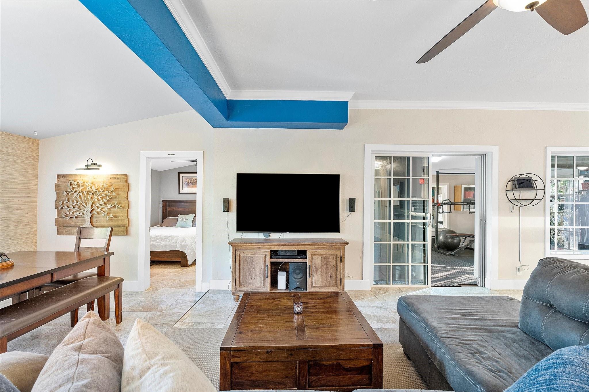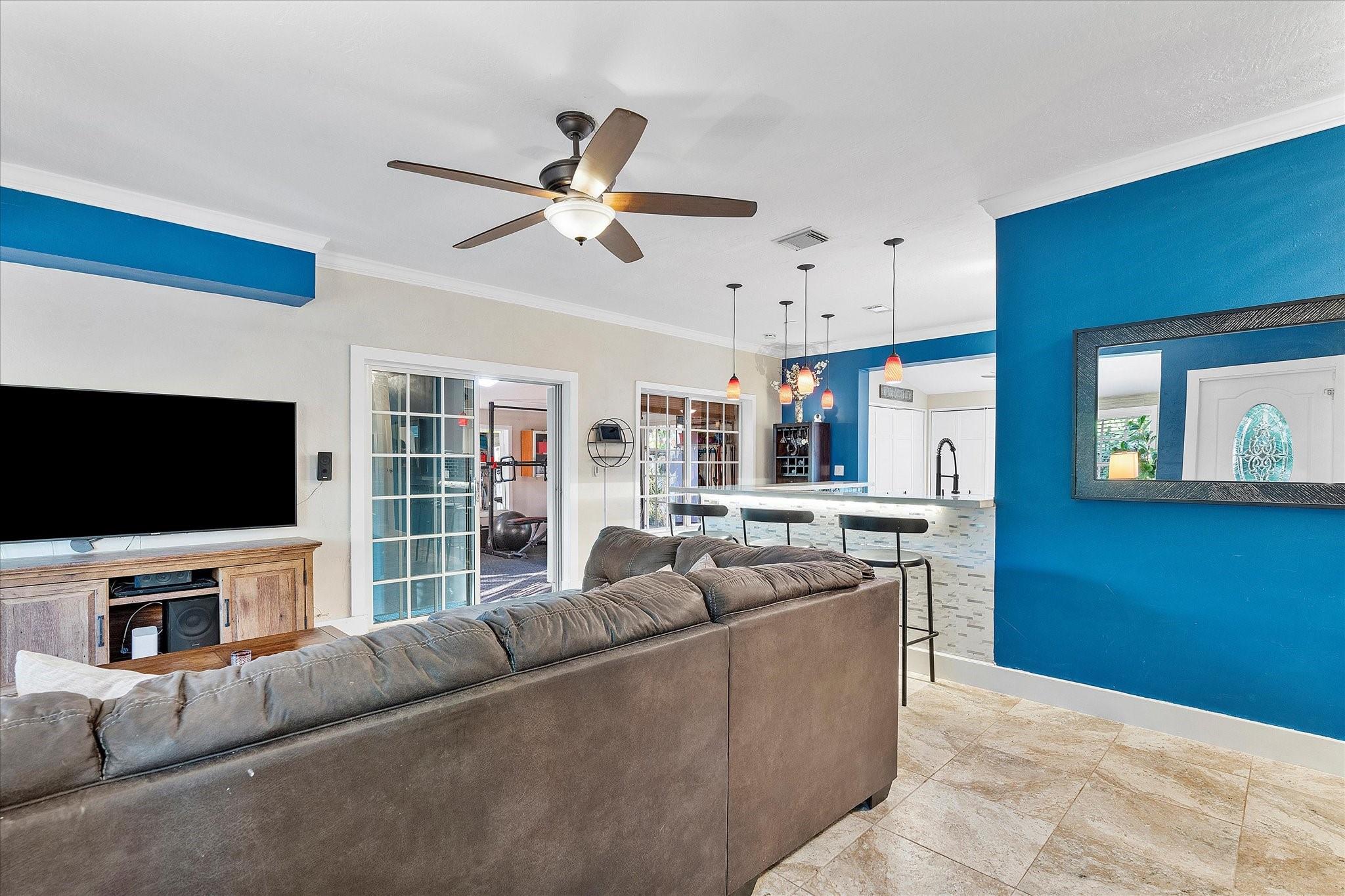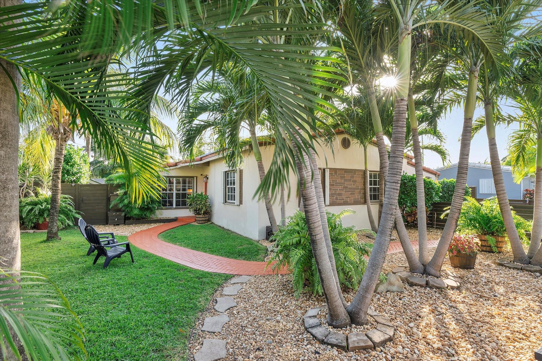 Enter into your dream home! This stunning property features a breathtaking open floor plan, soaring ceilings, elegant countertops, and gorgeous flooring. Brand-new appliances make the kitchen a chef’s paradise. Nestled in a park-like setting, the lush landscaping includes mango and coconut trees, creating your tropical oasis. Enjoy energy savings with solar panels and battery support, ensuring 24/7 power and credits from FPL! This beautifully renovated home offers 4 bedrooms, 2 bathrooms, and ADU potential to maximize functionality. The sunny gym offers endless possibilities—home office, studio, or relaxation space. Don’t miss this one-of-a-kind property that blends luxury, efficiency, and versatility. Schedule your showing today!