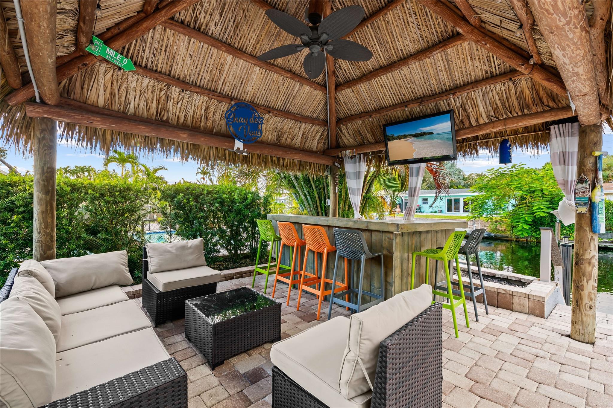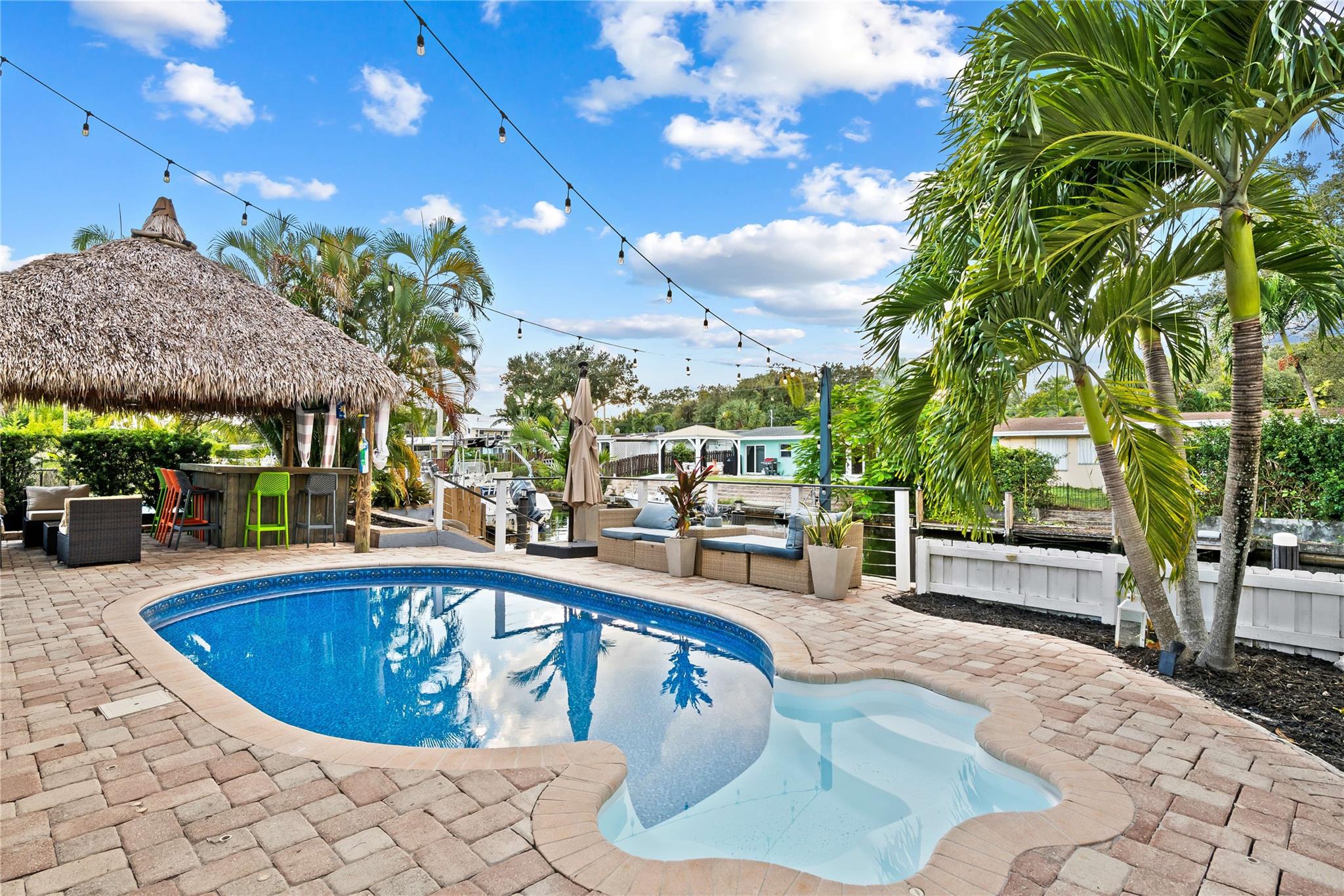 Welcome to your dream home! Nestled in the heart of the coveted Shady Banks neighborhood, this stunning waterfront property offers over 2,100 square feet of luxurious living space with breathtaking, unobstructed views. With 3 spacious bedrooms and 3 beautifully renovated bathrooms, this home combines modern elegance with the serene charm of waterfront living. Step inside to discover an open floor plan that’s perfect for entertaining. The recently updated kitchen and living areas flow seamlessly to the outdoors, where you’ll find your own private oasis. The backyard is an entertainer’s dream, featuring a newly renovated saltwater pool with a new pump and liner, and a custom tiki bar – ideal for relaxing or hosting guests in style.