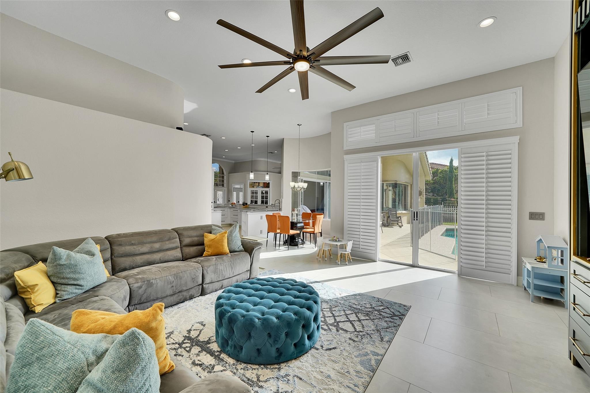Welcome to your dream home in Kensington Gardens! This fully remodeled residence features 5 spacious bedrooms & 3 luxurious bathrooms across over 2,800 sq. ft. Located on a large cul-de-sac lot, it offers tranquility and convenience, minutes from top-rated schools, shopping, & major highways. Highlights include soaring ceilings, new flooring throughout the home, a decorative fireplace, 2010 roof, new gourmet kitchen with Quartz counters & SS appliances. The landscaped yard has professional lighting, a sparkling pool, ample relaxation space. The master suite boasts pool access, 3-large closets, & a spa-like en suite bathroom. Practical upgrades include two new AC units, a water heater, a three-car garage, and low HOA fees. This home is a blend of luxury, comfort, and convenience—a must-see!