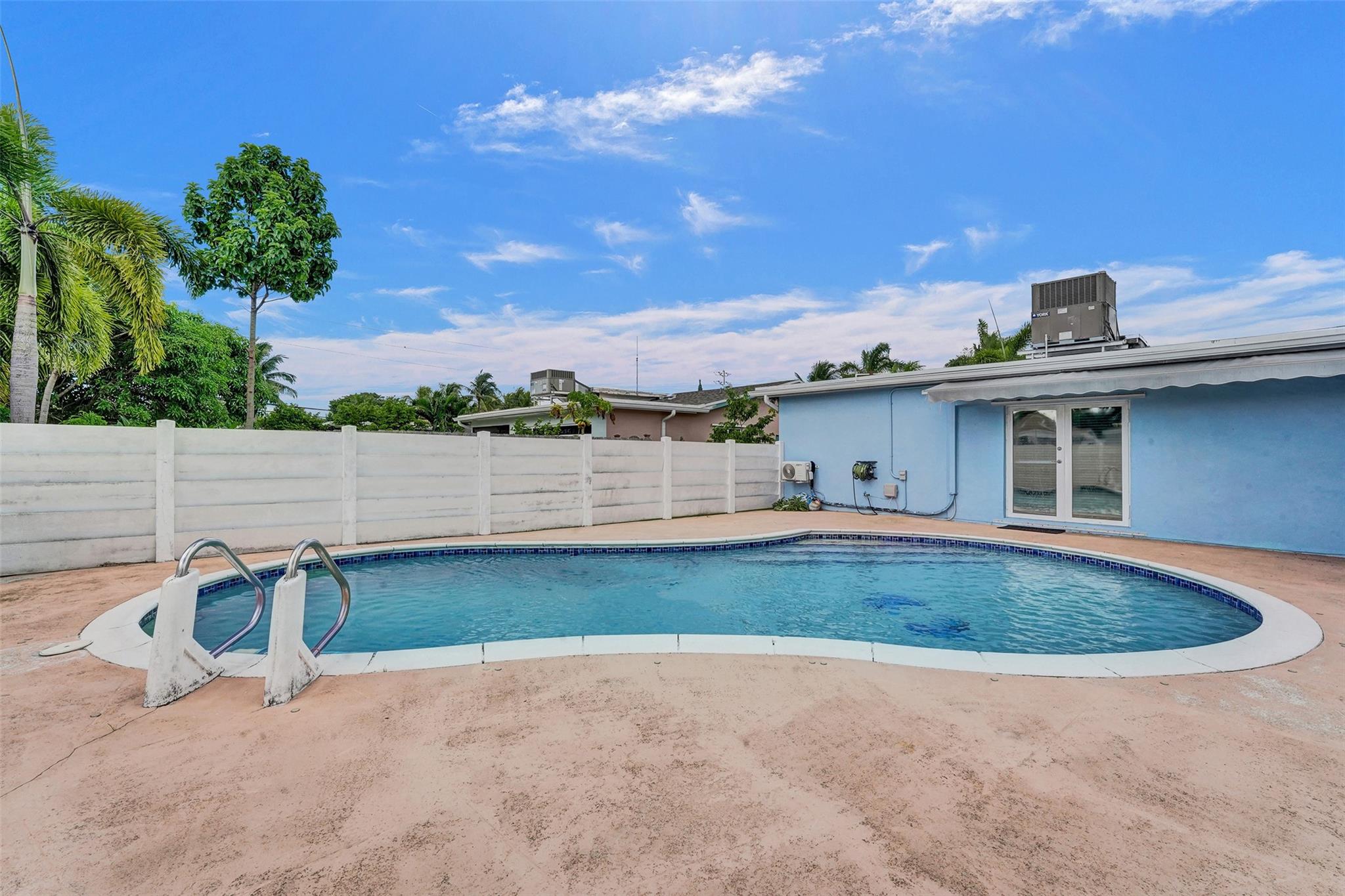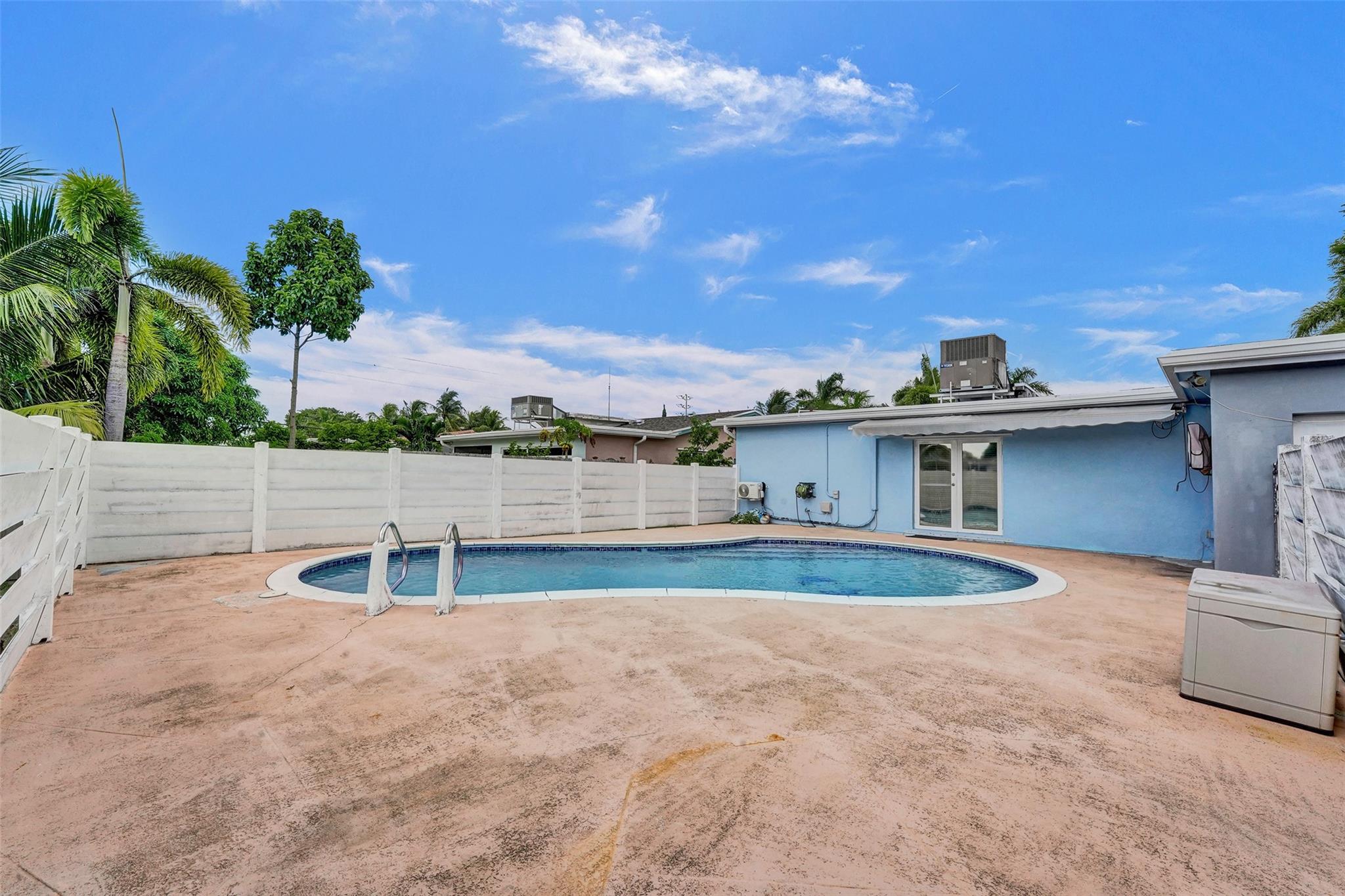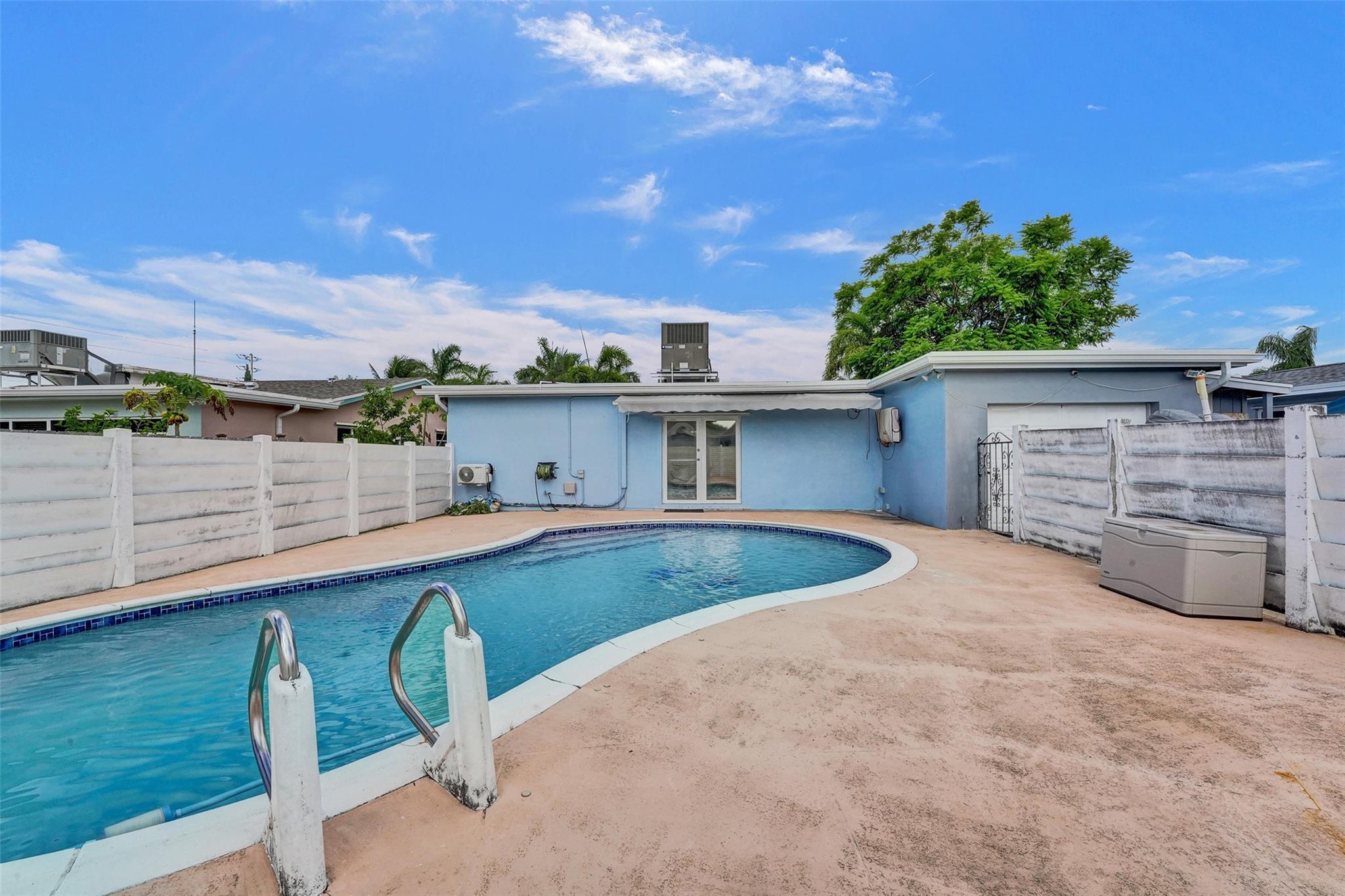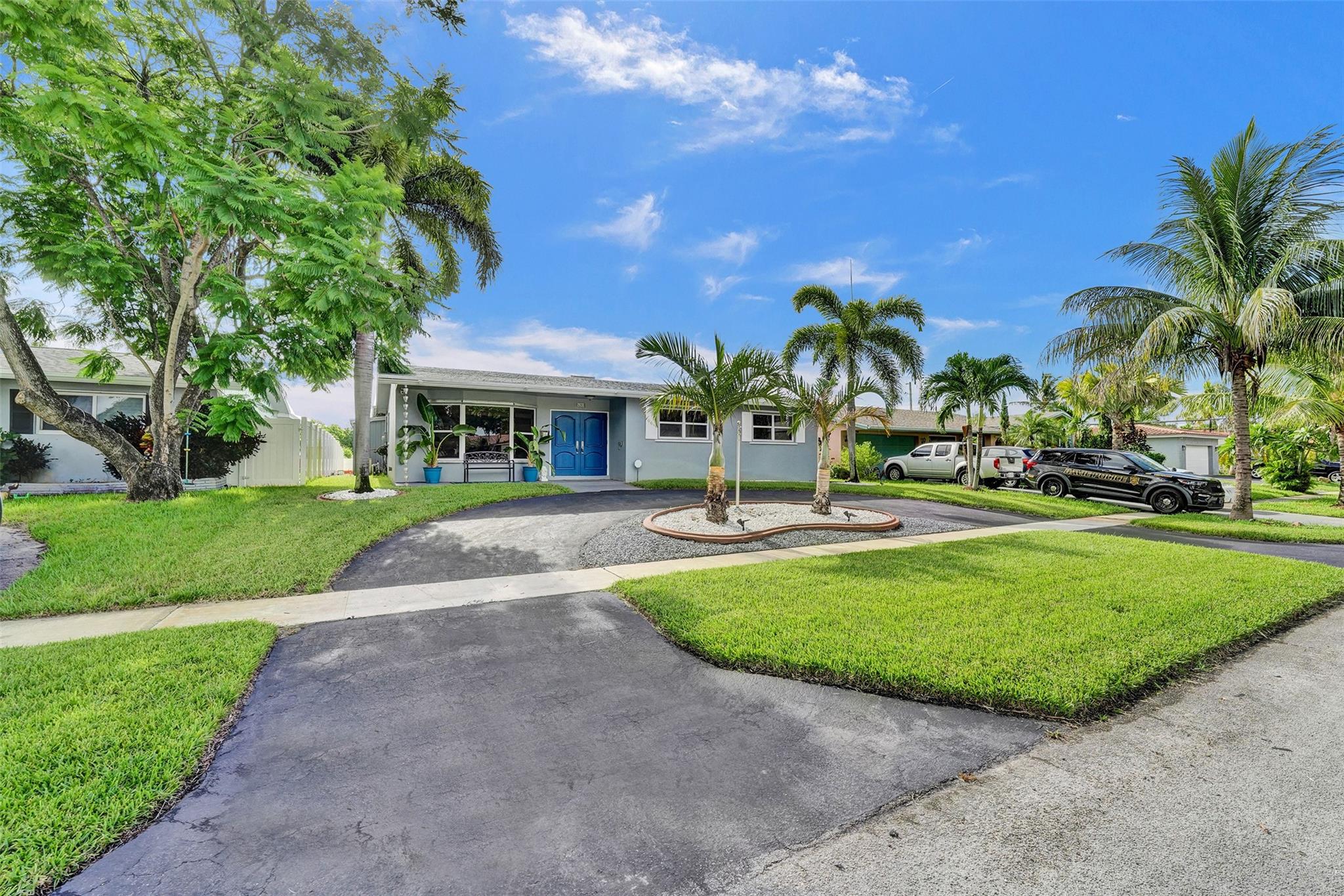 Hollywood pool home. This three bedroom, two bath home is updated and ready to be moved in. The kitchen has updated stainless steel appliances. Cook top sits on a center island with room for seating. The roof and A/C are Approximately three years old and are still under warranty. Pool is great for entertaining and is surrounded by a wall and fence. The bedrooms are large with a walk in closet in the master bedroom. Two driveways for this house, a circle one up front with great curb appeal and one in the rear of the house that leads to the attached garage. The house has hurricane shutters and French doors that lead to the pool. House has city water and sewer, however the sprinklers use well water. This house is close to hospitals, highways and shopping.
