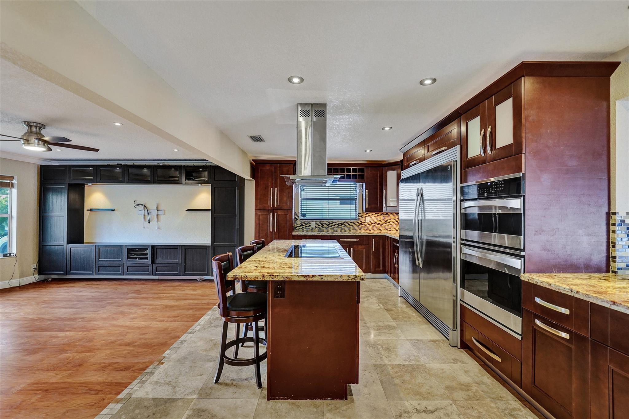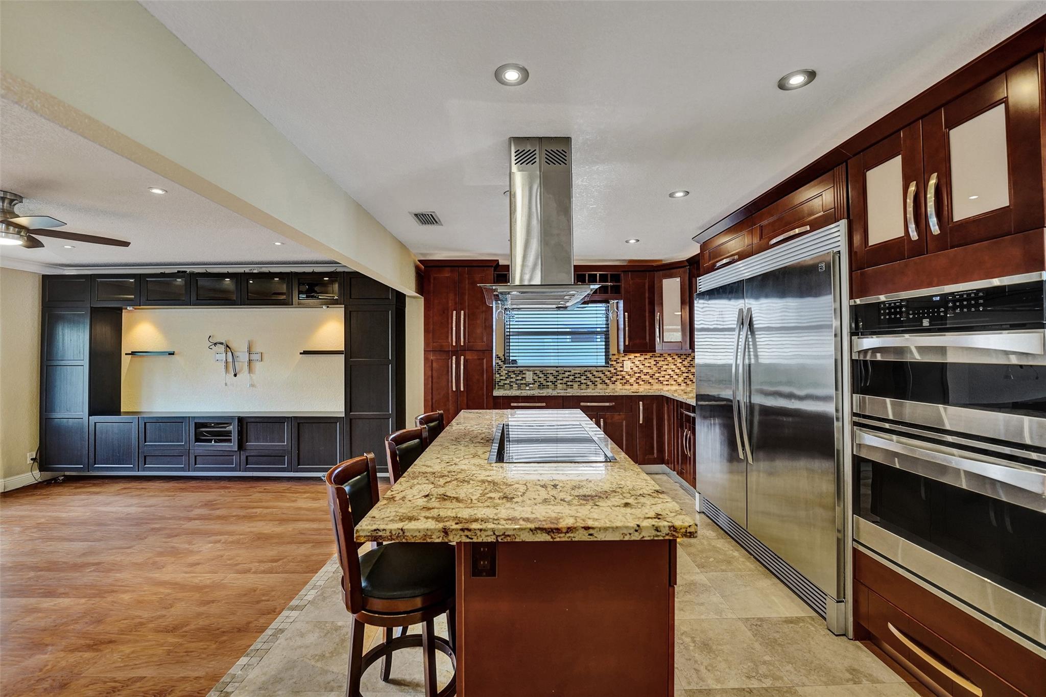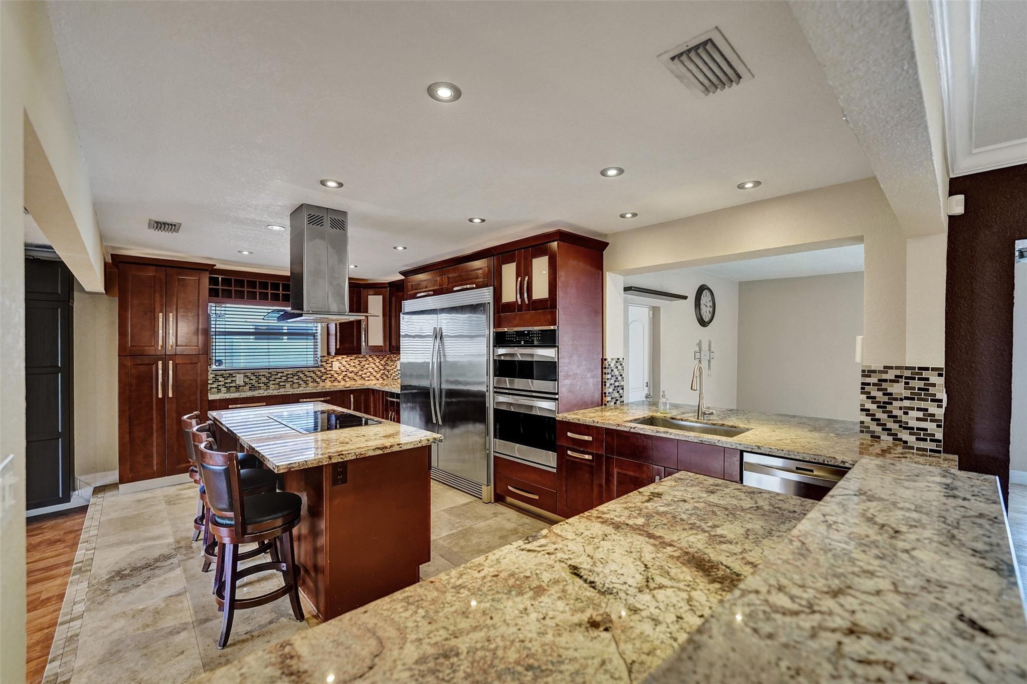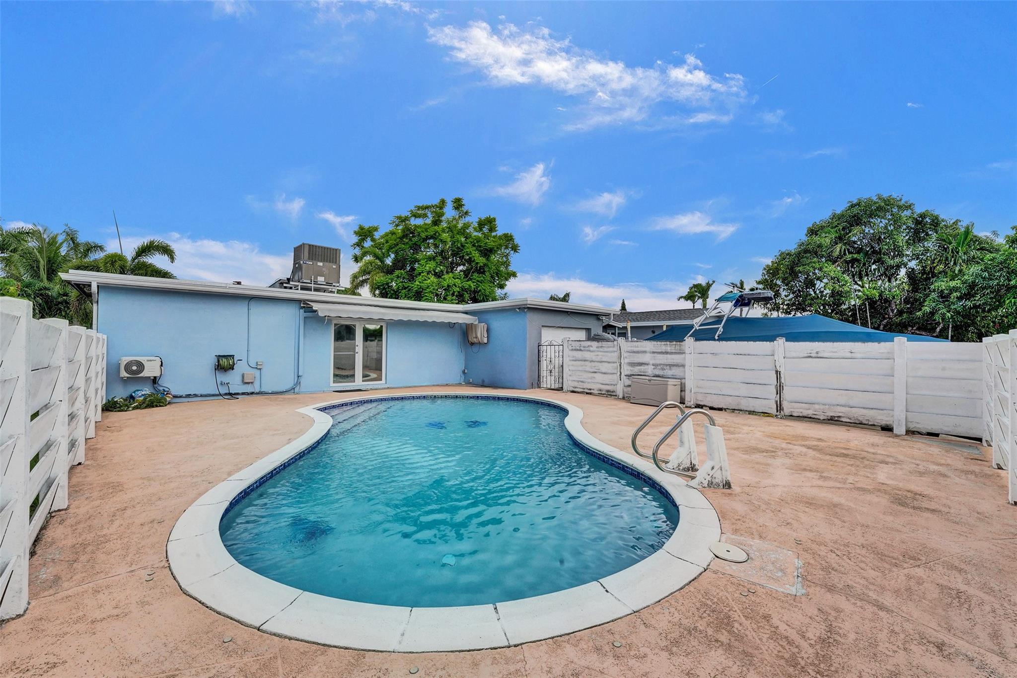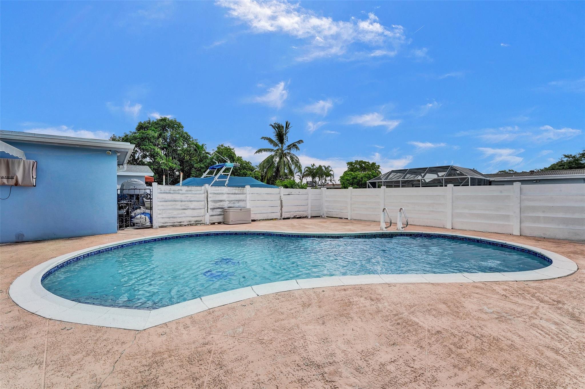 Hollywood pool home. This three bedroom, two bath home is updated and ready to be moved in. The kitchen has updated stainless steel appliances. Cook top sits on a center island with room for seating. The roof and A/C are Approximately three years old and are still under warranty. Pool is great for entertaining and is surrounded by a wall and fence. The bedrooms are large with a walk in closet in the master bedroom. Two driveways for this house, a circle one up front with great curb appeal and one in the rear of the house that leads to the attached garage. The house has hurricane shutters and French doors that lead to the pool. House has city water and sewer, however the sprinklers use well water. This house is close to hospitals, highways and shopping.