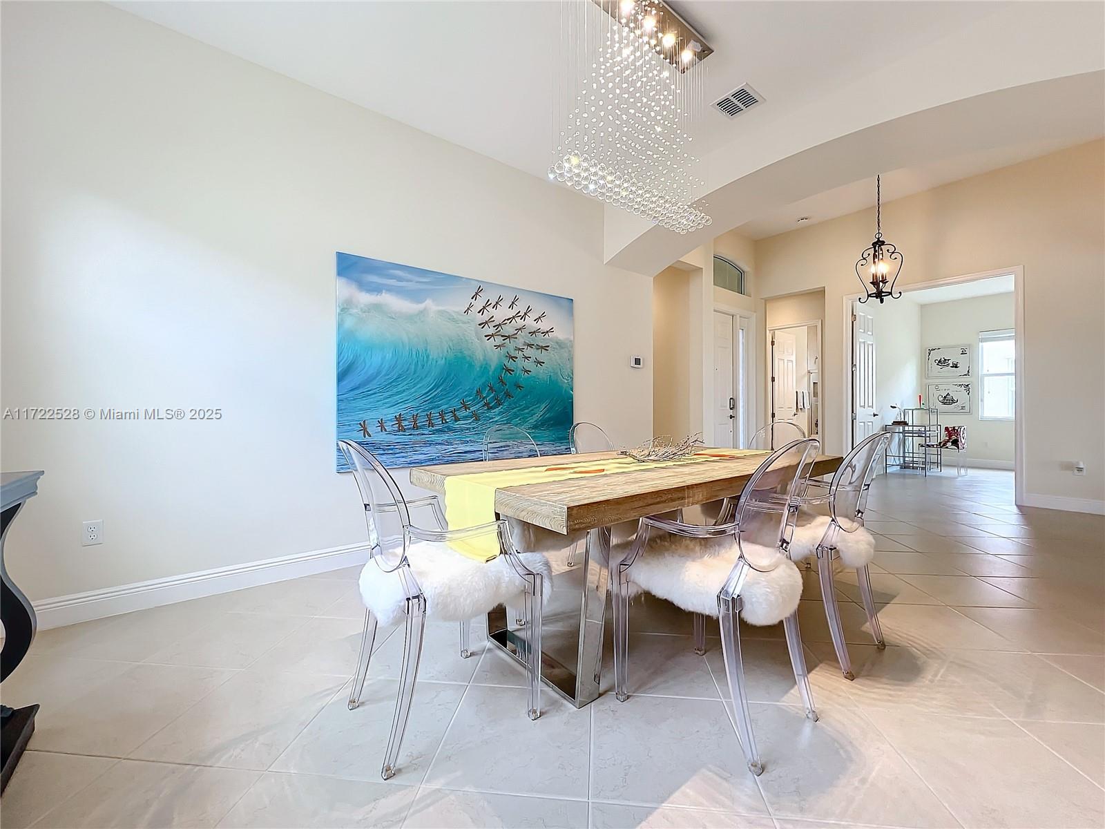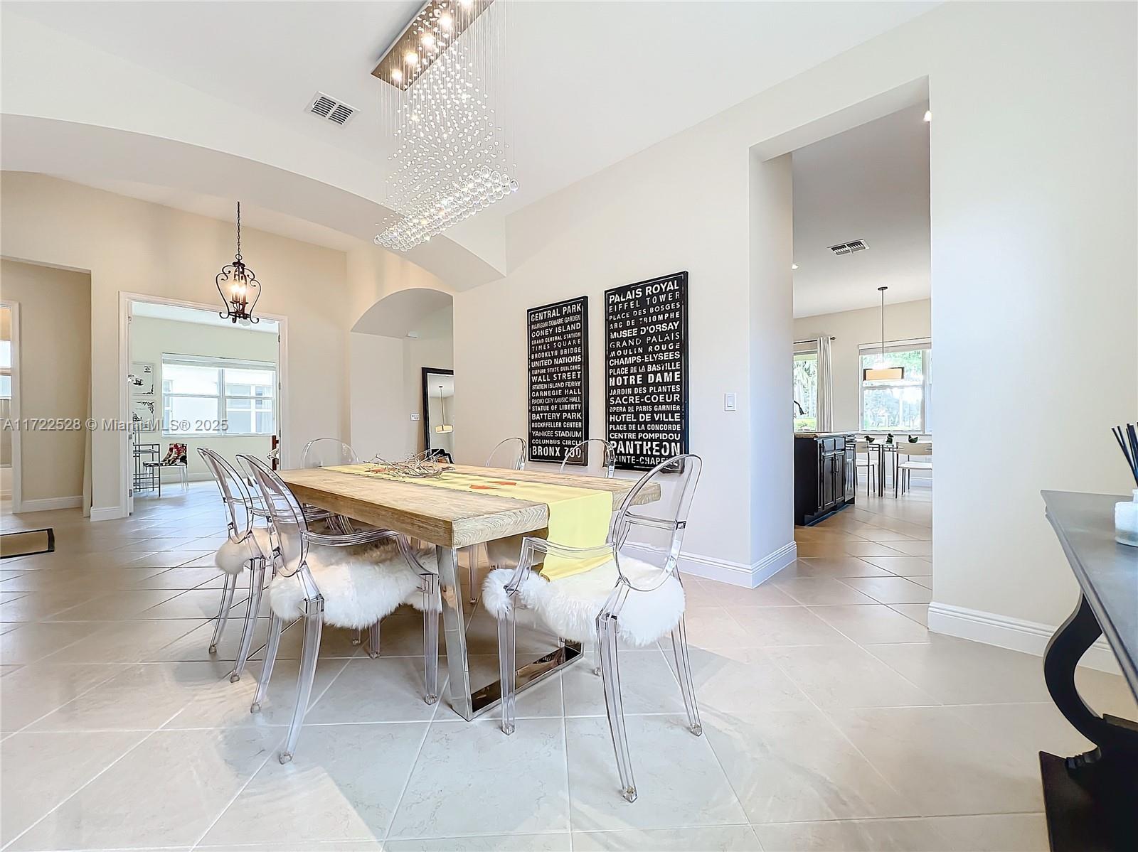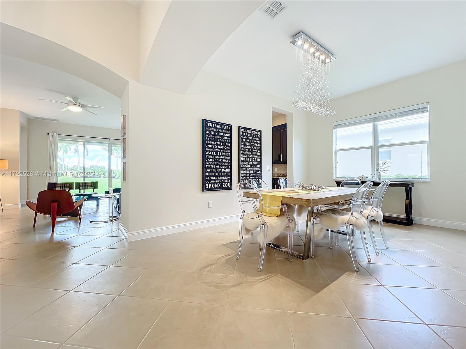 Welcome to this impeccable home in the tranquil Portosol community. With just one owner, it has been lovingly cared for and thoughtfully upgraded. New appliances, a washer, dryer, and air conditioner have been recently installed, ensuring quality and comfort. The gourmet kitchen features premium stainless steel appliances, an induction stove, Maytag refrigerator, granite countertops, and a central island—ideal for culinary creativity. The open floor plan, soaring ceilings, and natural light create a spacious living experience perfect for entertaining. The formal dining room accommodates larger gatherings, while the breakfast area and family room, framed by sliding doors, offer serene and private views. The home has hurricane-proof doors and windows for security and energy efficiency.