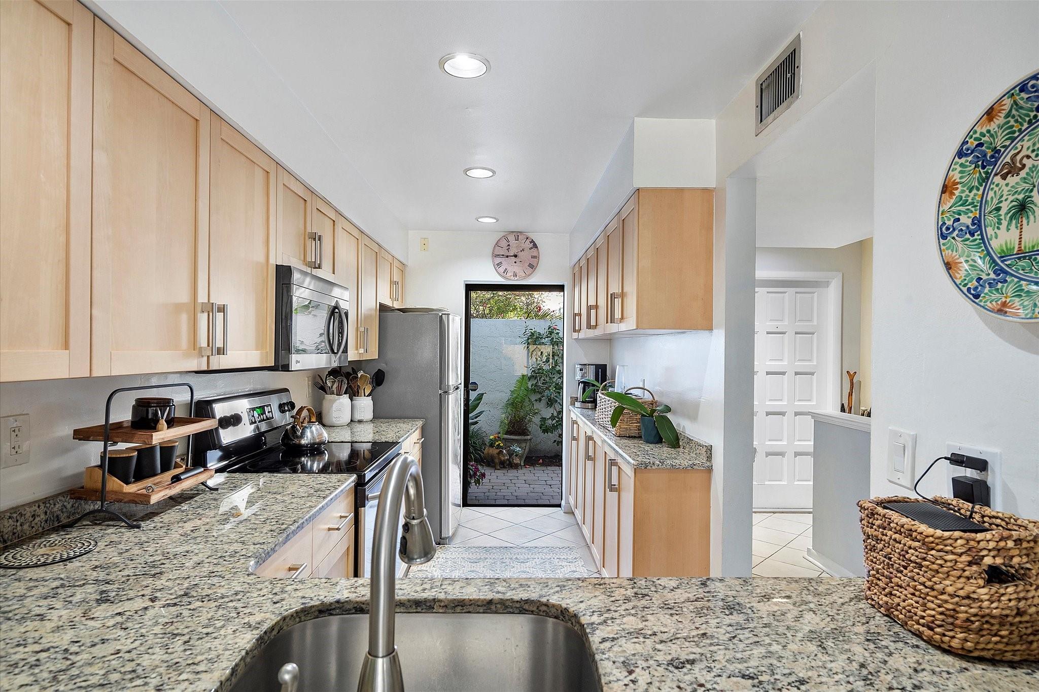 Experience a rare garden oasis in the heart of Victoria Park. This distinctive 2-bedroom, 2.5-bath corner residence is nestled within a boutique gated community. It is the ONLY residence with a large private garden that includes a tranquil pool. The entry level features a spacious living area with French doors that open to lush gardens, alongside a thoughtfully designed kitchen equipped with stainless steel appliances and ample storage. Upstairs, warm bamboo floors enhance the primary suite, which boasts generous closet space. A split-bedroom layout ensures privacy. Additional highlights: attic storage, new roof in 2023, 2 assigned tandem parking spaces. Tenant is in place on a month-to-month basis.