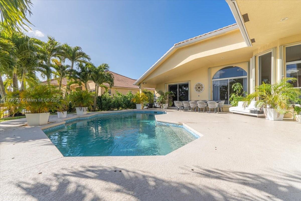 Stunning and picture perfect Issa model, located in Weston Hills Country Club. This remodeled corner lot home boasts 5 bedrooms, 3 full baths. Features include: marble floors through-out living areas, volume ceilings, unparalleled finishes through-out, living room with pool and lake views, stainless steel appliances & breakfast area. In addition, large master suite with built-in custome closets. Beautiful covered patio, pool . Accordion storm shutters, led lights, two car garage and spacious driveway. Manatee Bay Elementary, Falcon Cove Middle, Cypress Bay High School.