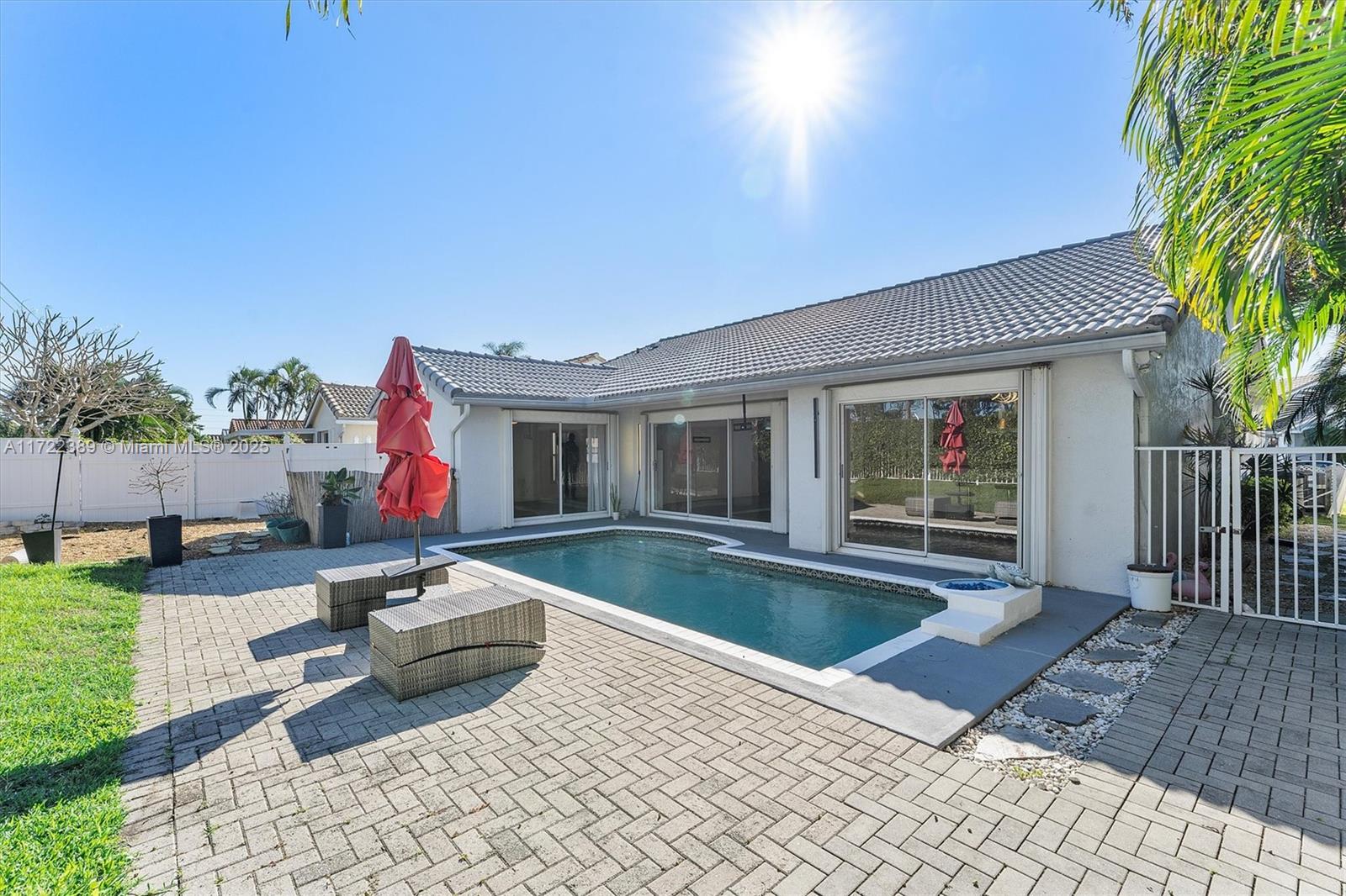 Remodeled single-family pool home in the prestigious community of The Fountains of Rainbow Lakes in Boynton Beach! This is a home perfect and well equipped for entertaining, gatherings and people that like to cook. Pool access from the living room, dining room, and master bedroom! Complete kitchen renovation with all new commercial appliances, cabinets, quartz countertops, renovated bathrooms, newer roof (2015), hurricane impact protection throughout, two-car garage, fenced-in back yard, new pool pump, new a/c. The Fountains of Rainbow Lakes is a private community comprised of 100 single-family homes. It is zoned for A-rated elementary, middle, and high schools and offers easy access to the beach, restaurants, shopping, entertainment, and more! Must own two years prior to renting.