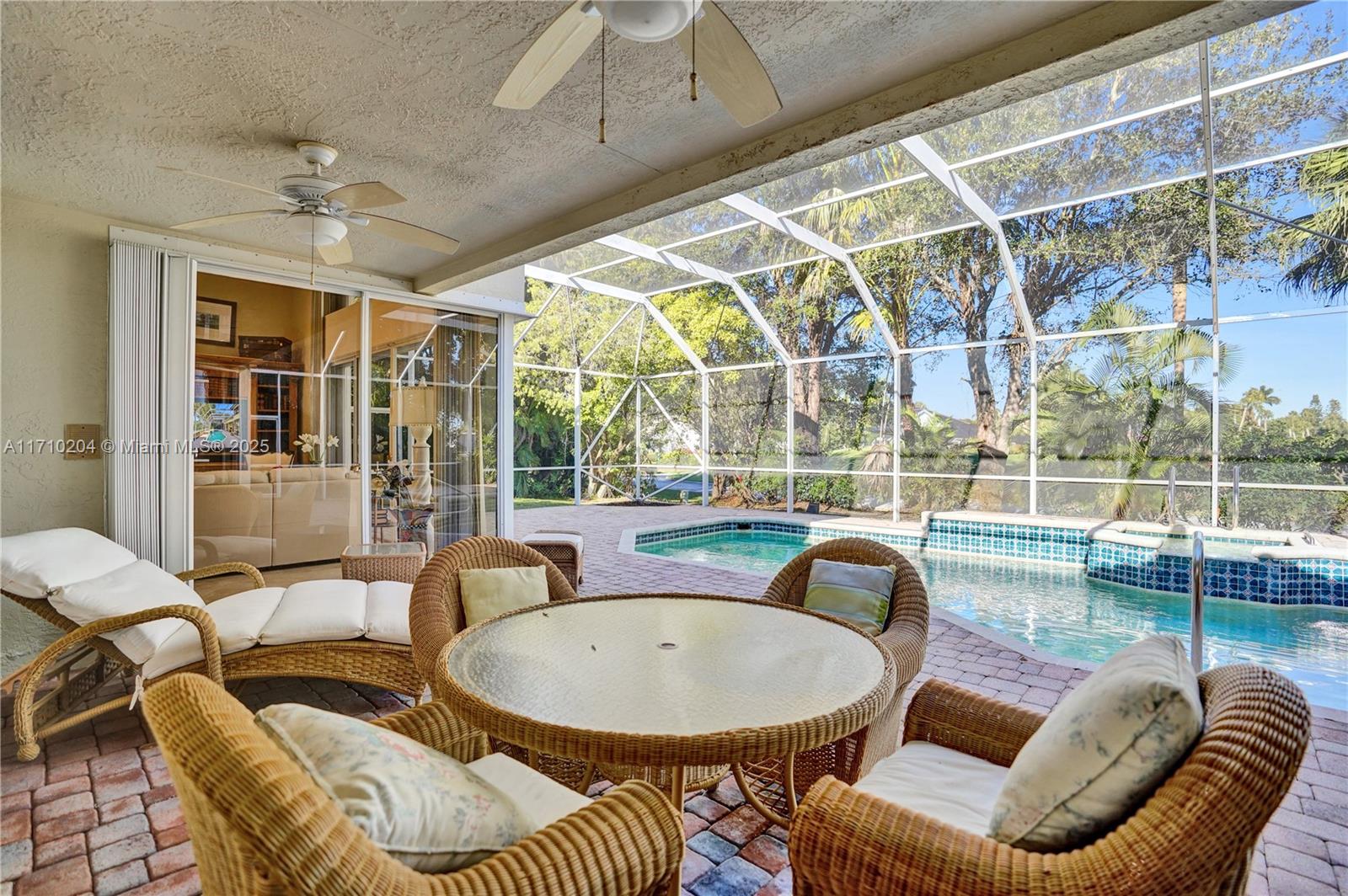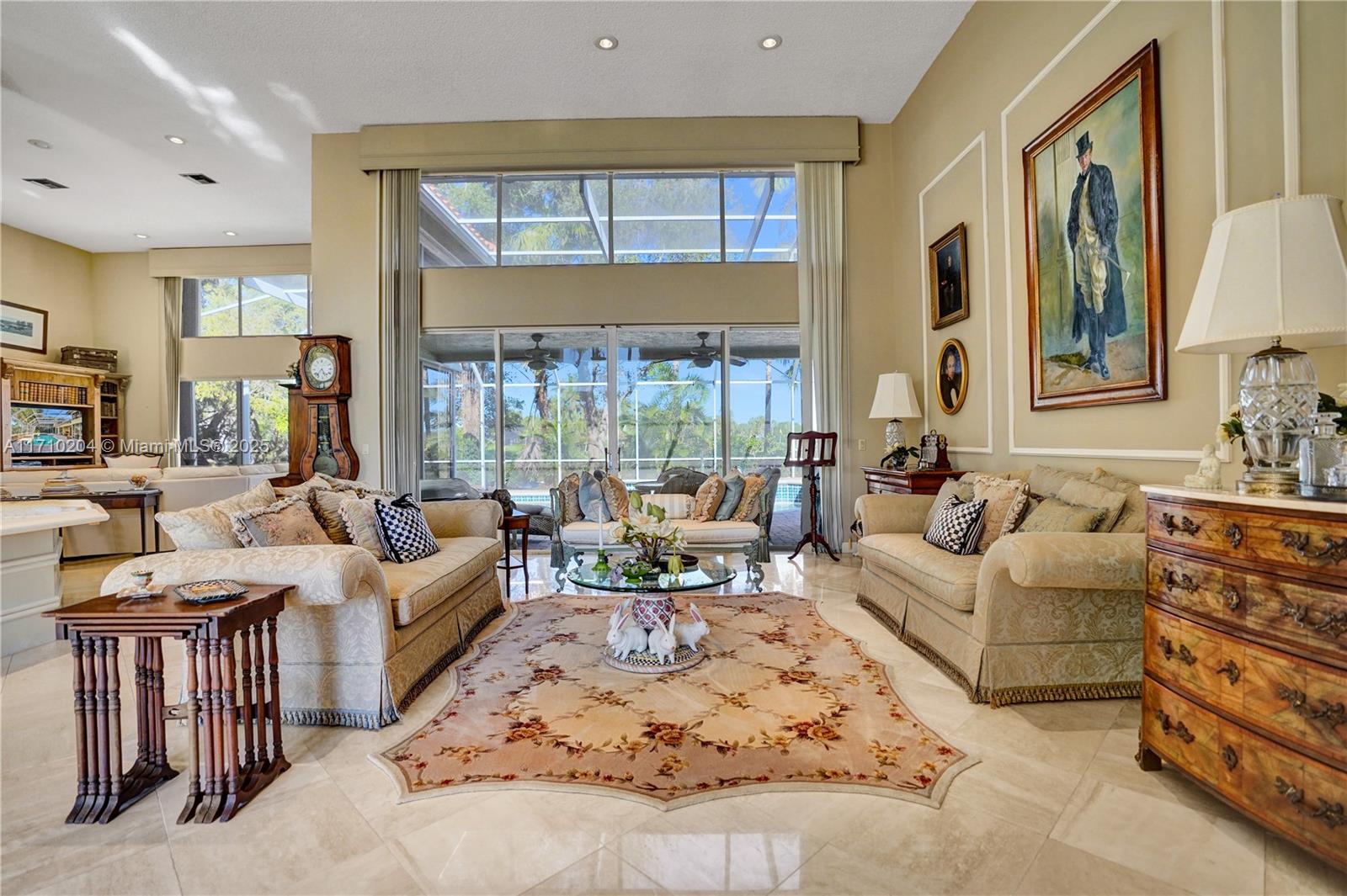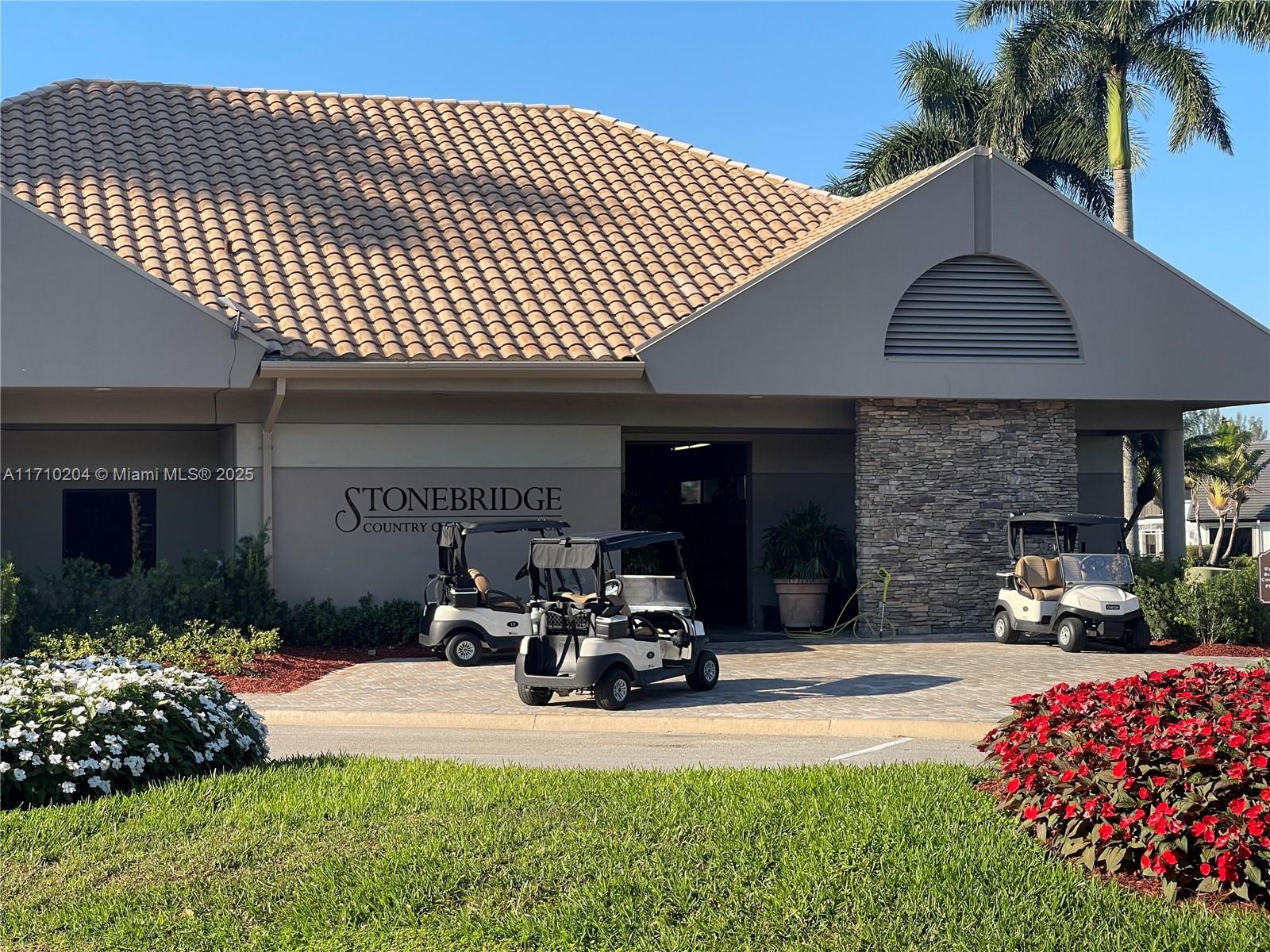Welcome to Stonebridge. This elegant and stately home has 3 Bedrooms (all en-suite), 3.5 Bathrooms and an Office, 2.5-Car Garage, Screened-In Heated Pool, Circular Driveway on Cul-De-Sac with sweeping Golf & Lake views. Just a short walk to the renowned Stonebridge County Club with extraordinary golf, pool, pickle-ball, tennis and dining. An open floorplan seamlessly flows from impressive entry foyer to living room, dining room, den and kitchen with cozy breakfast nook. Oversized principal bedroom, large bathroom with custom closets. 2nd & 3rd Bedrooms are en-suite. One being a cabana bath. Custom kitchen with wood cabinets, stainless steel appliances, granite counter-tops and island with oversized pull-out drawers. Hurricane shutters on all doors and windows.