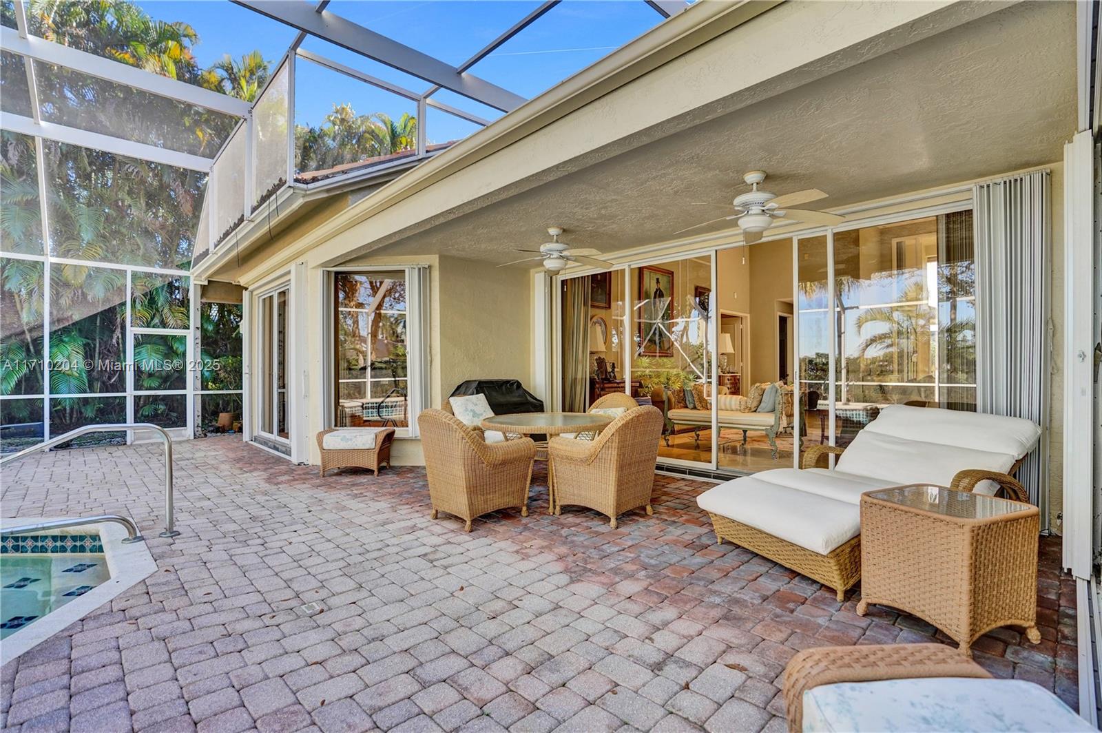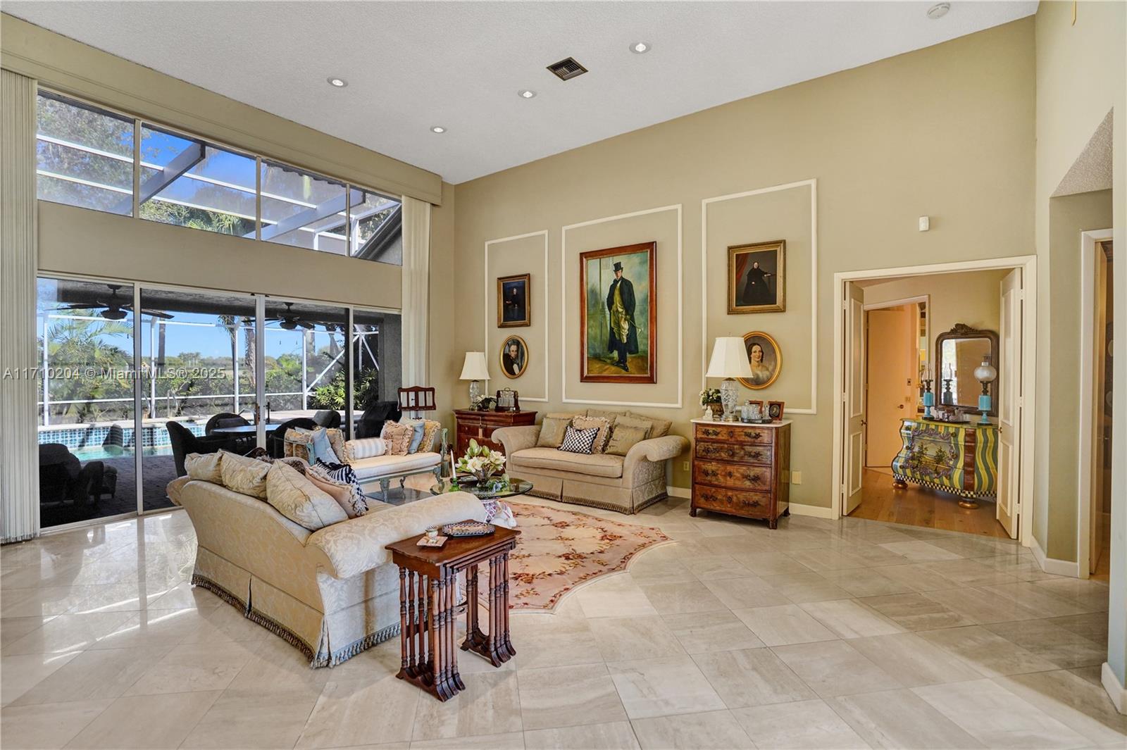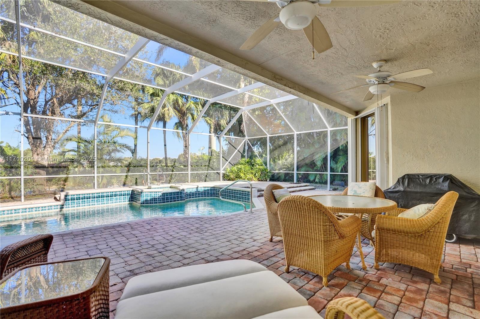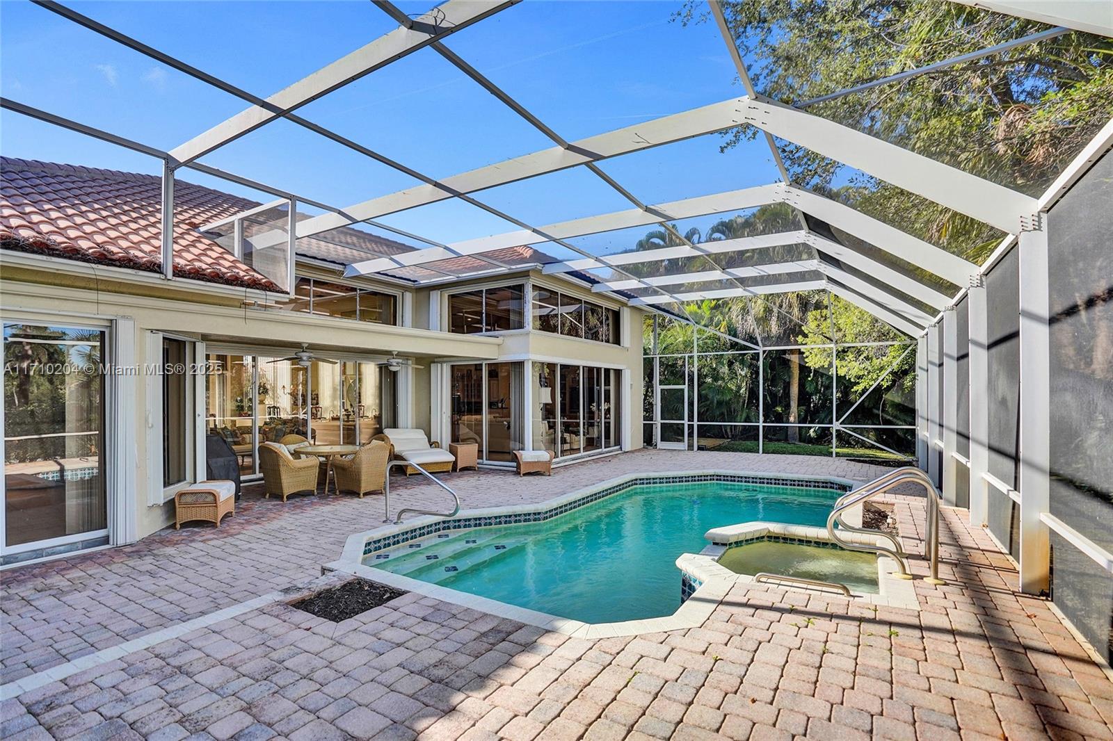 Welcome to Stonebridge. This elegant and stately home has 3 Bedrooms (all en-suite), 3.5 Bathrooms and an Office, 2.5-Car Garage, Screened-In Heated Pool, Circular Driveway on Cul-De-Sac with sweeping Golf & Lake views. Just a short walk to the renowned Stonebridge County Club with extraordinary golf, pool, pickle-ball, tennis and dining. An open floorplan seamlessly flows from impressive entry foyer to living room, dining room, den and kitchen with cozy breakfast nook. Oversized principal bedroom, large bathroom with custom closets. 2nd & 3rd Bedrooms are en-suite. One being a cabana bath. Custom kitchen with wood cabinets, stainless steel appliances, granite counter-tops and island with oversized pull-out drawers. Hurricane shutters on all doors and windows.